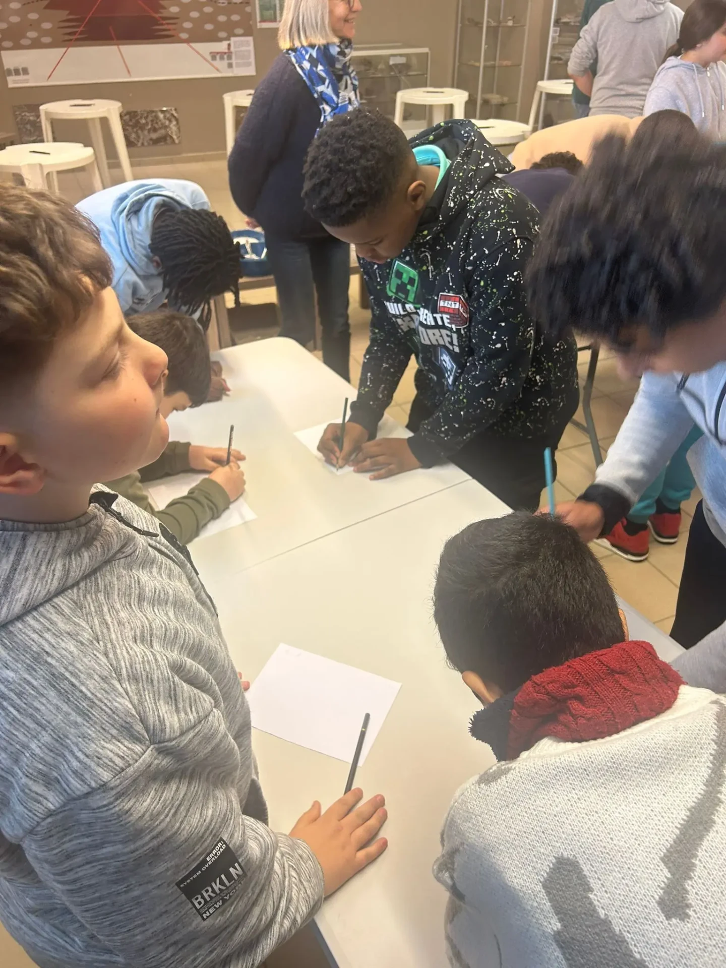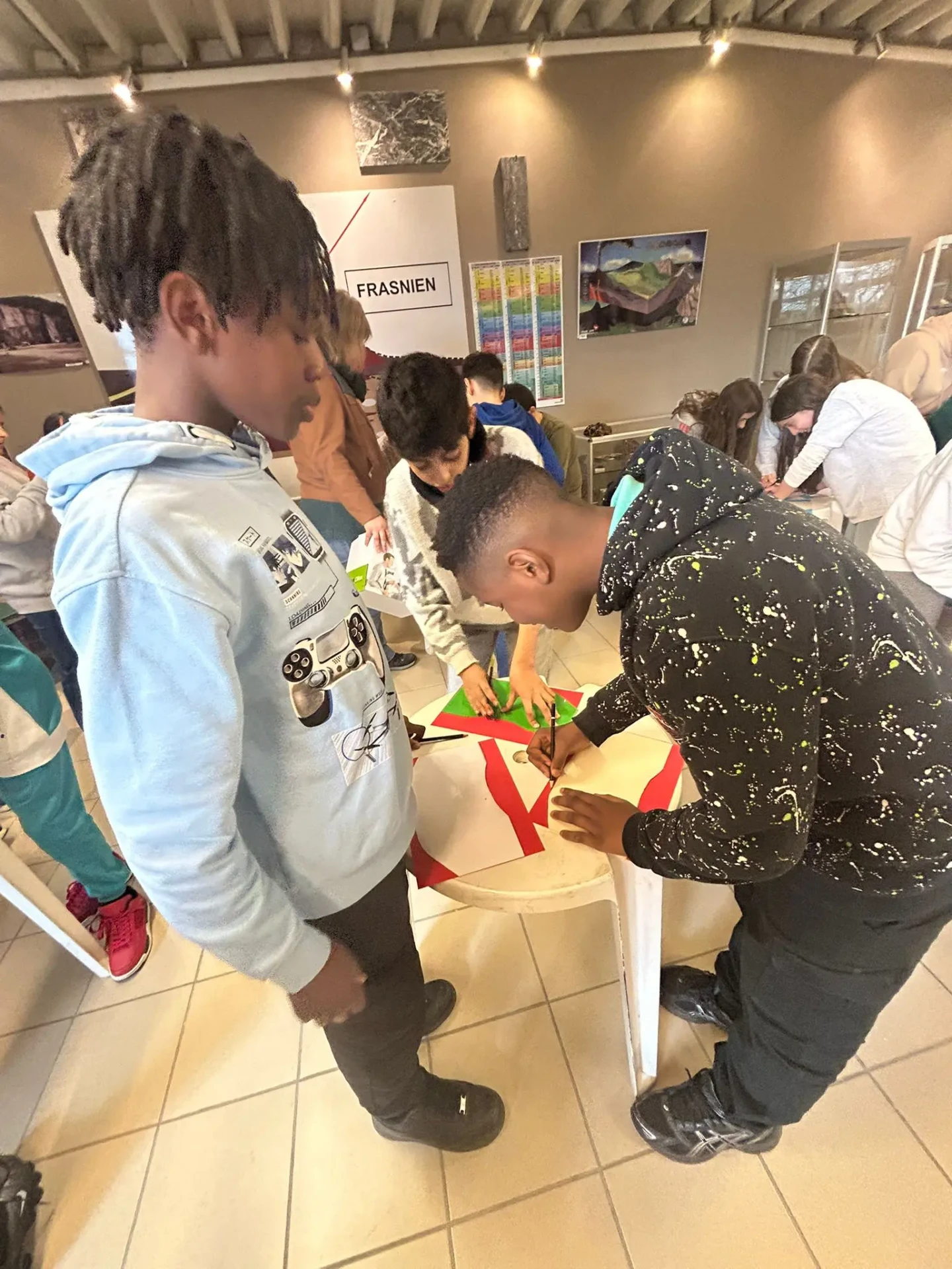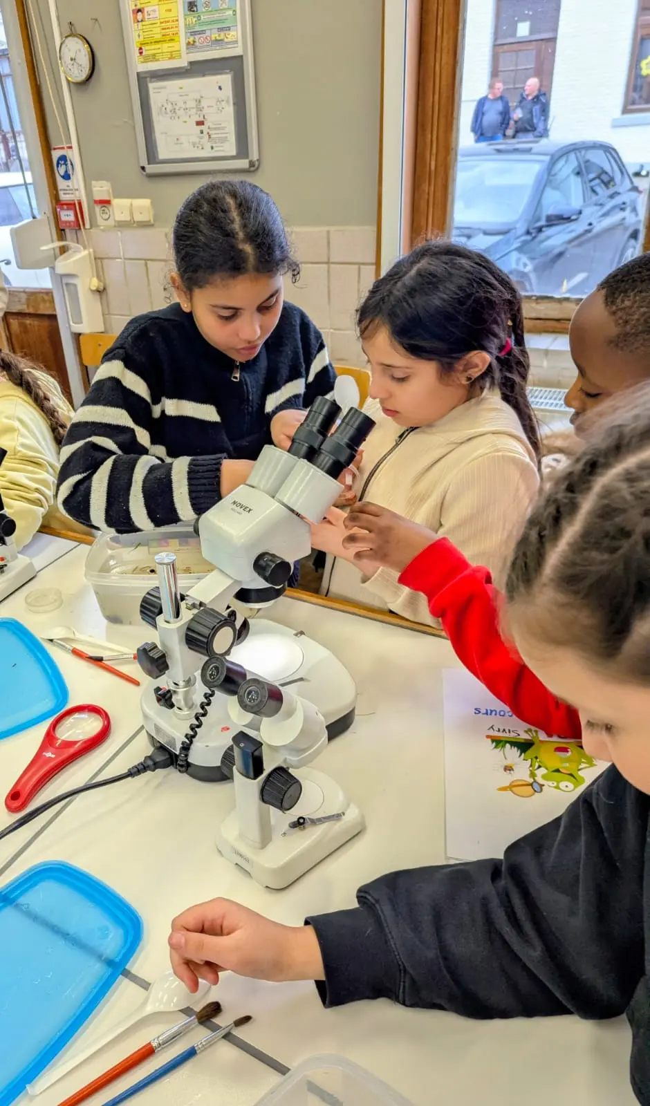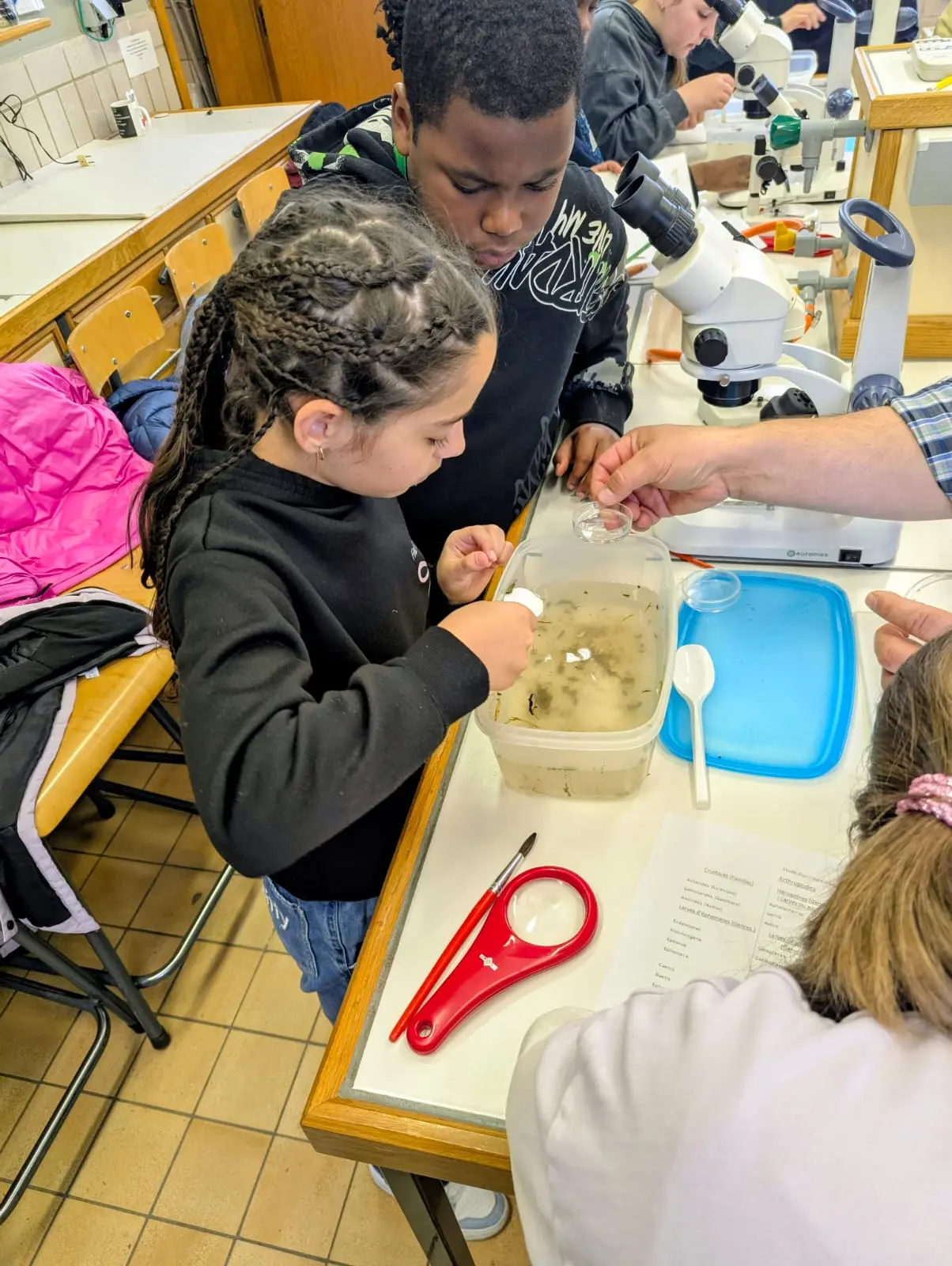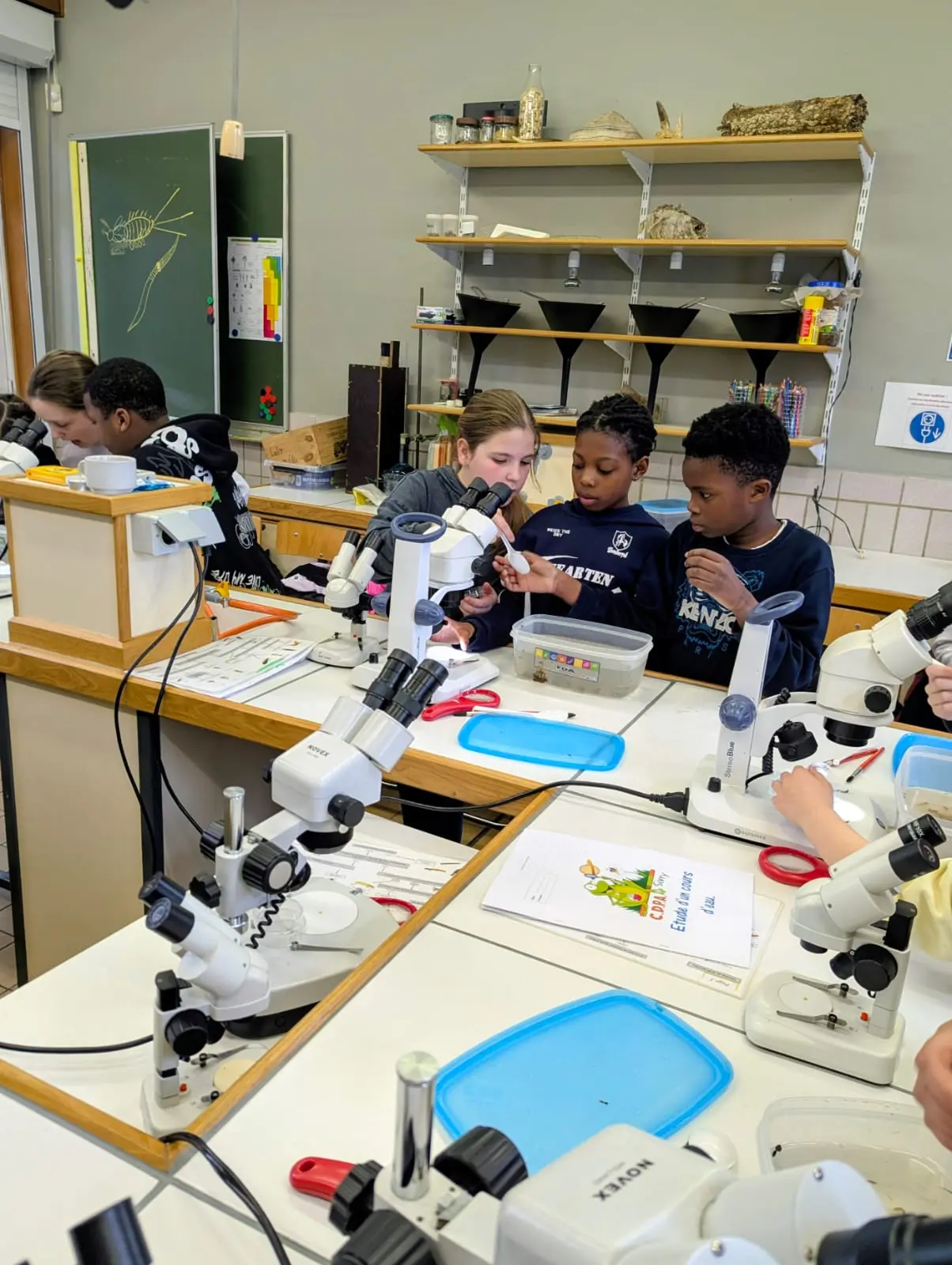 Programme du jour : les élèves de Mme Emily sont partis à la découverte du ruisseau de Montbliart et ont pu y découvrir une multitude de petits animaux qui y vivaient. Les élèves de M. Manu quant à eux sont partis en marche d’orientation la matin et ont eu des activités astronomique ainsi que la visite du musée du marbre l’après-midi.
