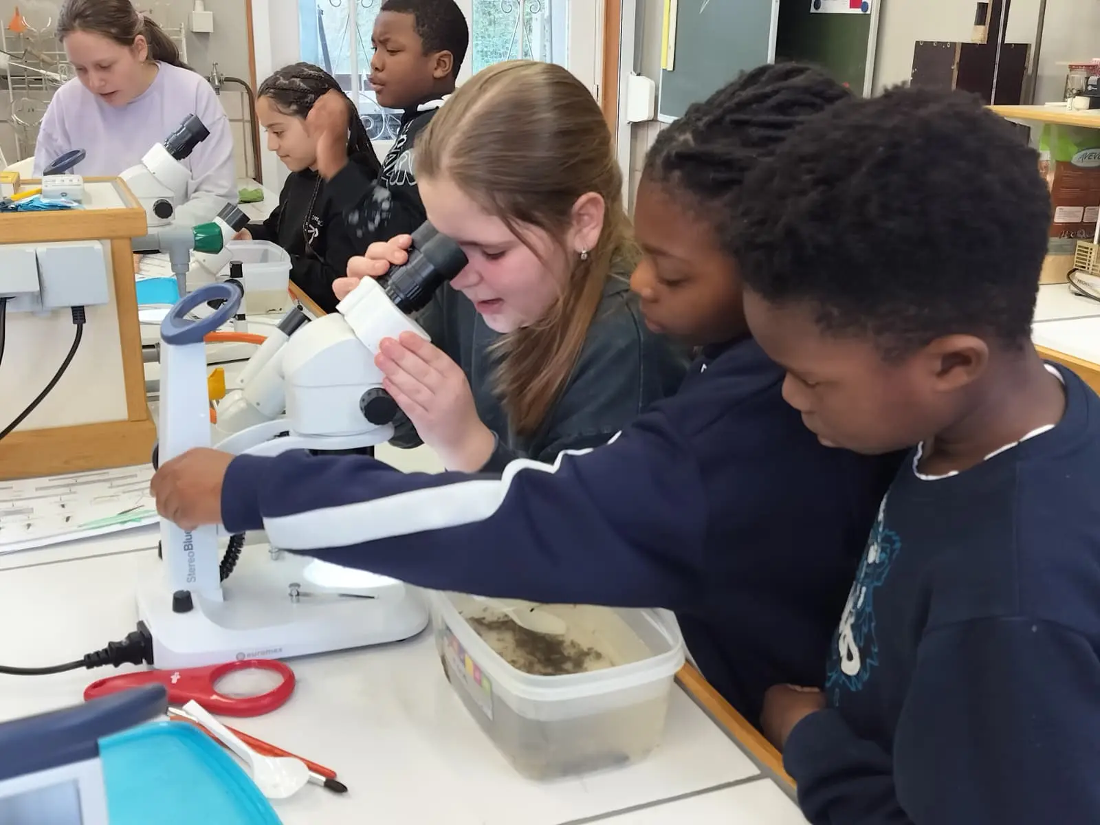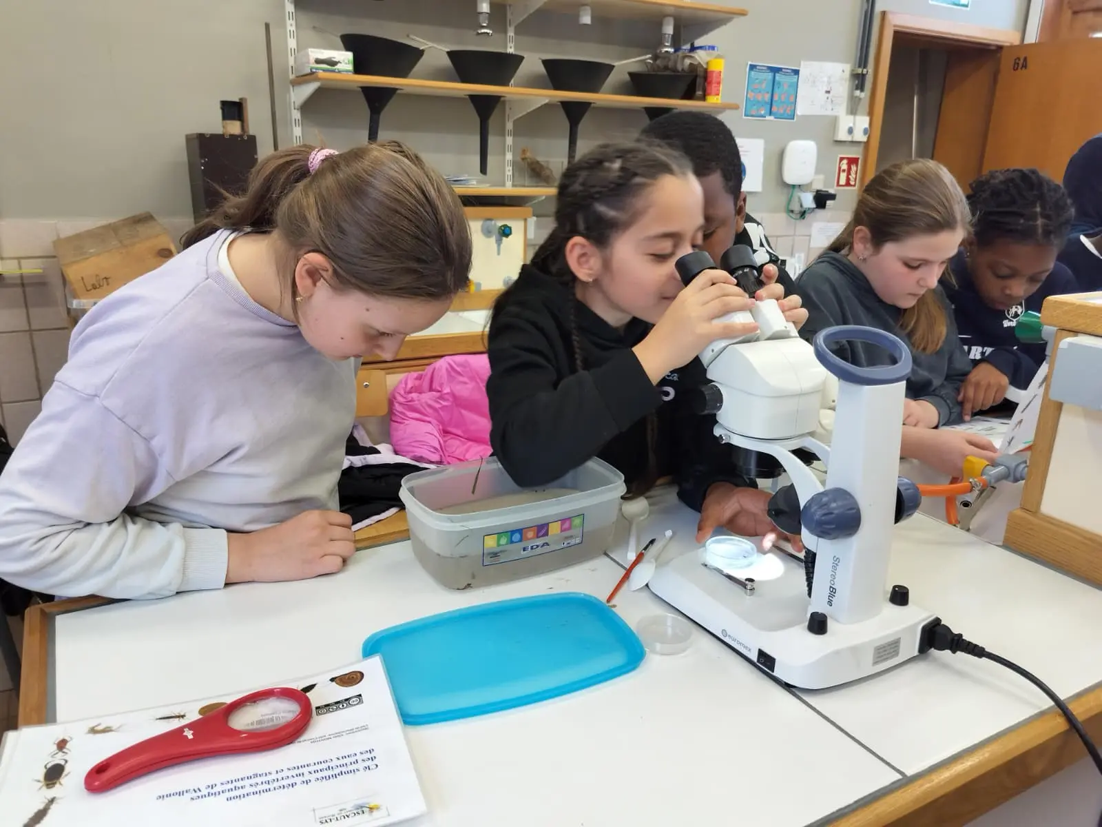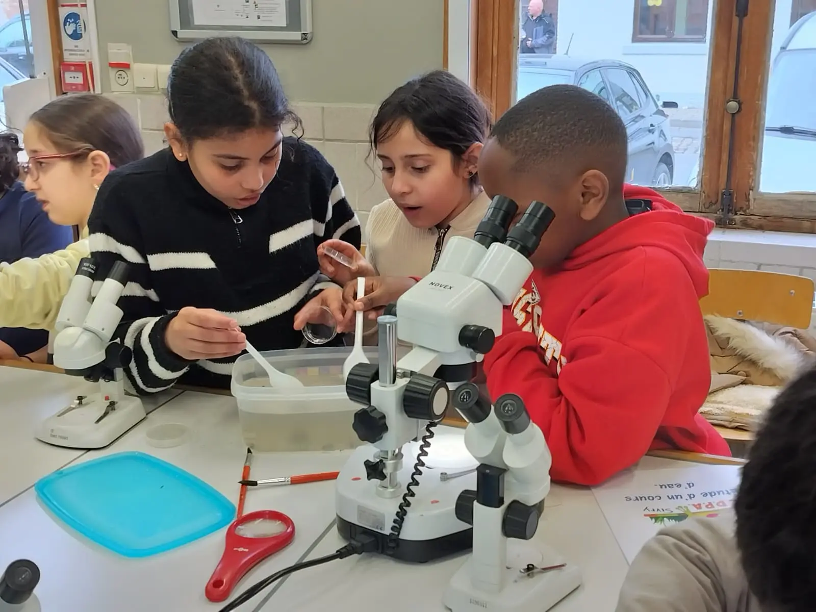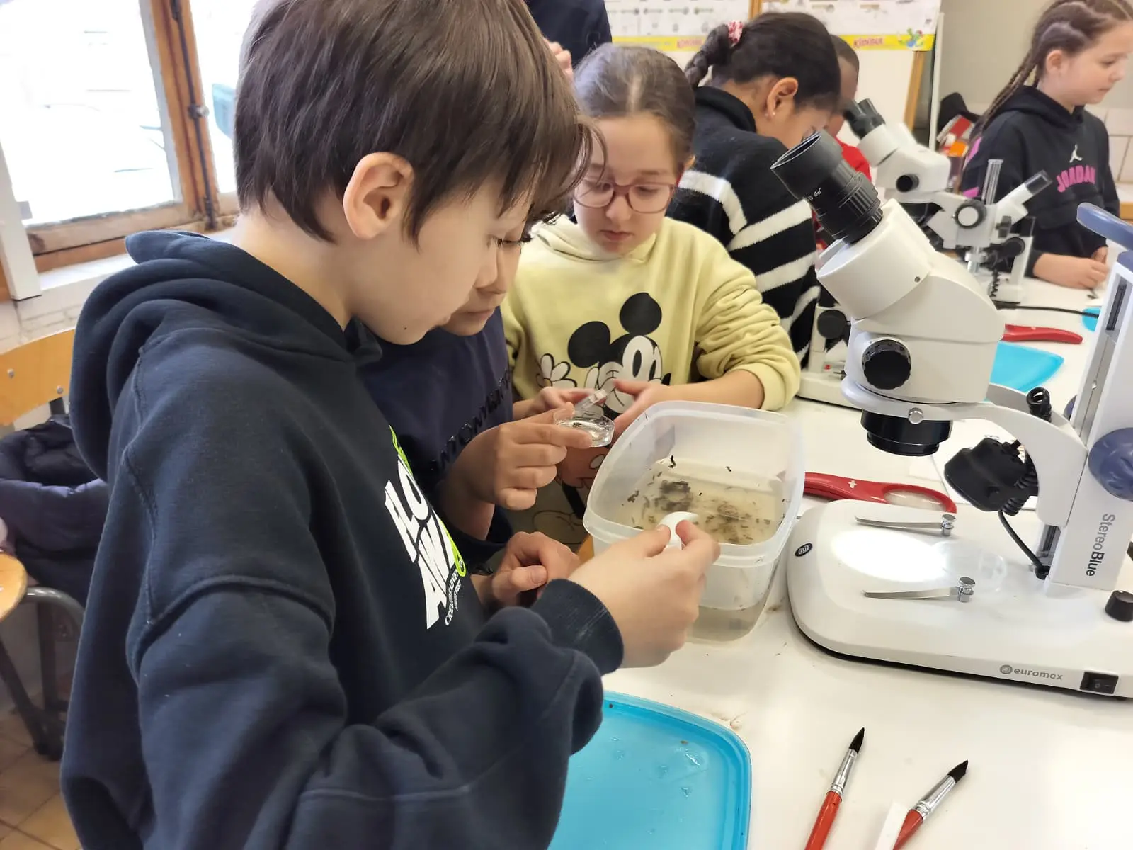 Programme du jour : les élèves de Mme Emily sont partis à la découverte du ruisseau de Montbliart et ont pu y découvrir une multitude de petits animaux qui y vivaient. Les élèves de M. Manu quant à eux sont partis en marche d’orientation la matin et ont eu des activités astronomique ainsi que la visite du musée du marbre l’après-midi.