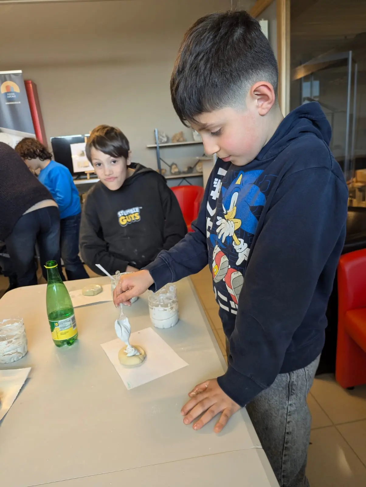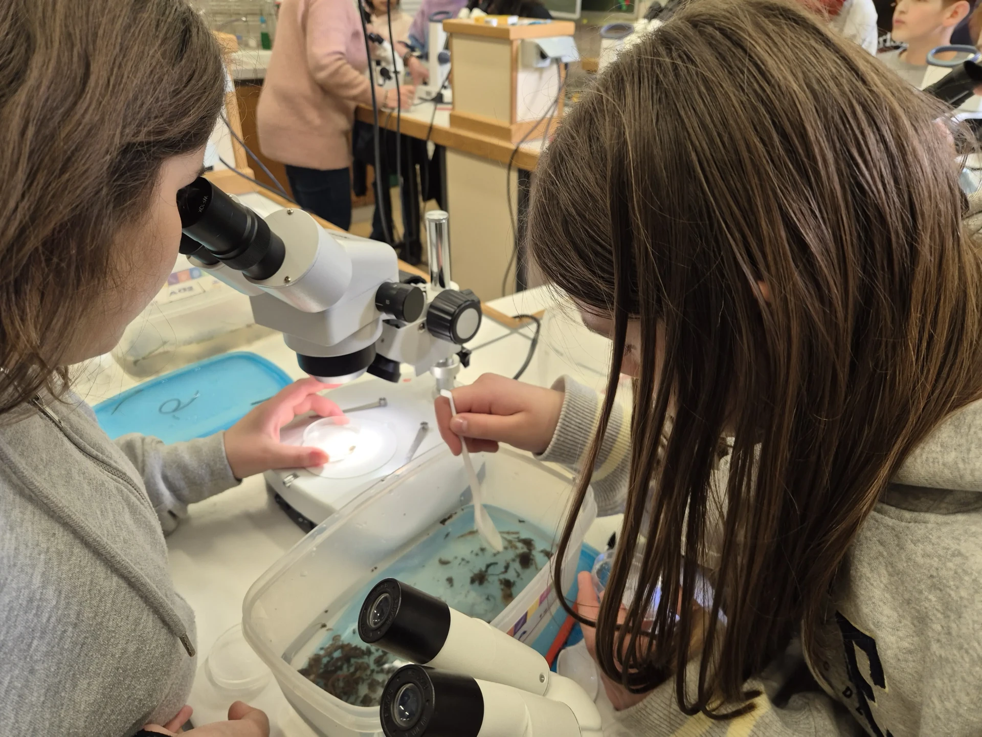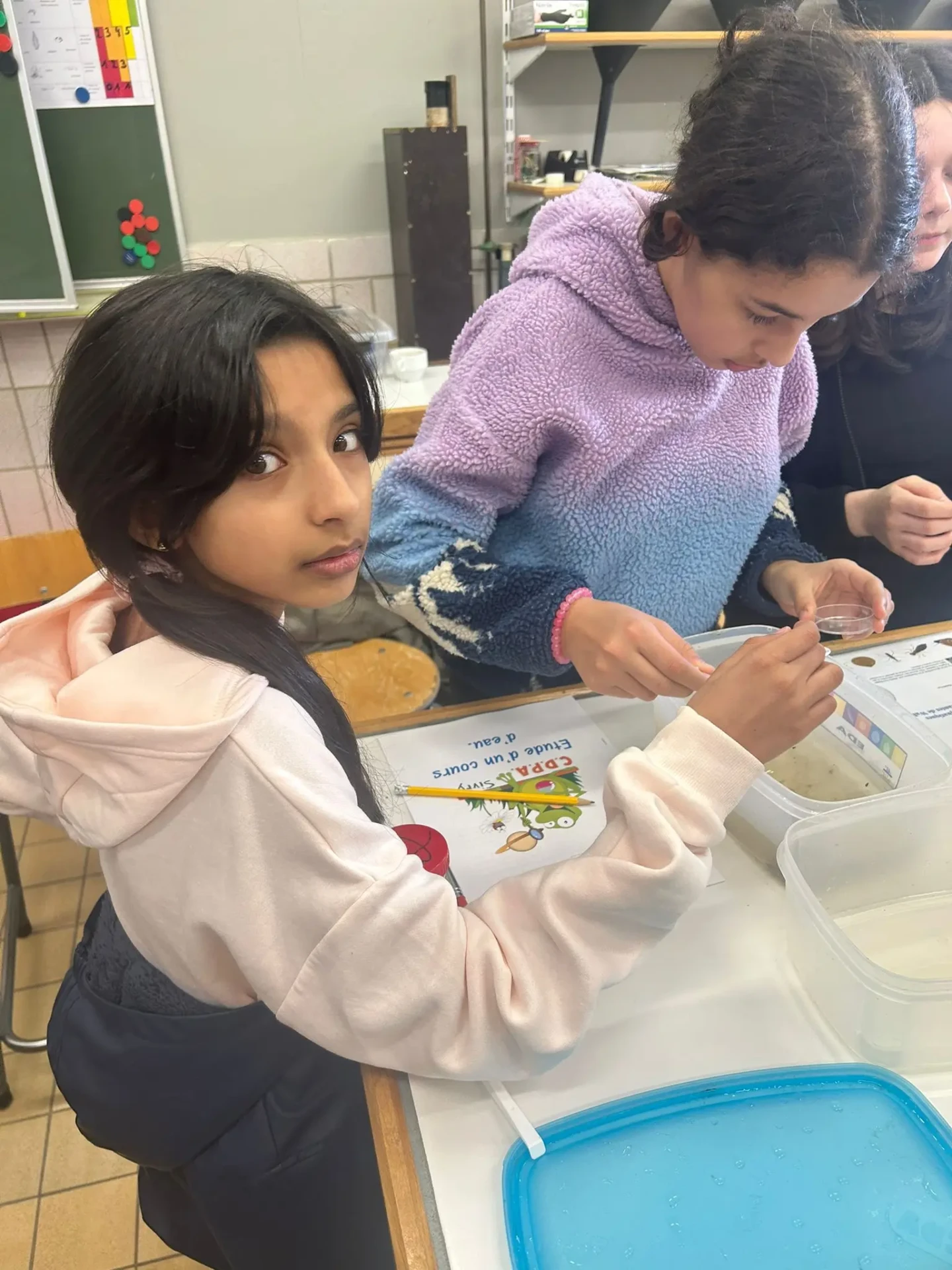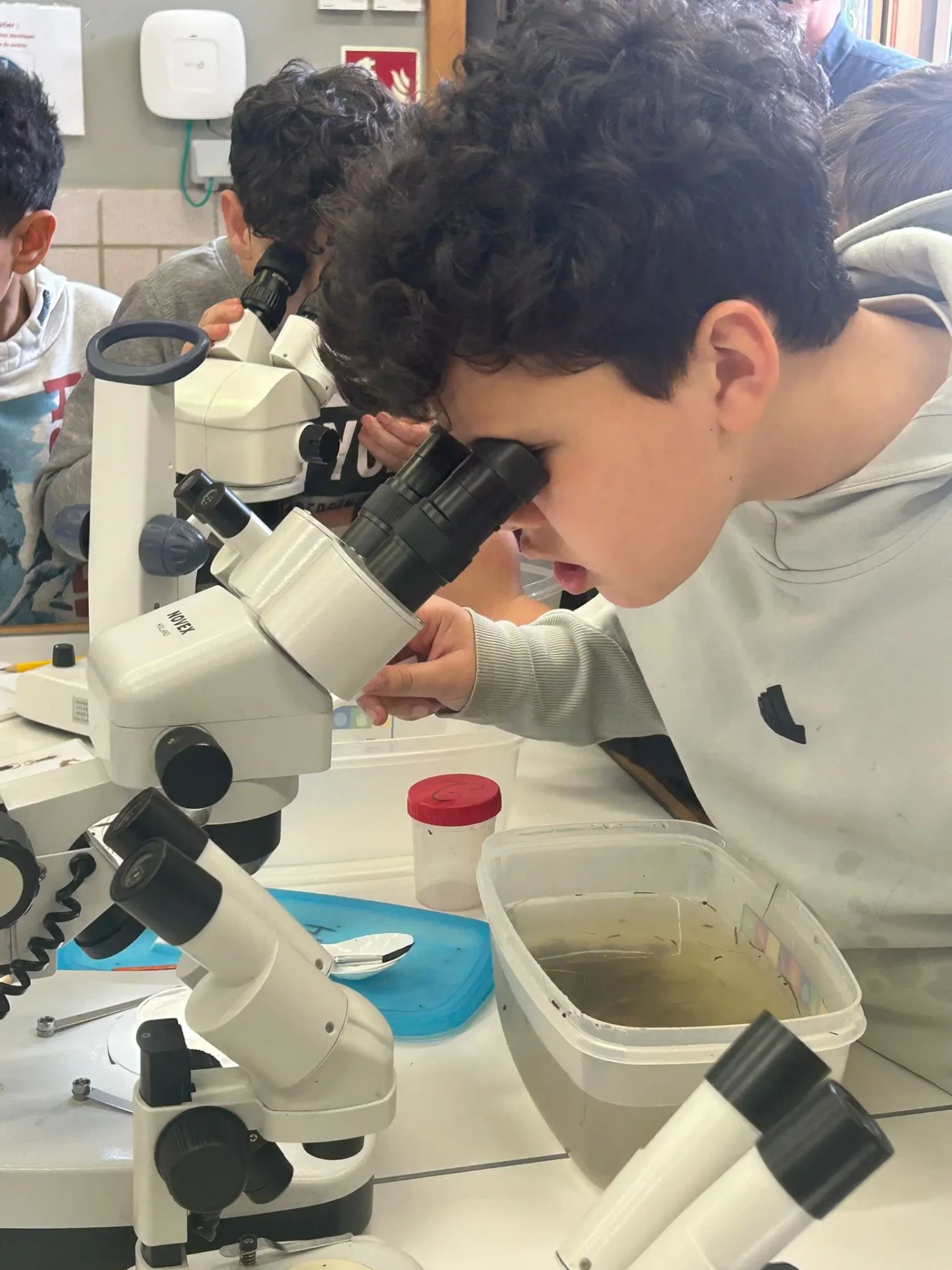 Aujourd’hui, nous avons profité des premiers rayons de soleil. Les enfants de P5 ont eu une formation à l’électricité et sont allés découvrir, à leur tour, les Fondry des Chiens et le musée du marbre. Les élèves de P6 quant à eux ont recueilli dans le ruisseau diverses espèces animales qu’ils ont ensuite observées au binoculaire et classées. Pour terminer la journée, un Grand jeu de Loup-garou.