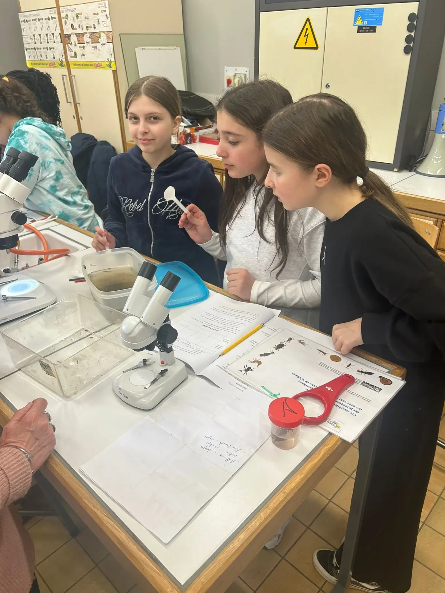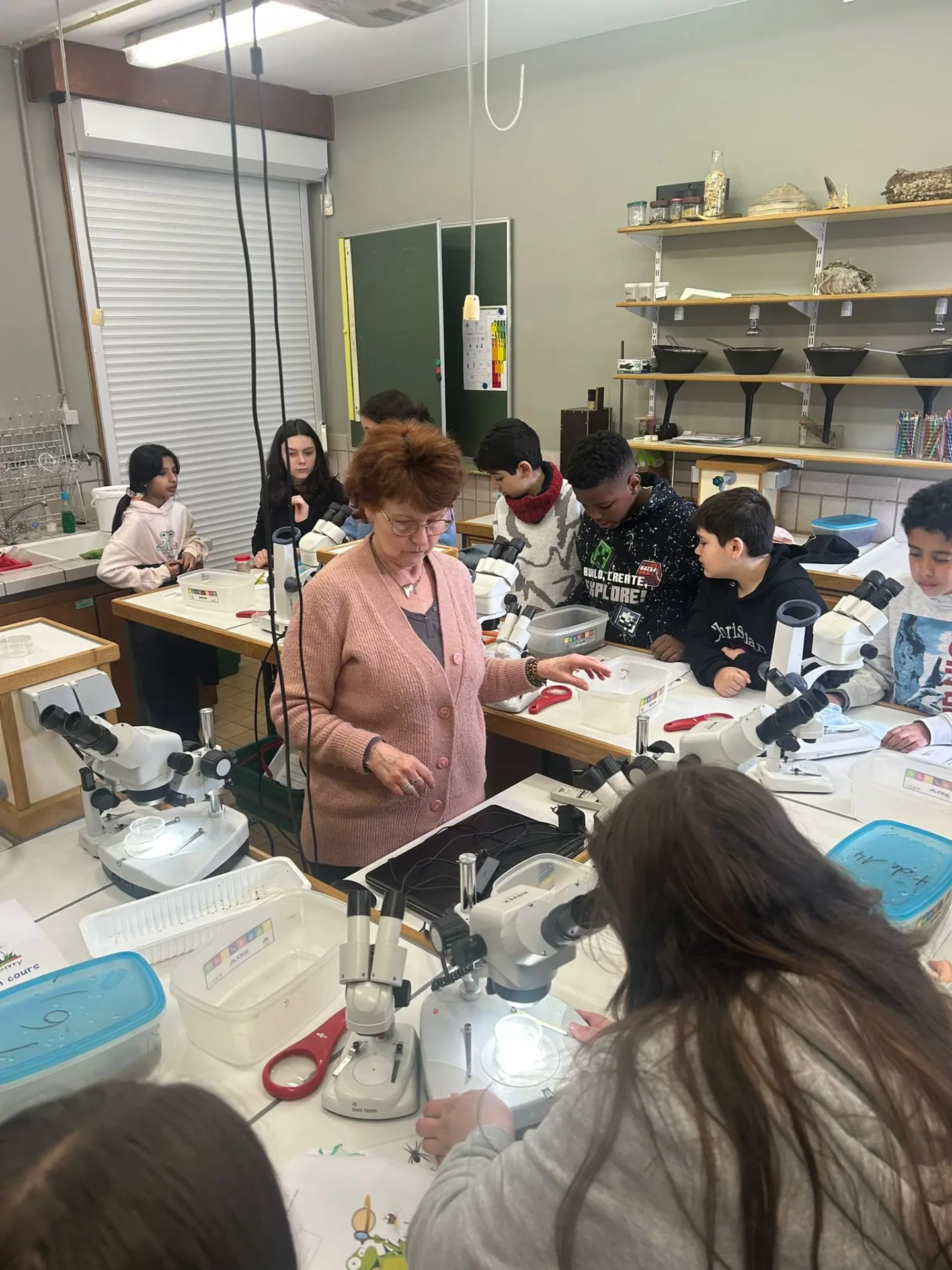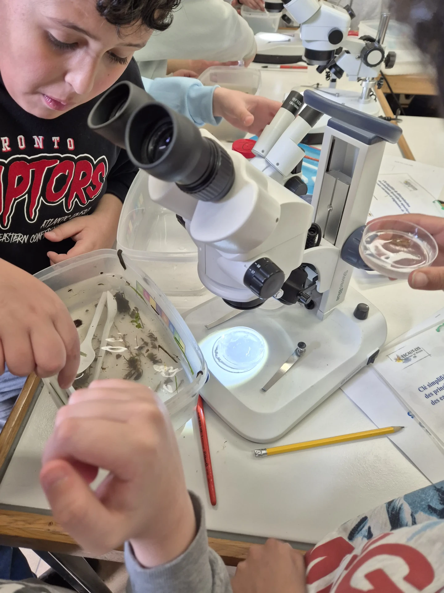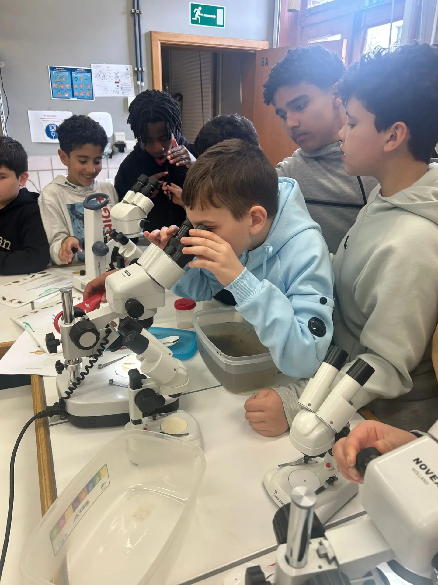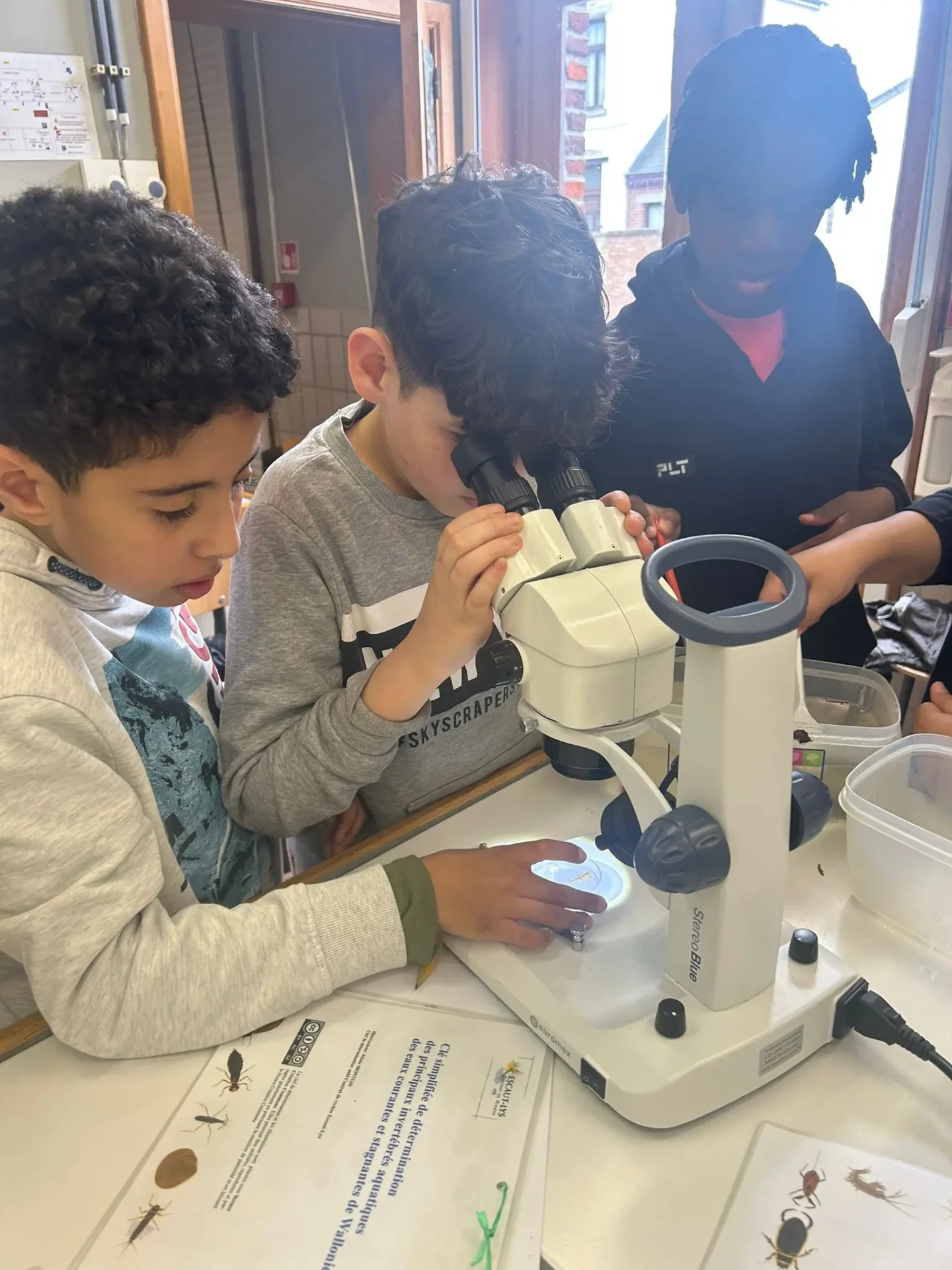 Aujourd’hui, nous avons profité des premiers rayons de soleil. Les enfants de P5 ont eu une formation à l’électricité et sont allés découvrir, à leur tour, les Fondry des Chiens et le musée du marbre. Les élèves de P6 quant à eux ont recueilli dans le ruisseau diverses espèces animales qu’ils ont ensuite observées au binoculaire et classées. Pour terminer la journée, un Grand jeu de Loup-garou.