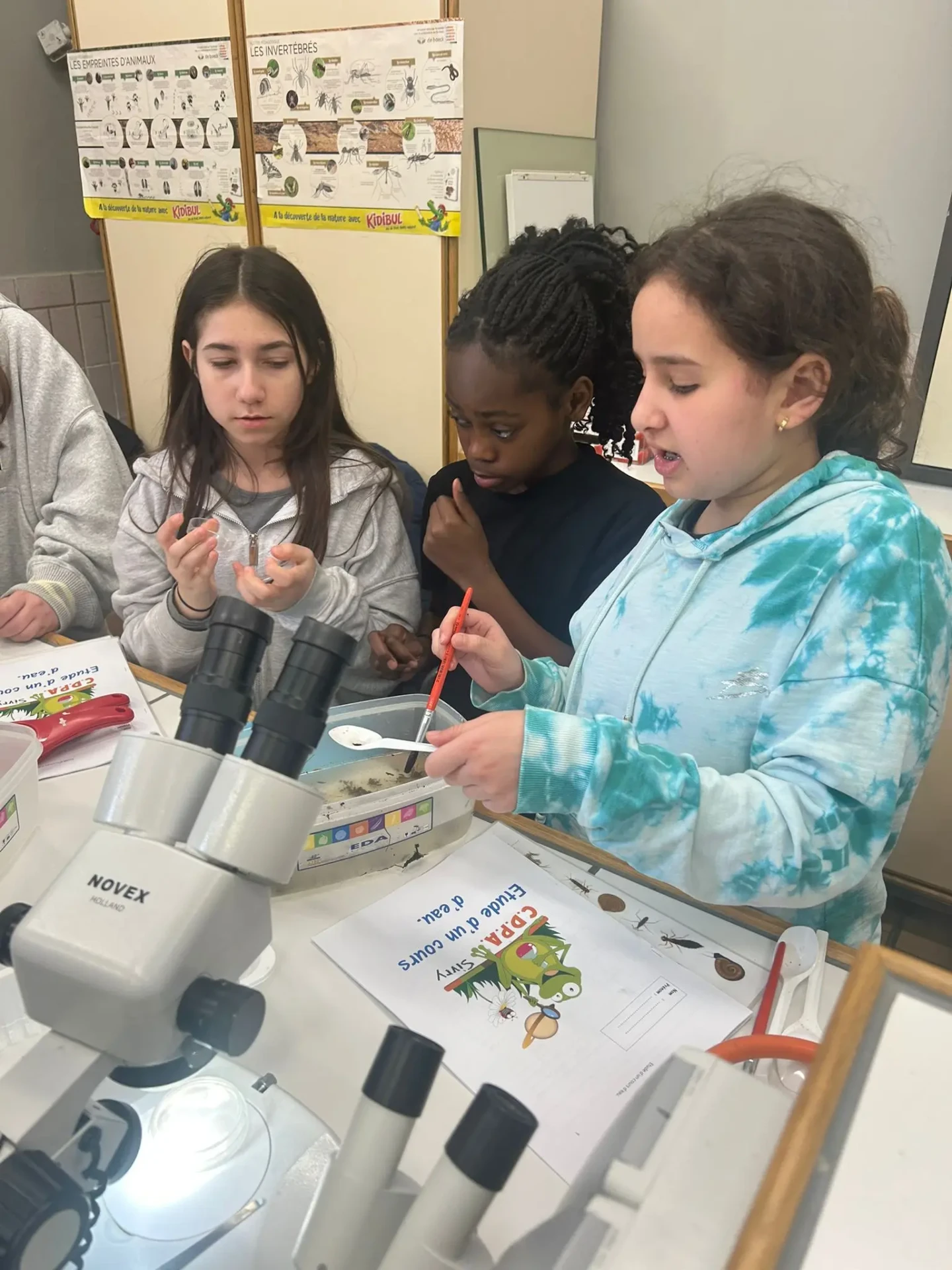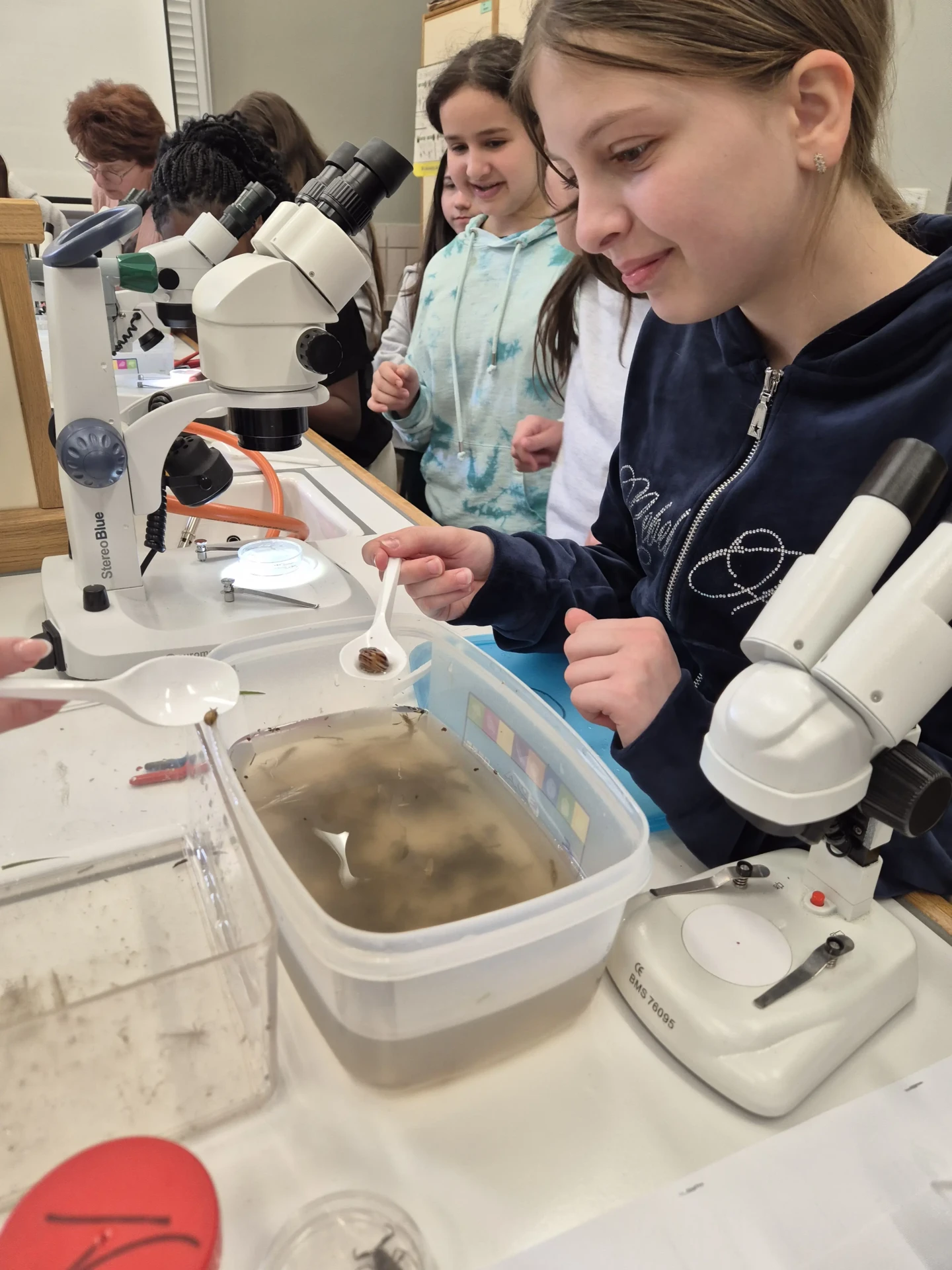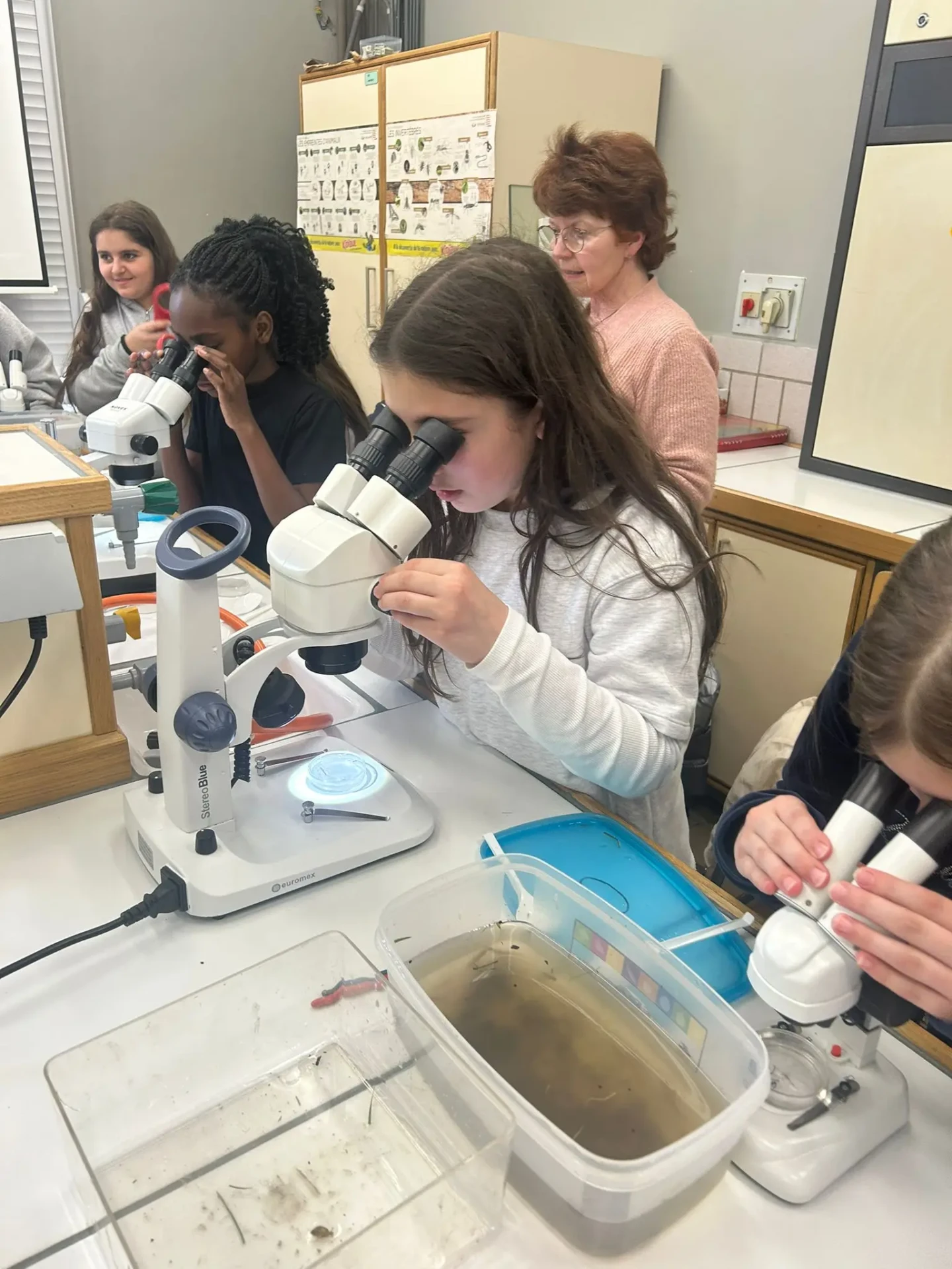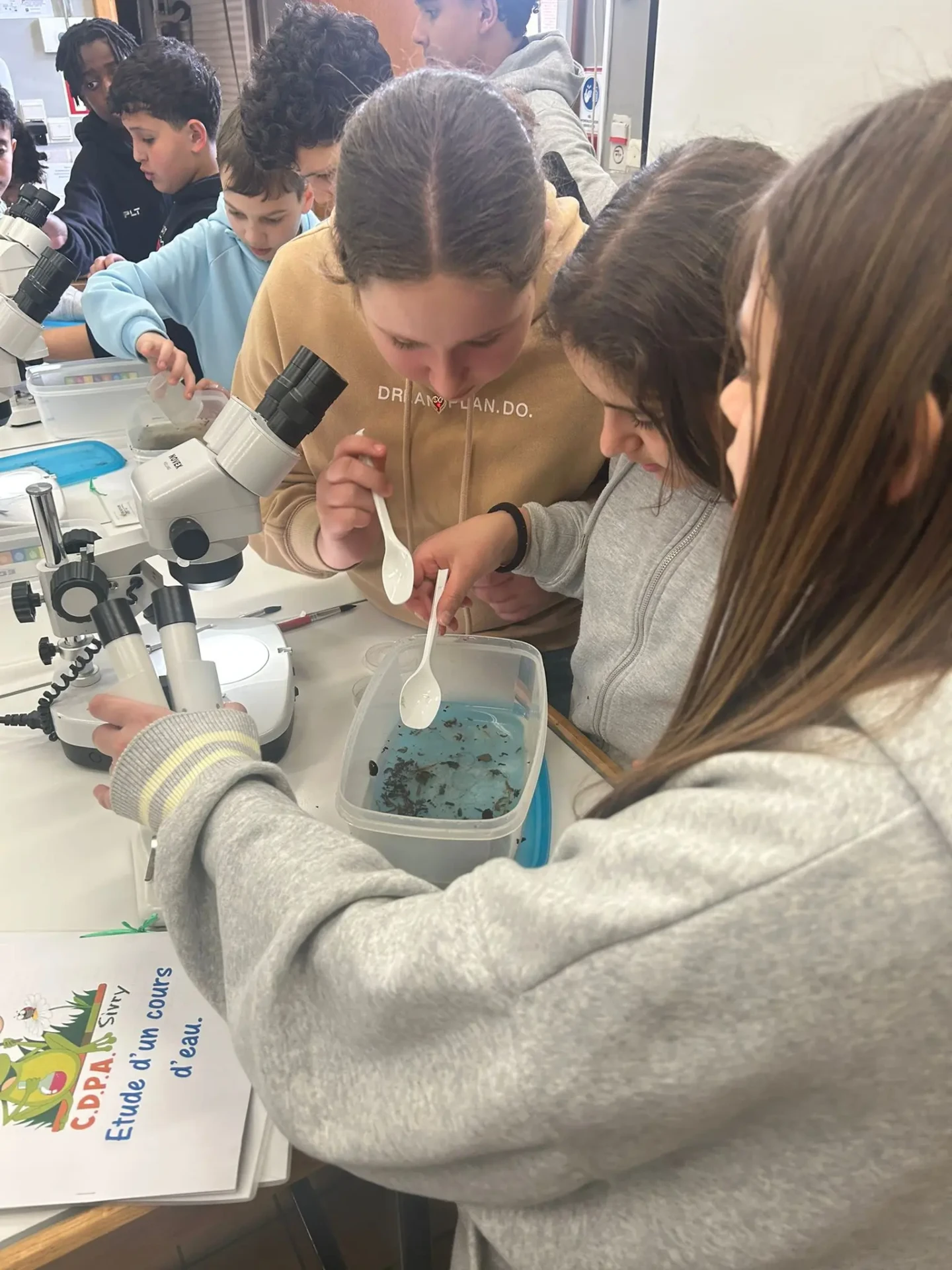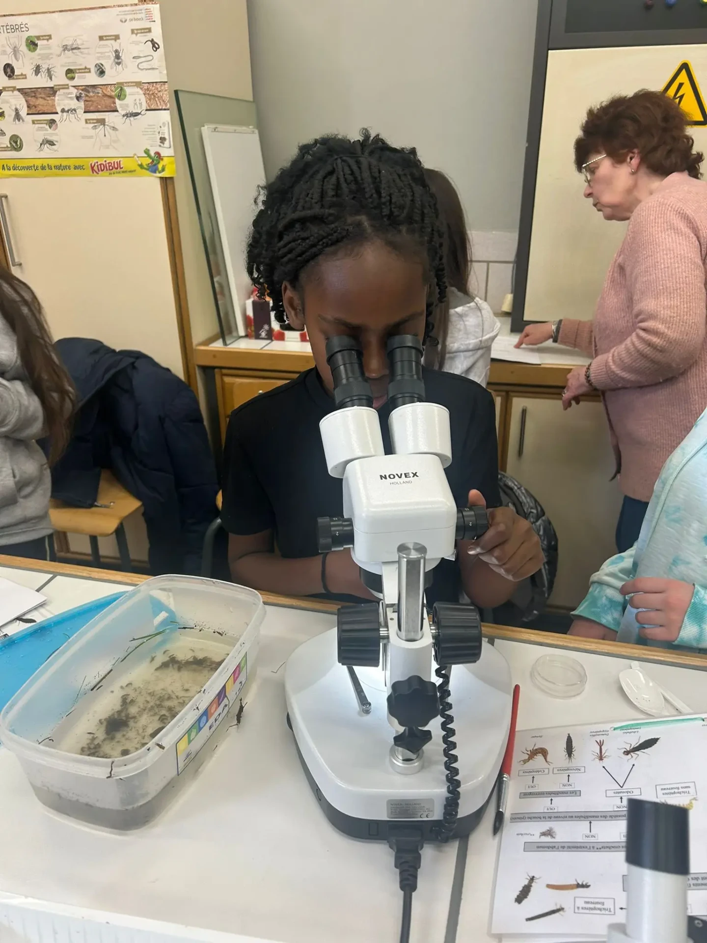 Aujourd’hui, nous avons profité des premiers rayons de soleil. Les enfants de P5 ont eu une formation à l’électricité et sont allés découvrir, à leur tour, les Fondry des Chiens et le musée du marbre. Les élèves de P6 quant à eux ont recueilli dans le ruisseau diverses espèces animales qu’ils ont ensuite observées au binoculaire et classées. Pour terminer la journée, un Grand jeu de Loup-garou.