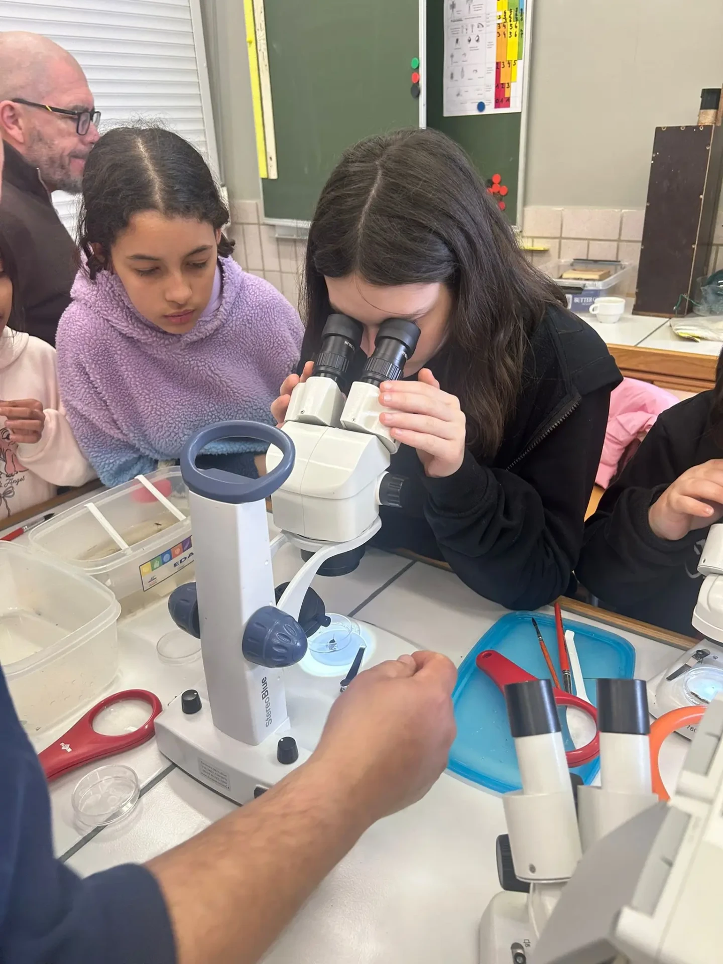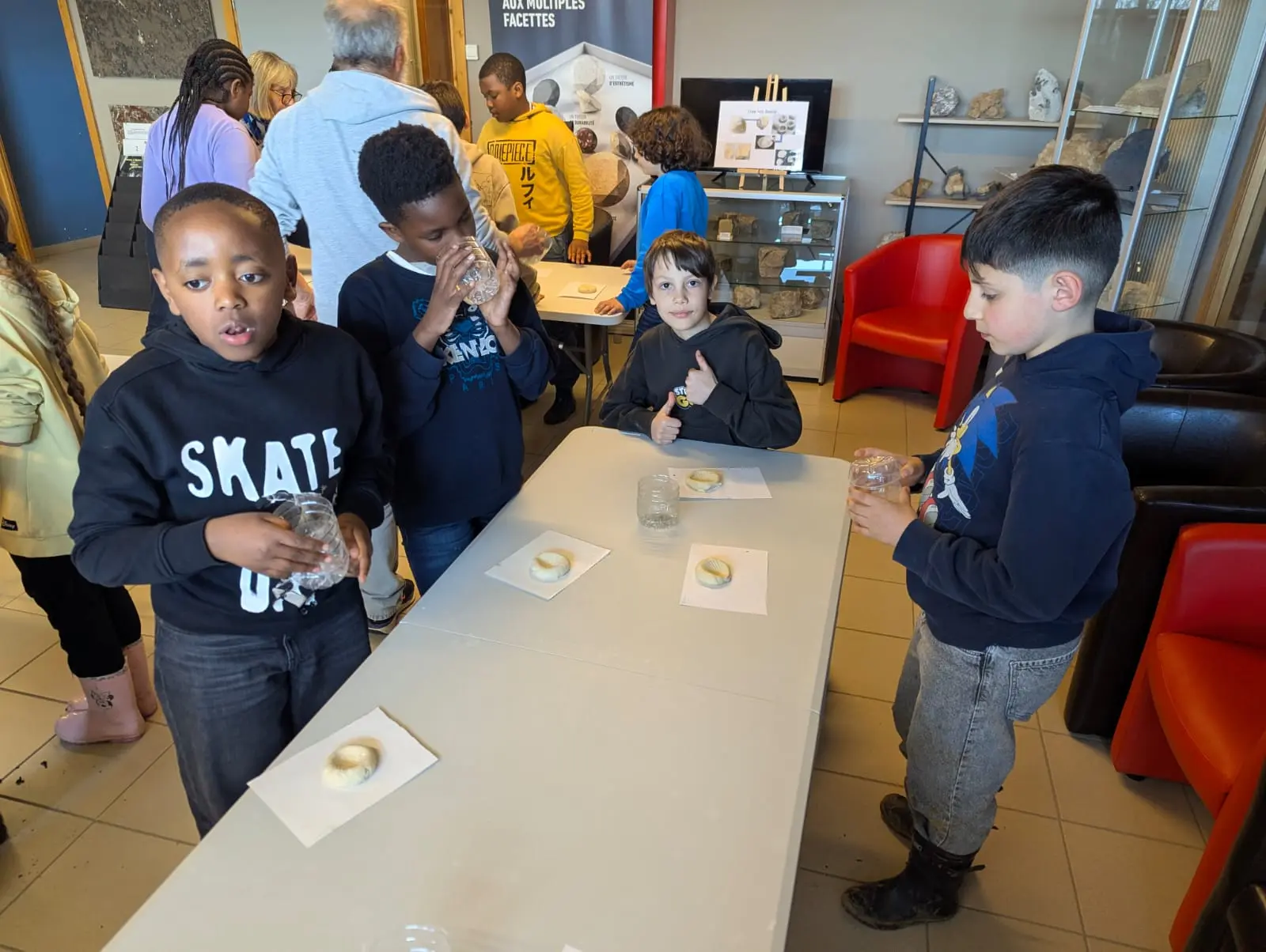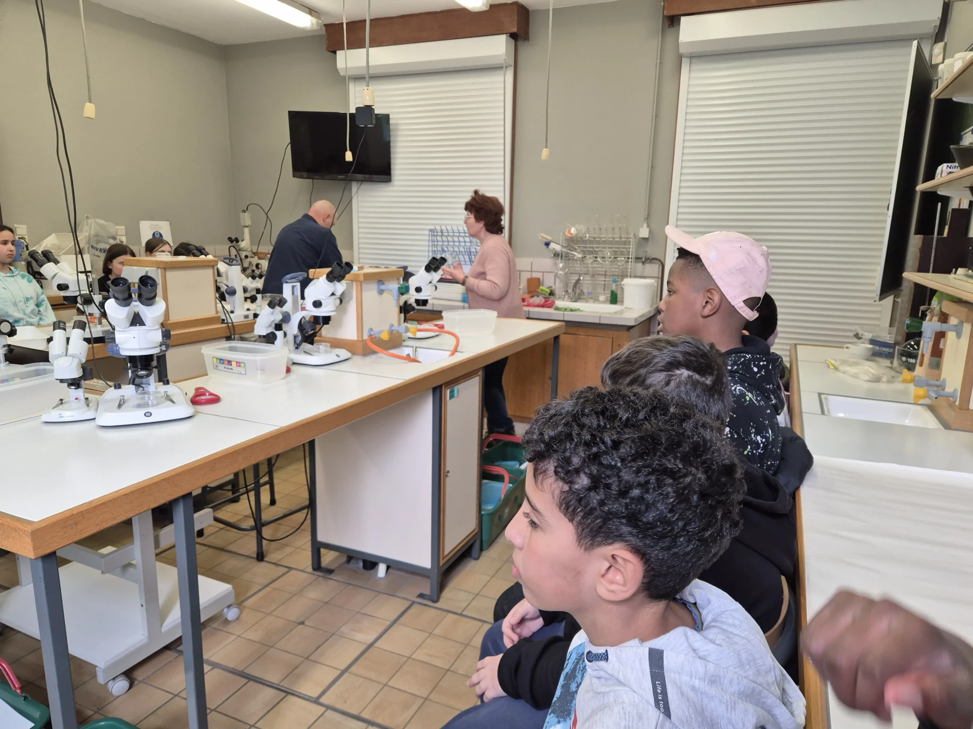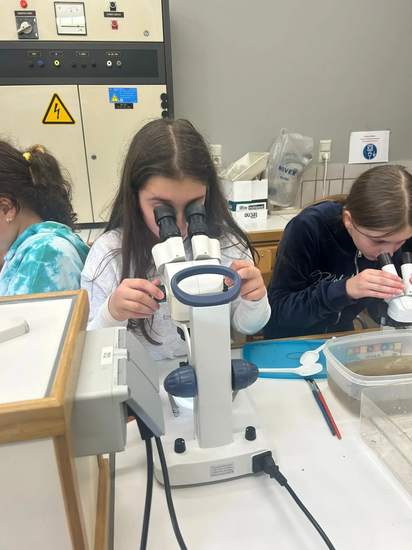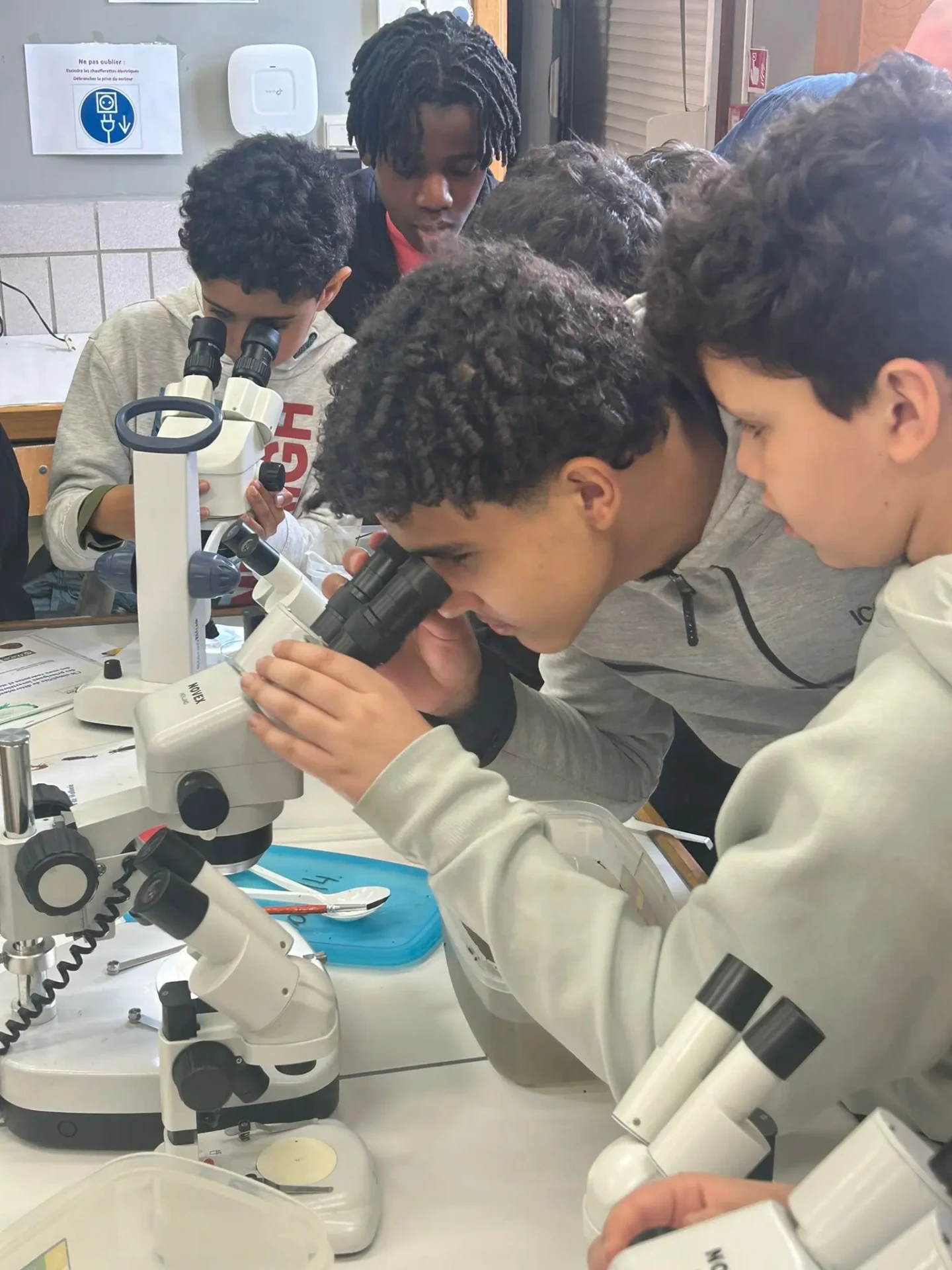 Aujourd’hui, nous avons profité des premiers rayons de soleil. Les enfants de P5 ont eu une formation à l’électricité et sont allés découvrir, à leur tour, les Fondry des Chiens et le musée du marbre. Les élèves de P6 quant à eux ont recueilli dans le ruisseau diverses espèces animales qu’ils ont ensuite observées au binoculaire et classées. Pour terminer la journée, un Grand jeu de Loup-garou.