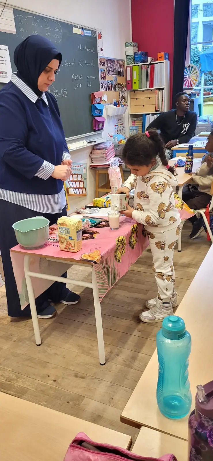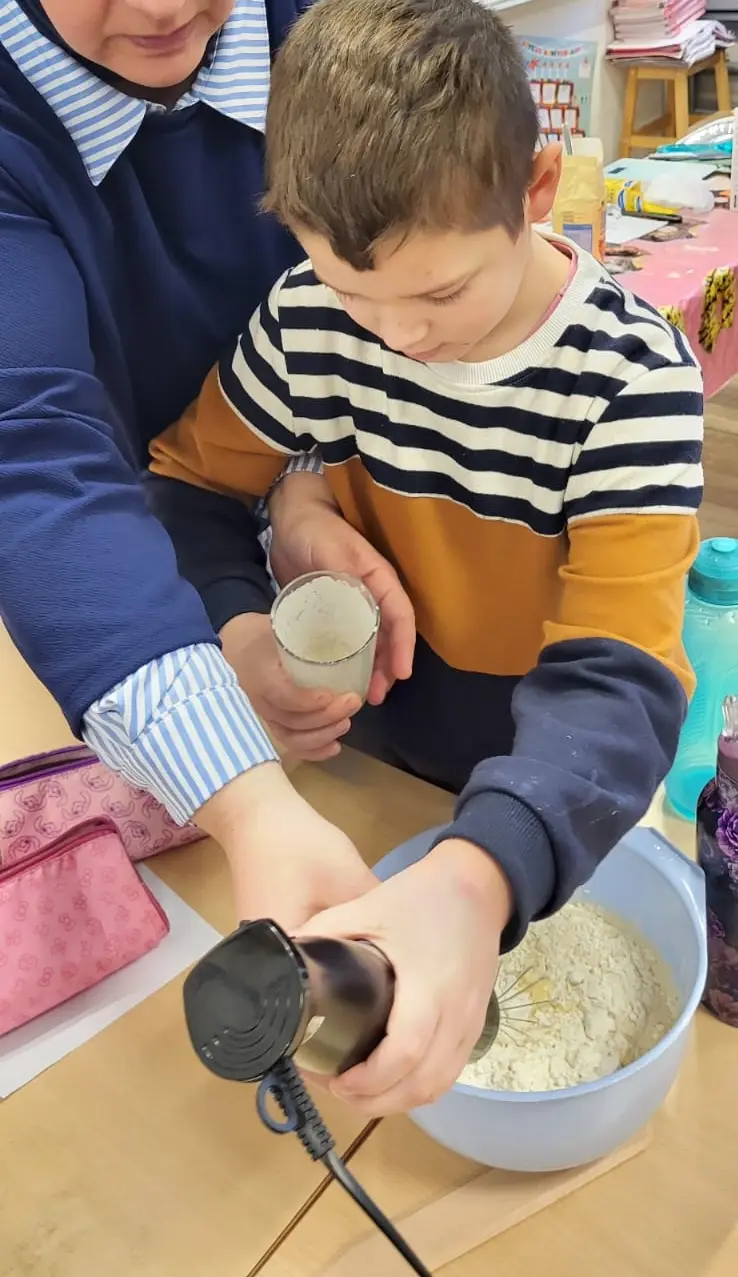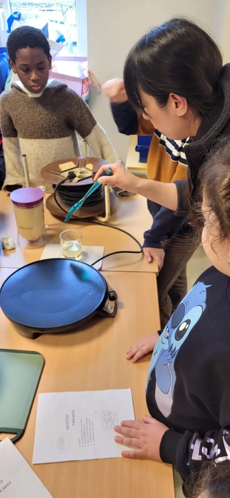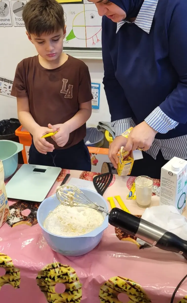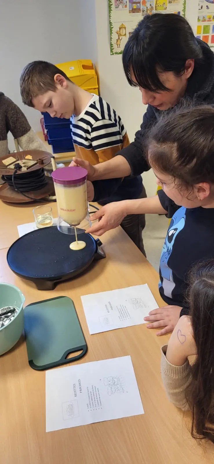 Merci aux parents d’avoir réalisés des pancakes et partagés leur savoir et recette avec les enfants.