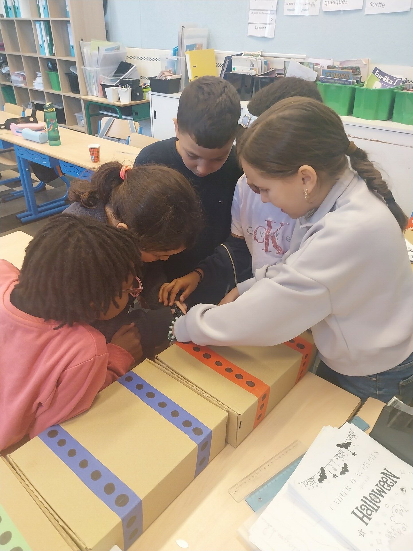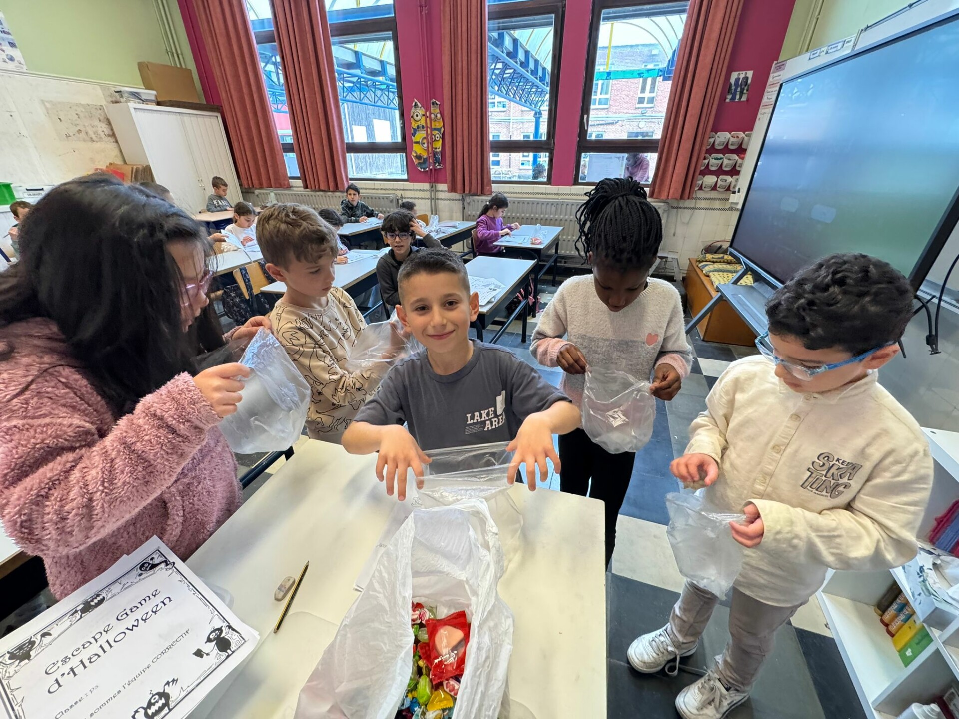 Aujourd’hui, tous les élèves de 3èmes et 4èmes ont réussi à résoudre les 5 énigmes de leur escape game. Ils ont réussi à trouver le code du cadenas pour libérer tous les bonbons. Bravo à eux pour leur travail d’équipe Un merci spécial aux mamans de l’association des parents qui ont encadré les enfants toute la journée.