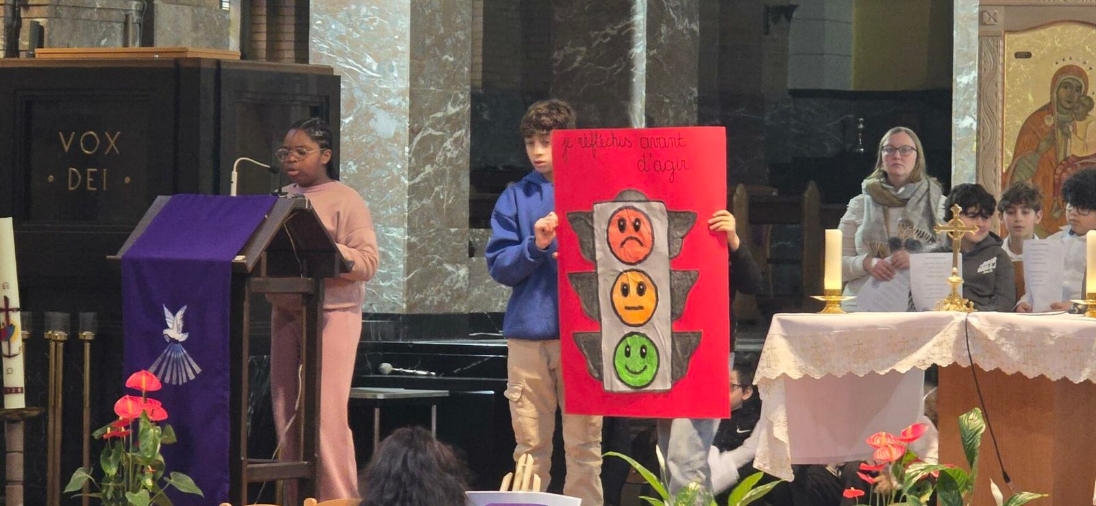 Il restait encore beaucoup de photos de cette très belle cérémonie à vous partager, voilà qui est fait … Cette année, les enfants ont pris conscience qu’il était important de « Réfléchir avant d’agir« .