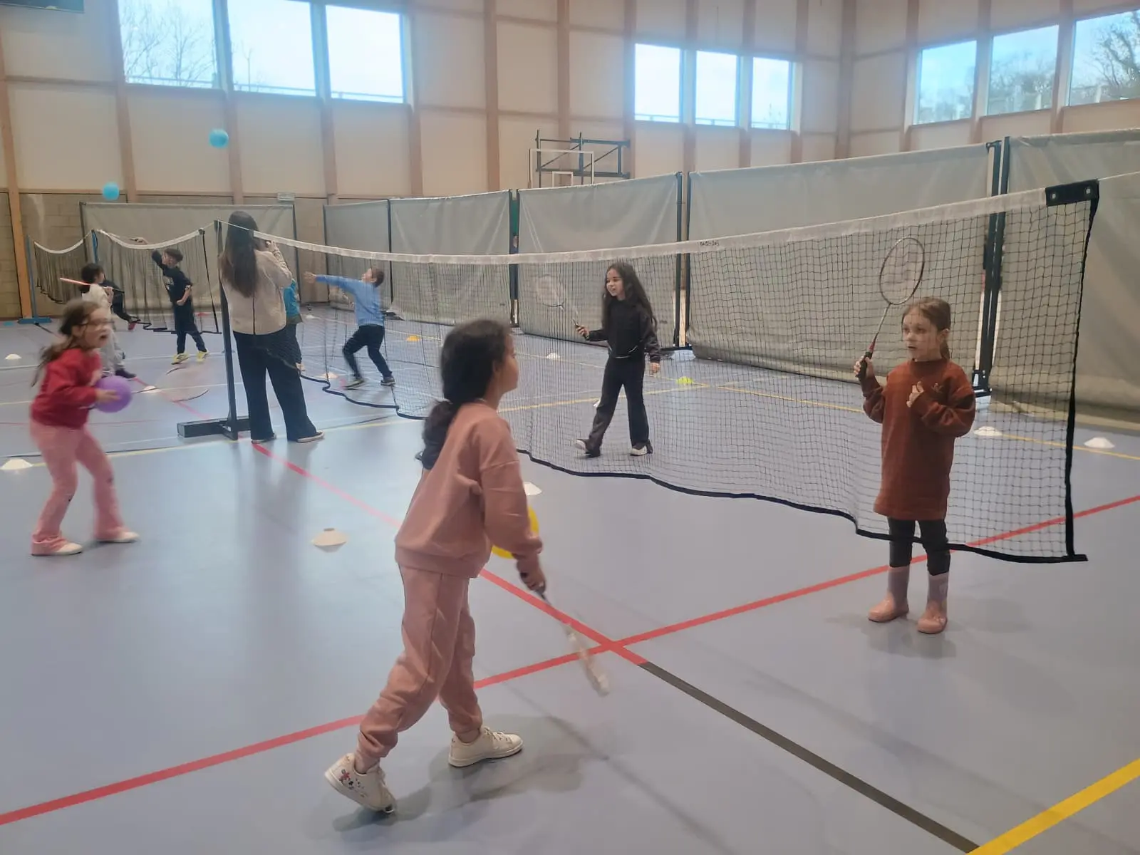 Nous avons passé une magnifique journée aujourd’hui, rythmée par de belles activités : escalade, kin-ball, cirque et jeux de raquettes.