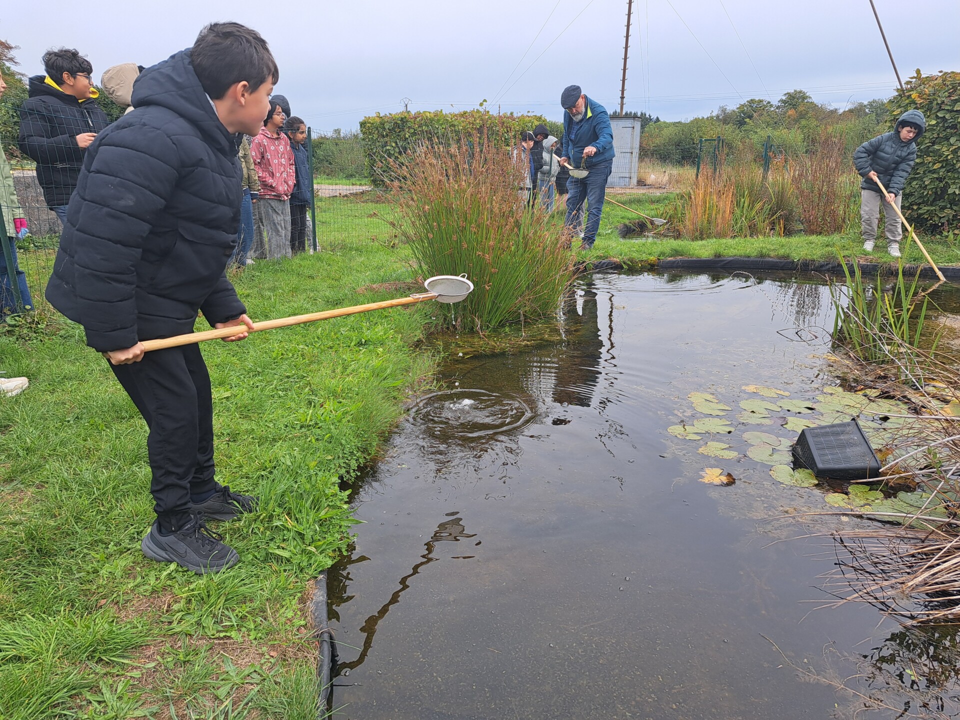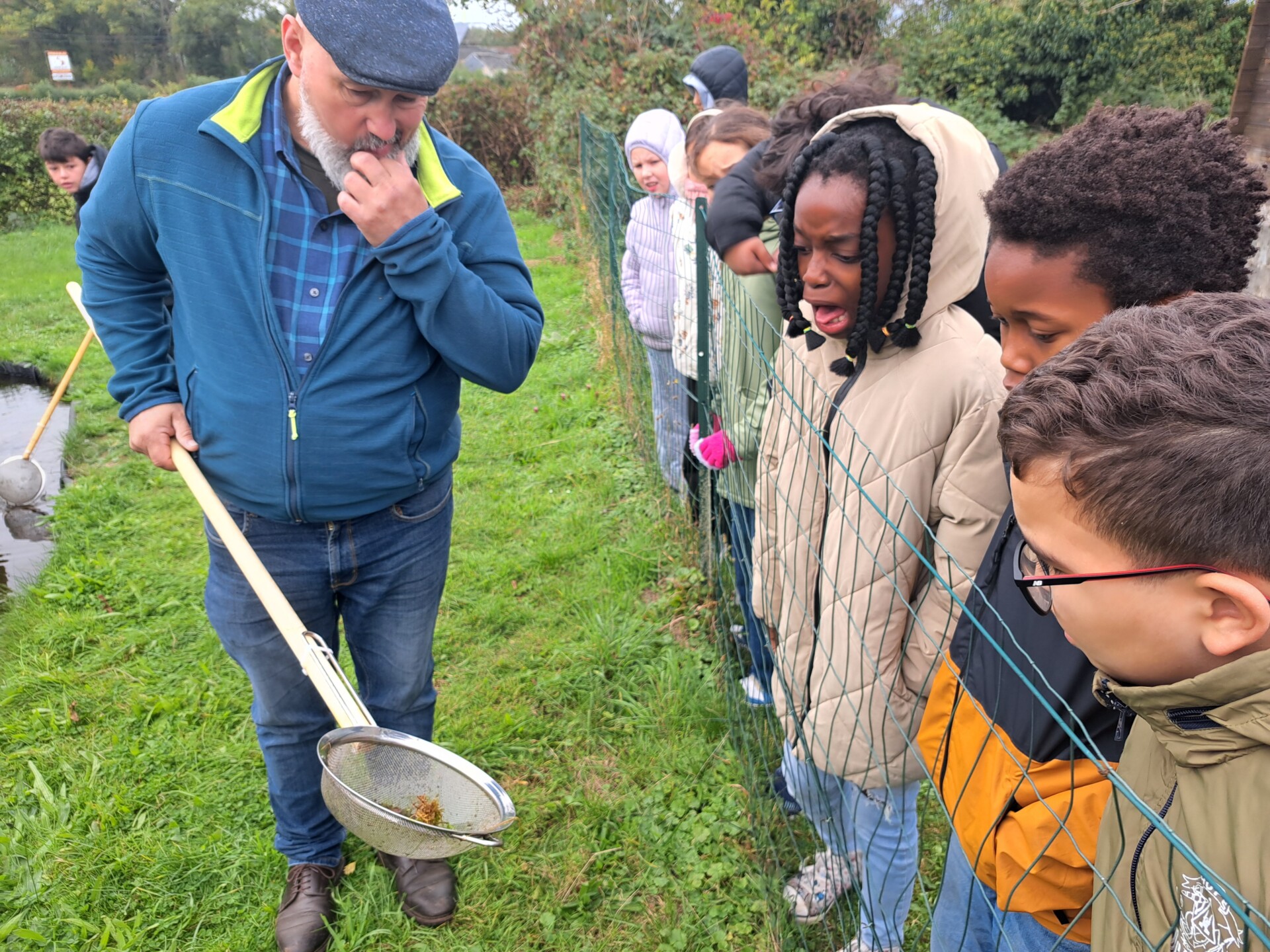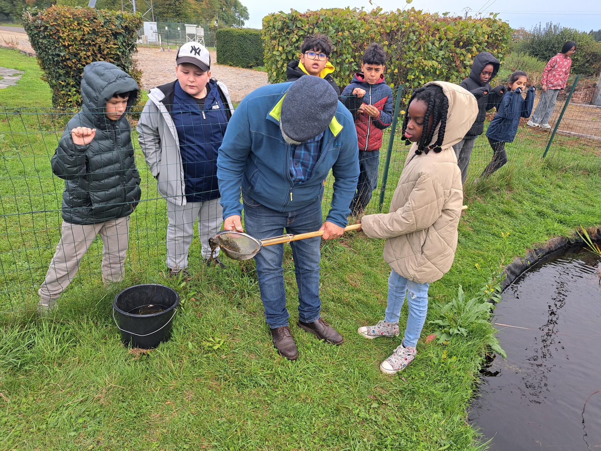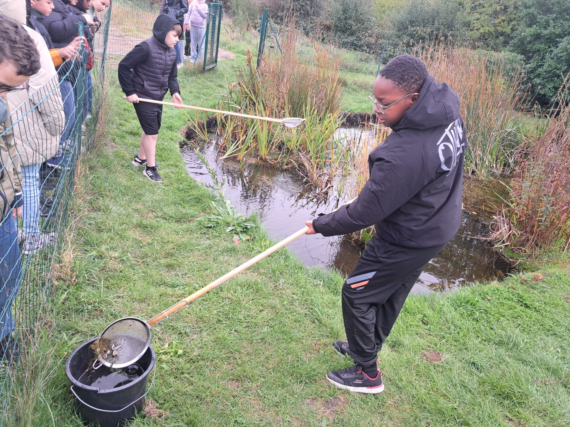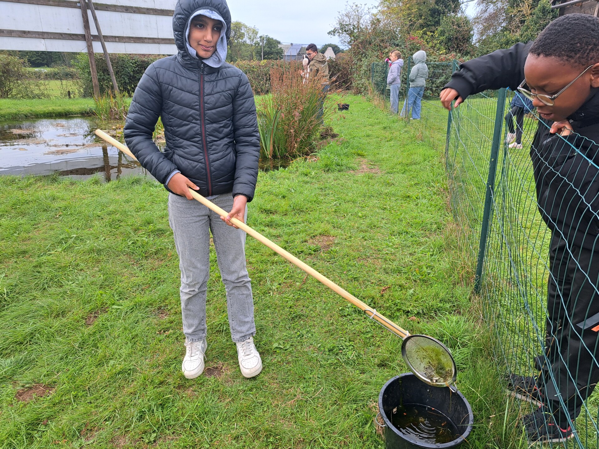 Au programme : pêcher dans la mare, puis observer les petits animaux au binoculaire
