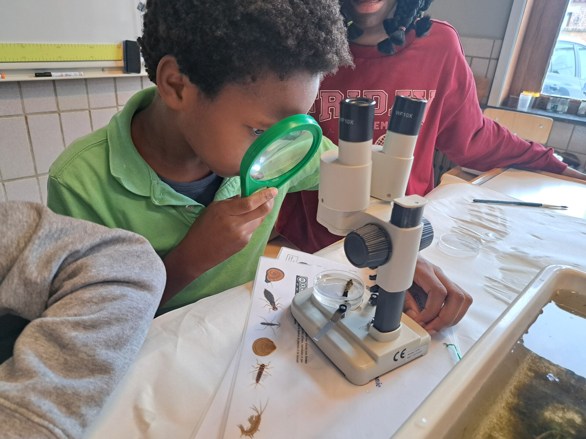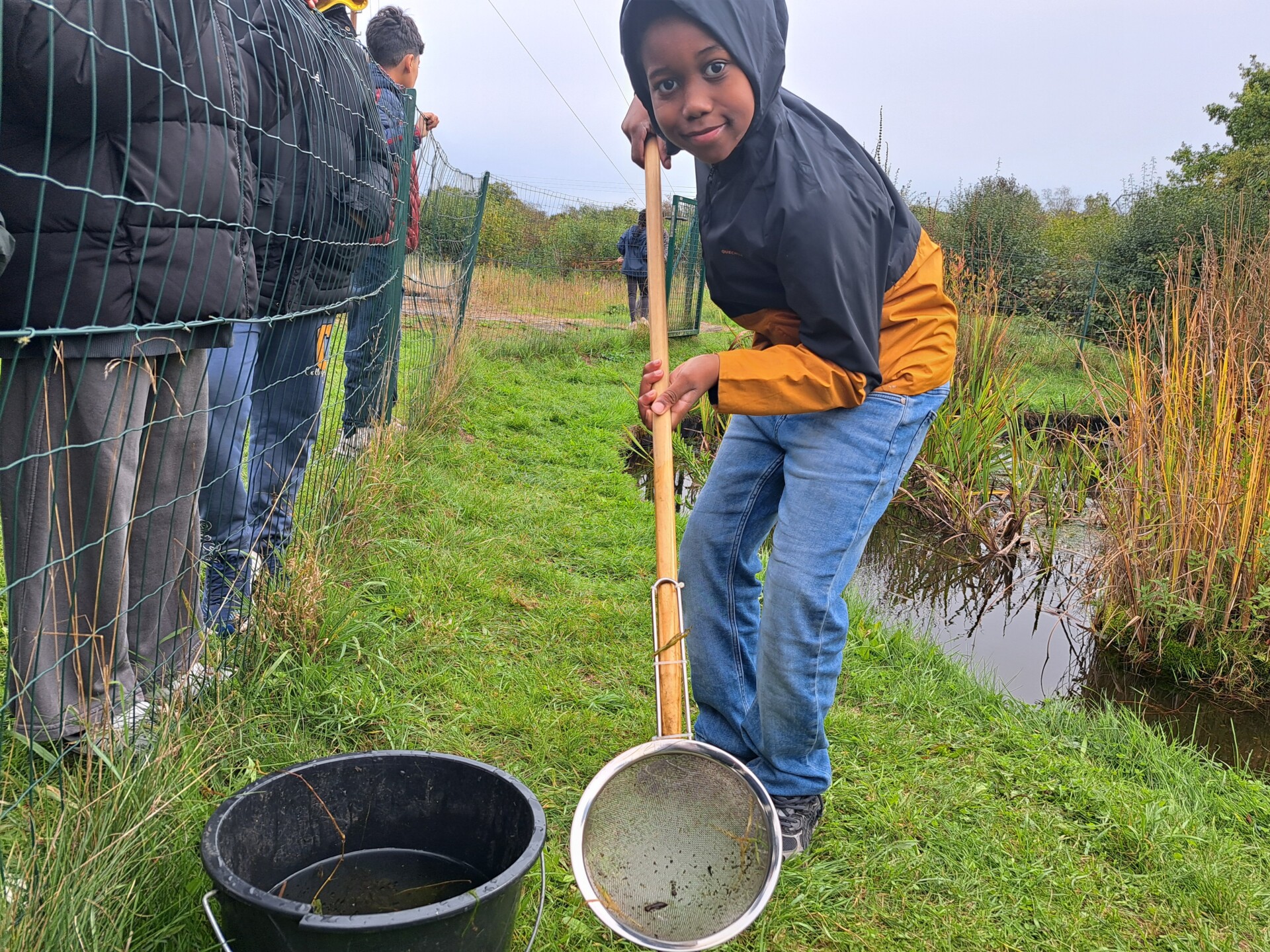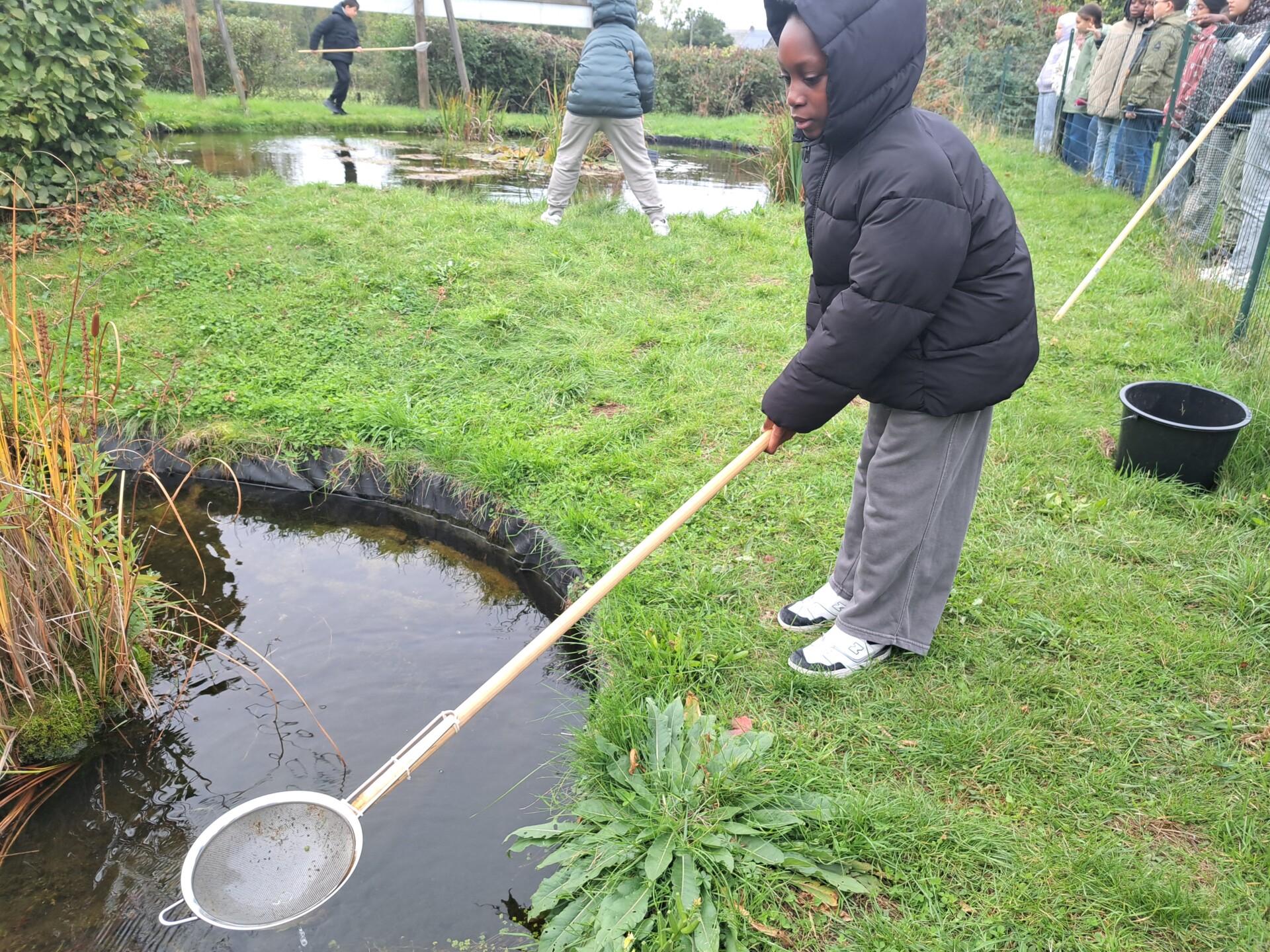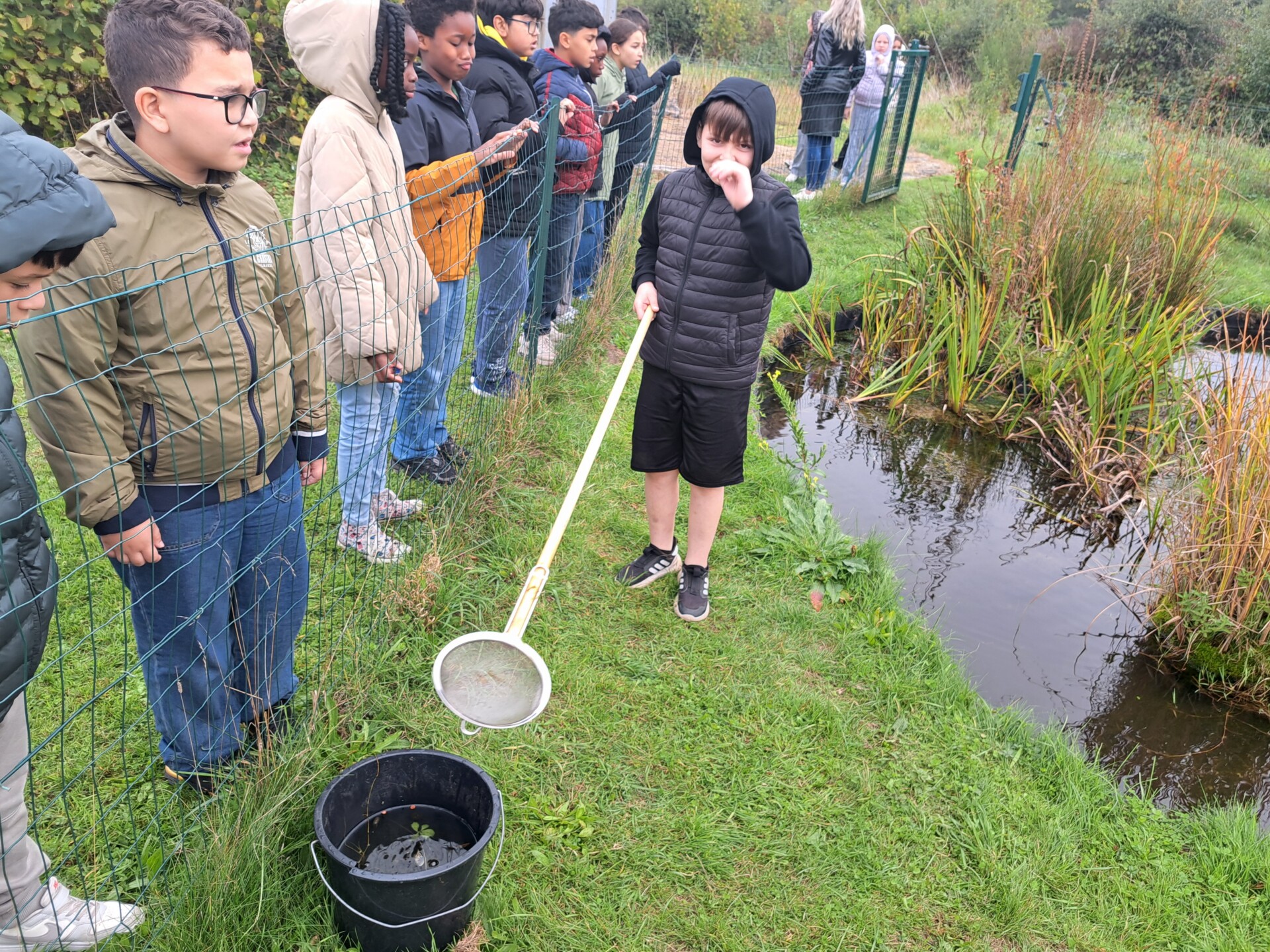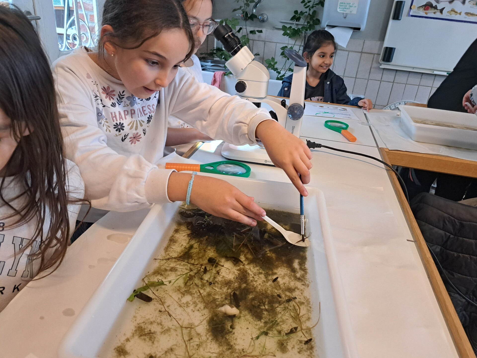 Au programme : pêcher dans la mare, puis observer les petits animaux au binoculaire