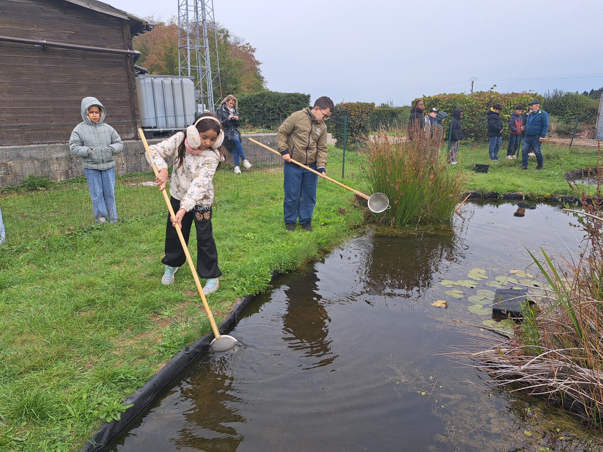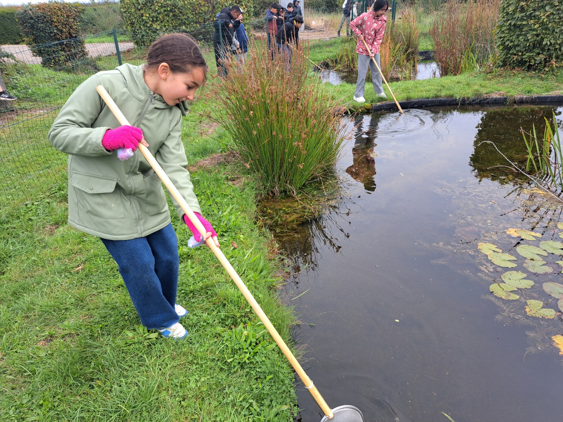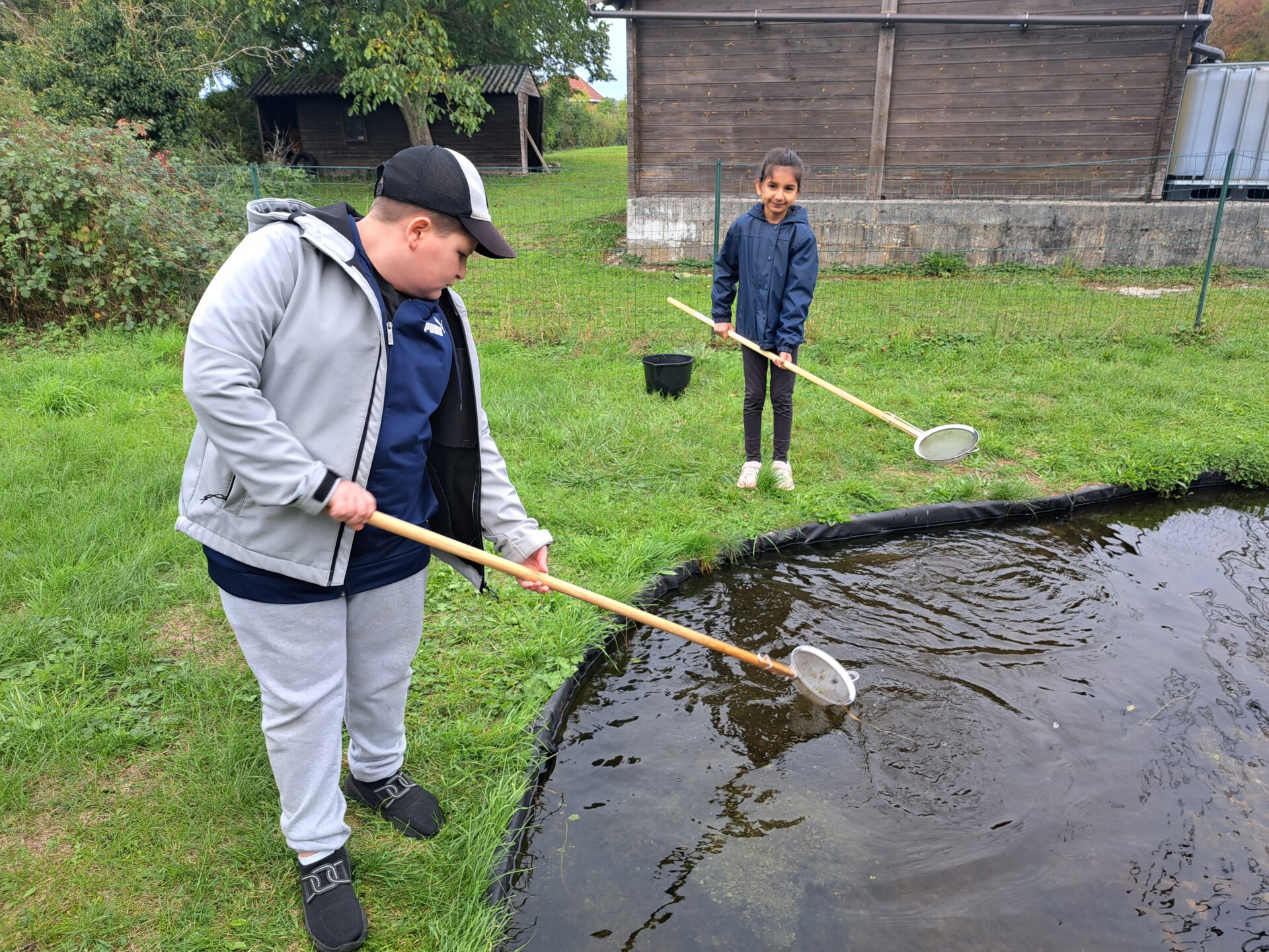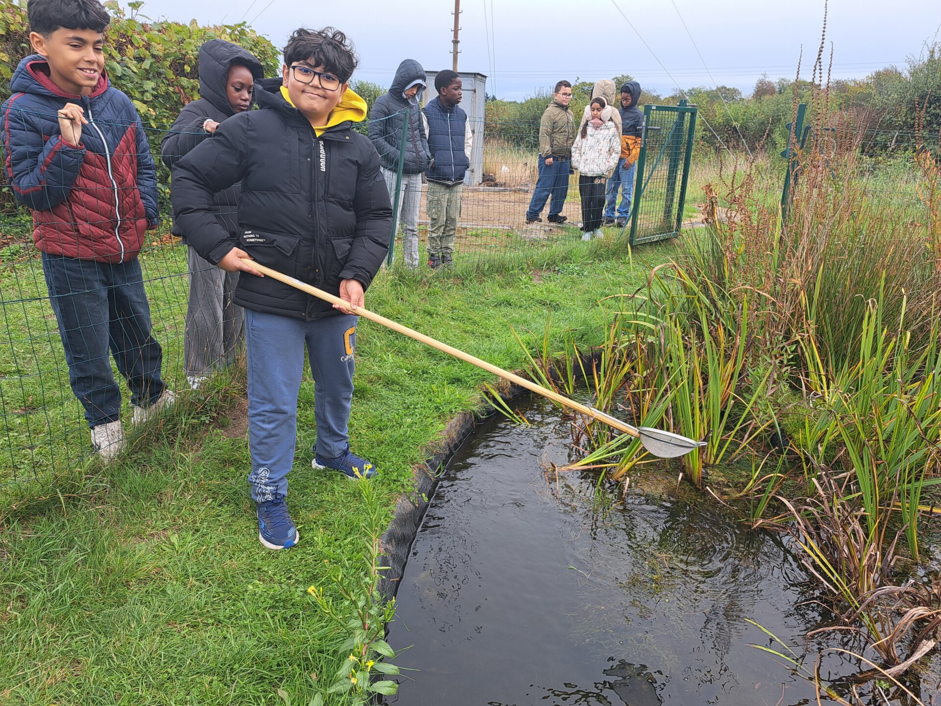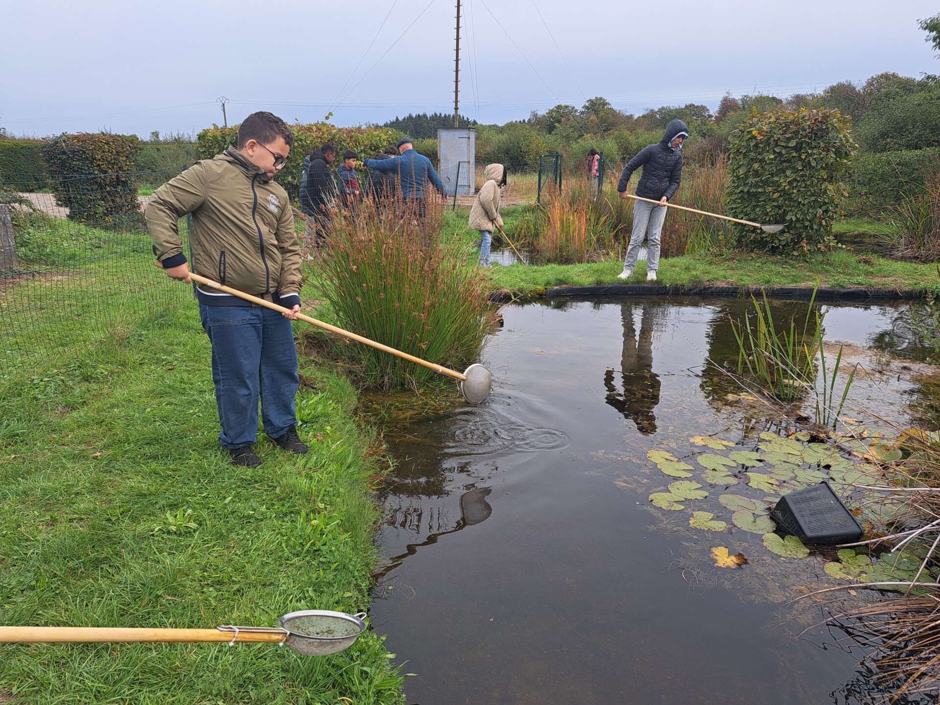 Au programme : pêcher dans la mare, puis observer les petits animaux au binoculaire