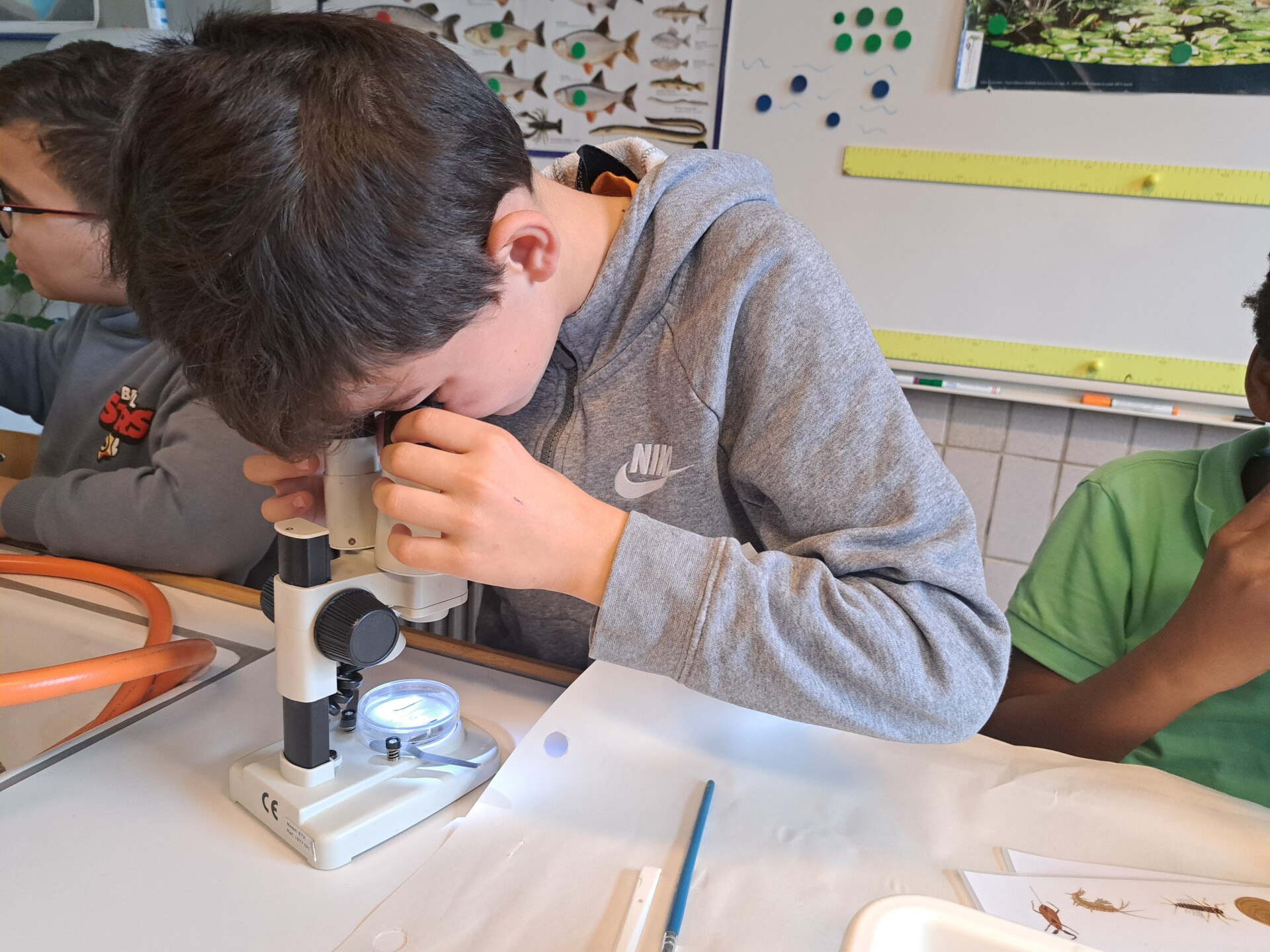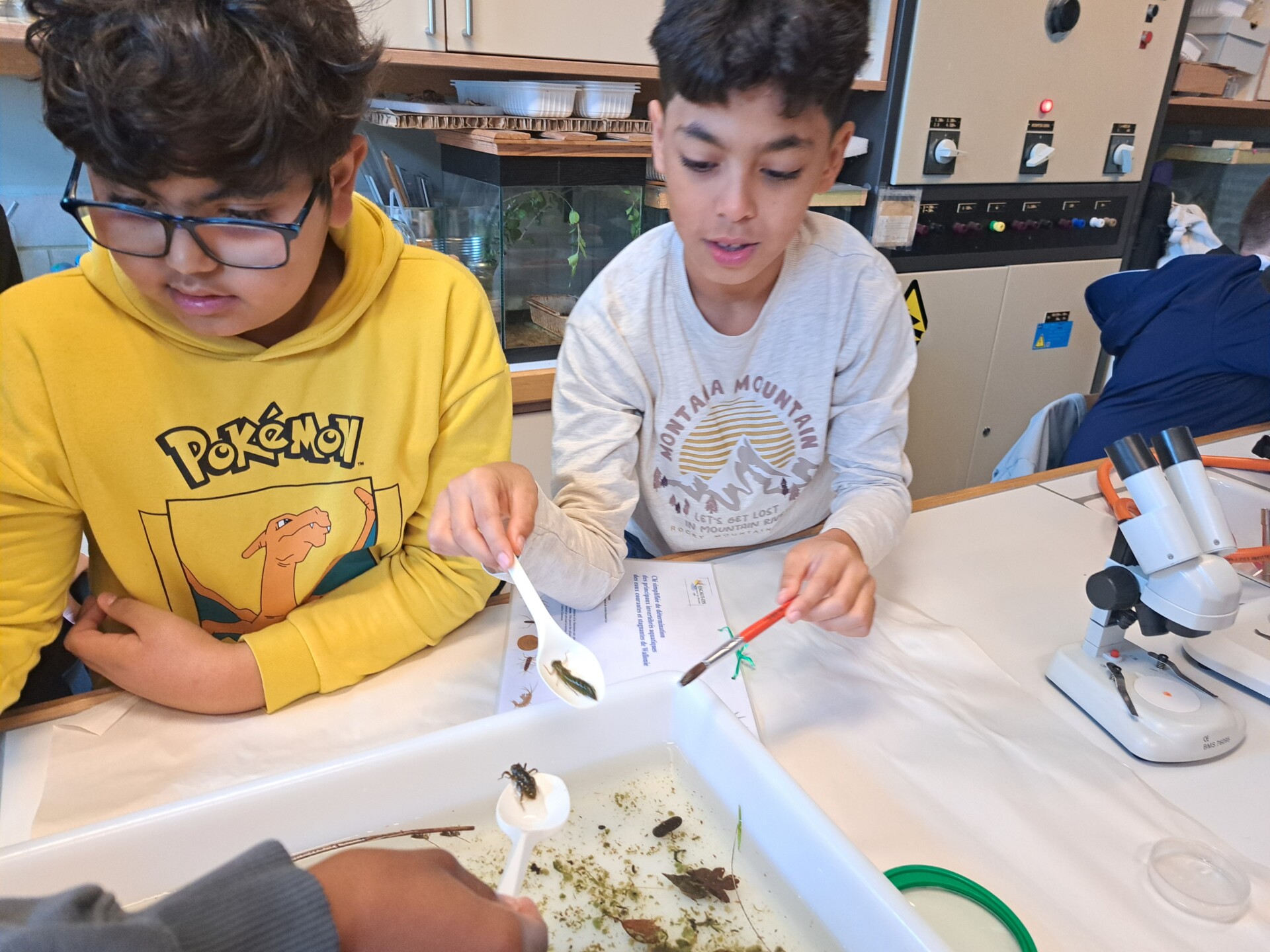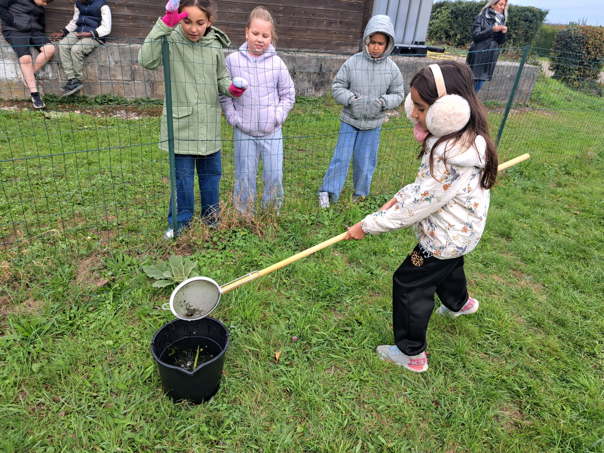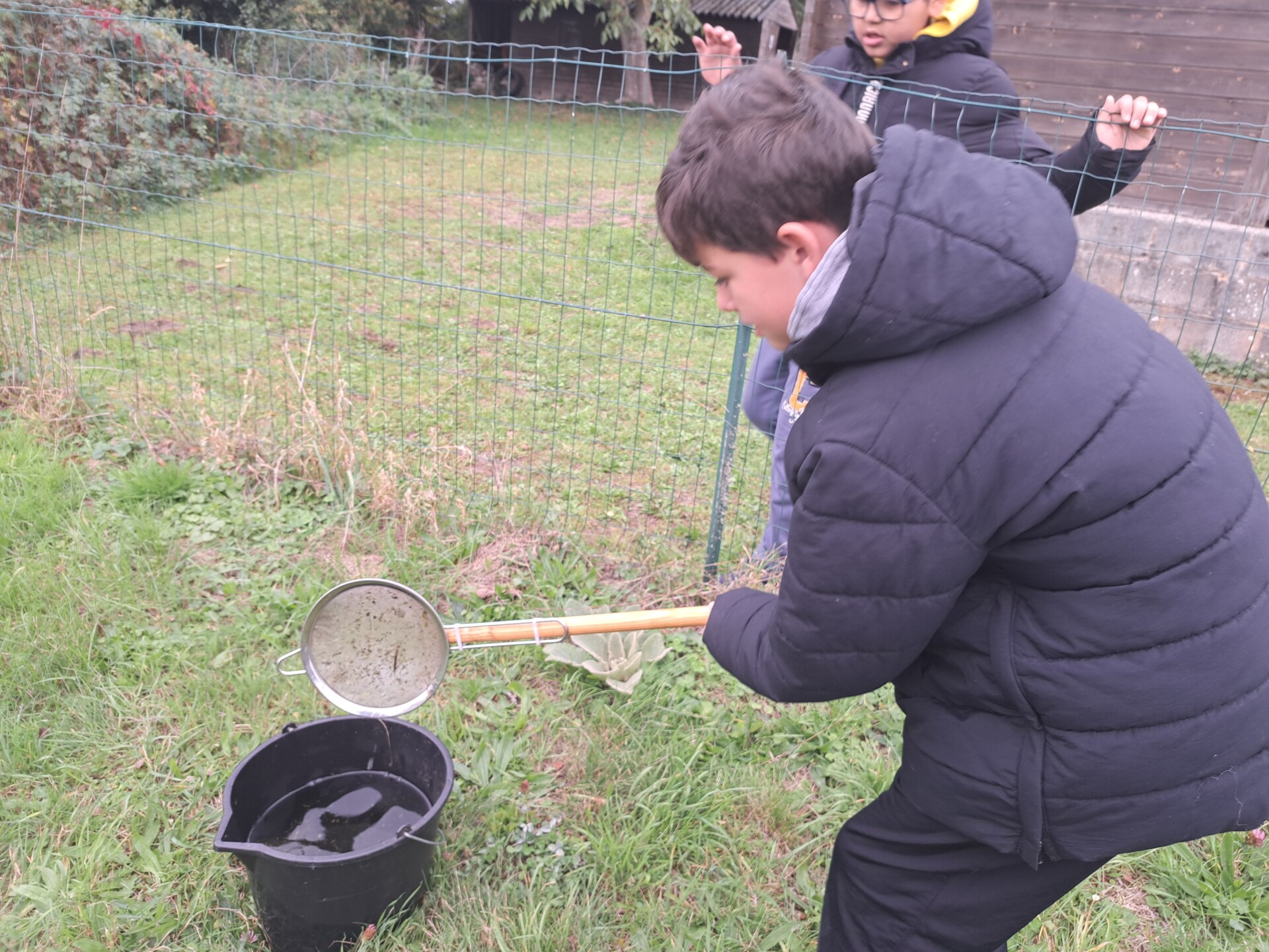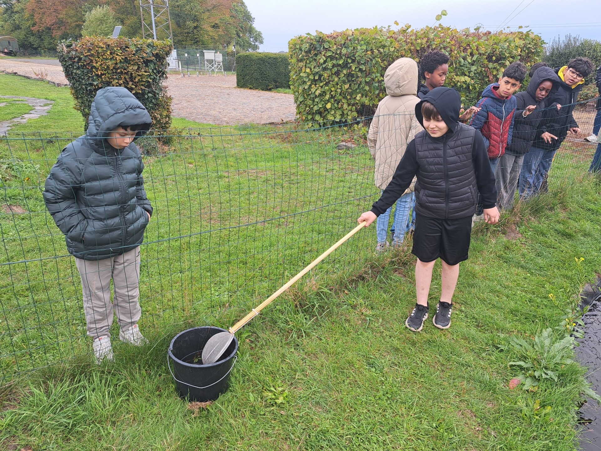 Au programme : pêcher dans la mare, puis observer les petits animaux au binoculaire