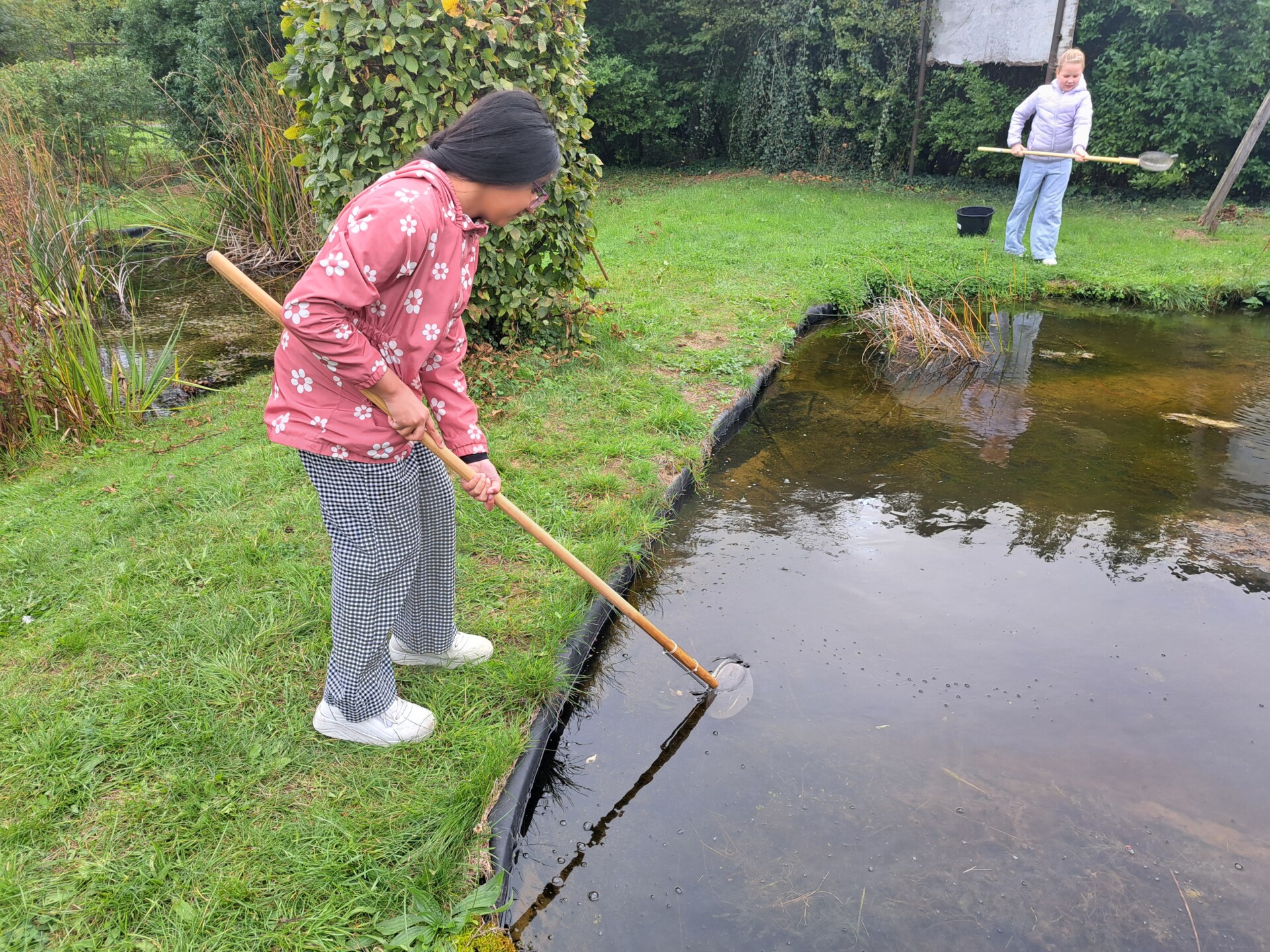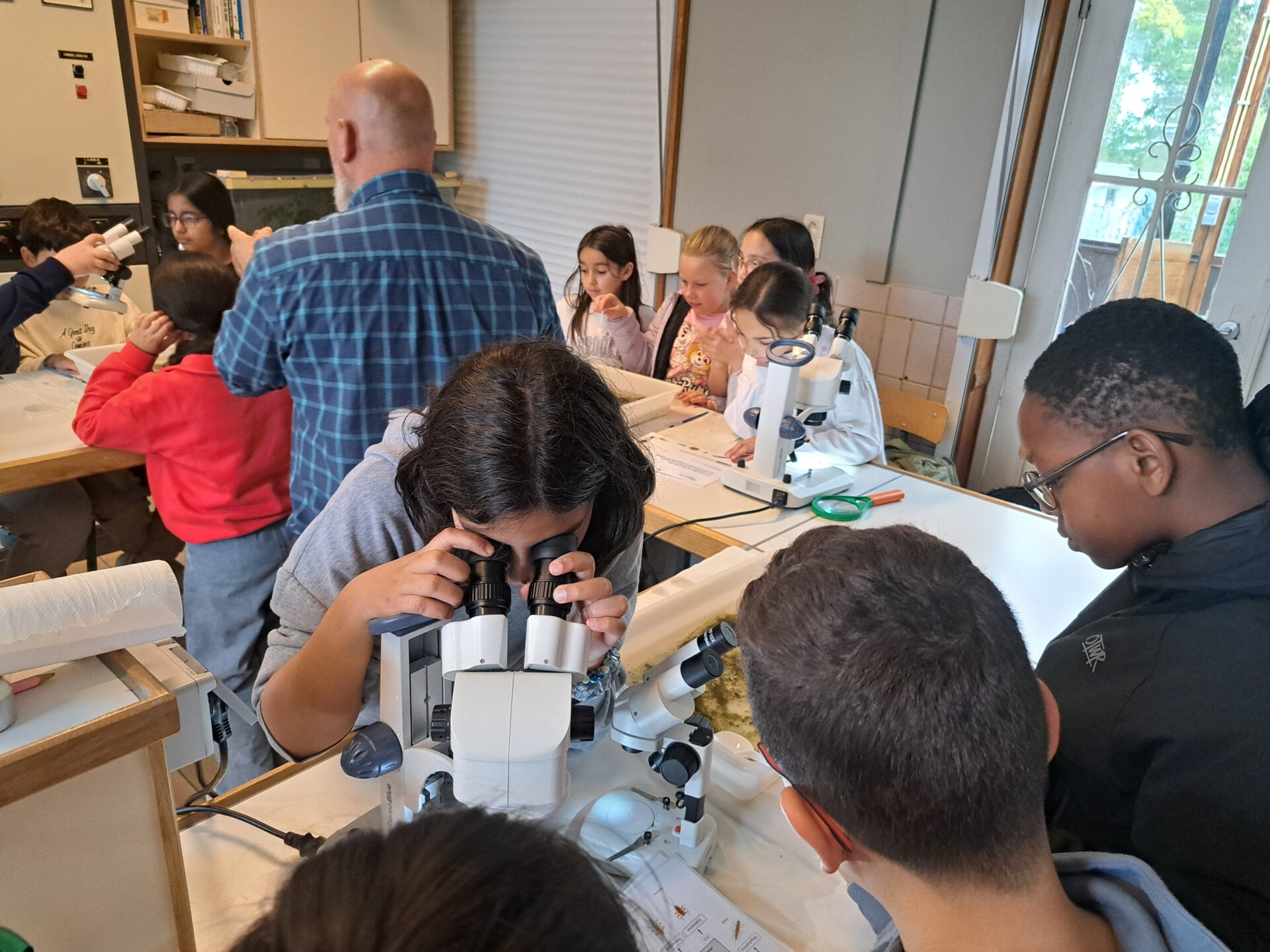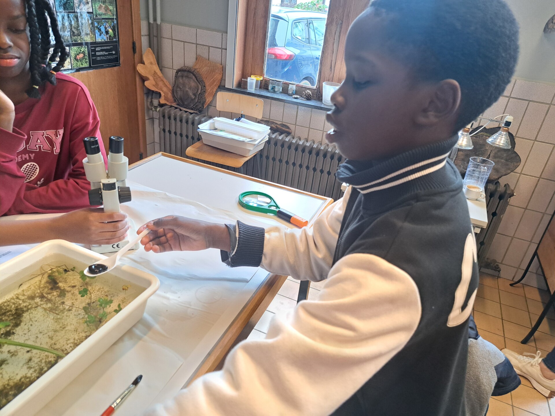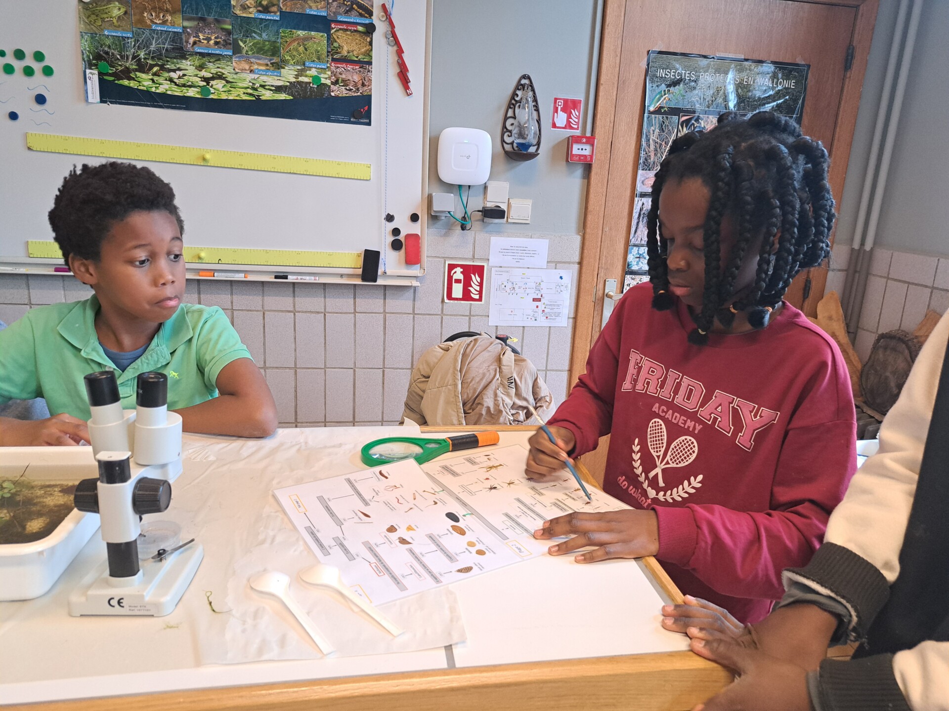 Au programme : pêcher dans la mare, puis observer les petits animaux au binoculaire
