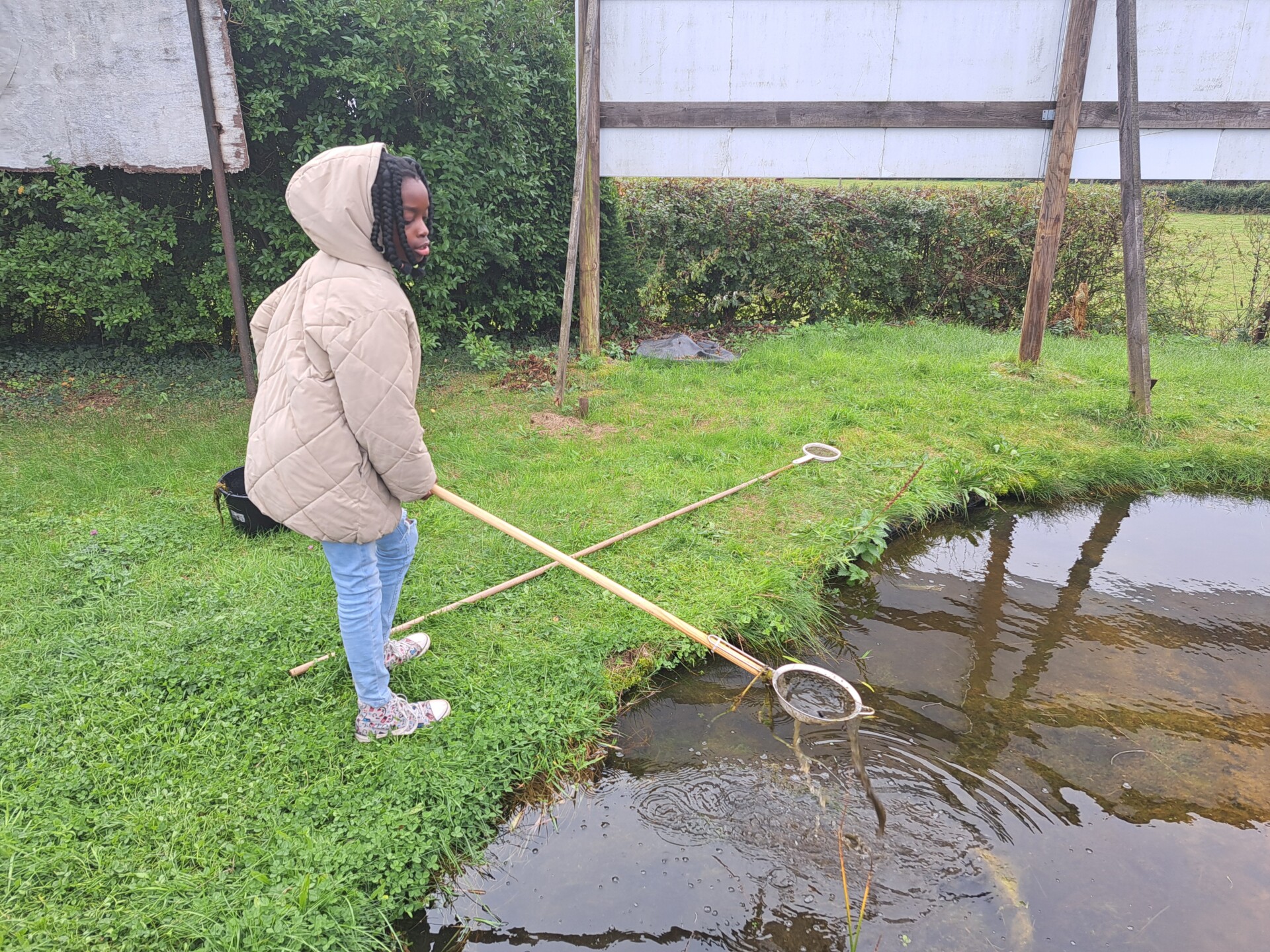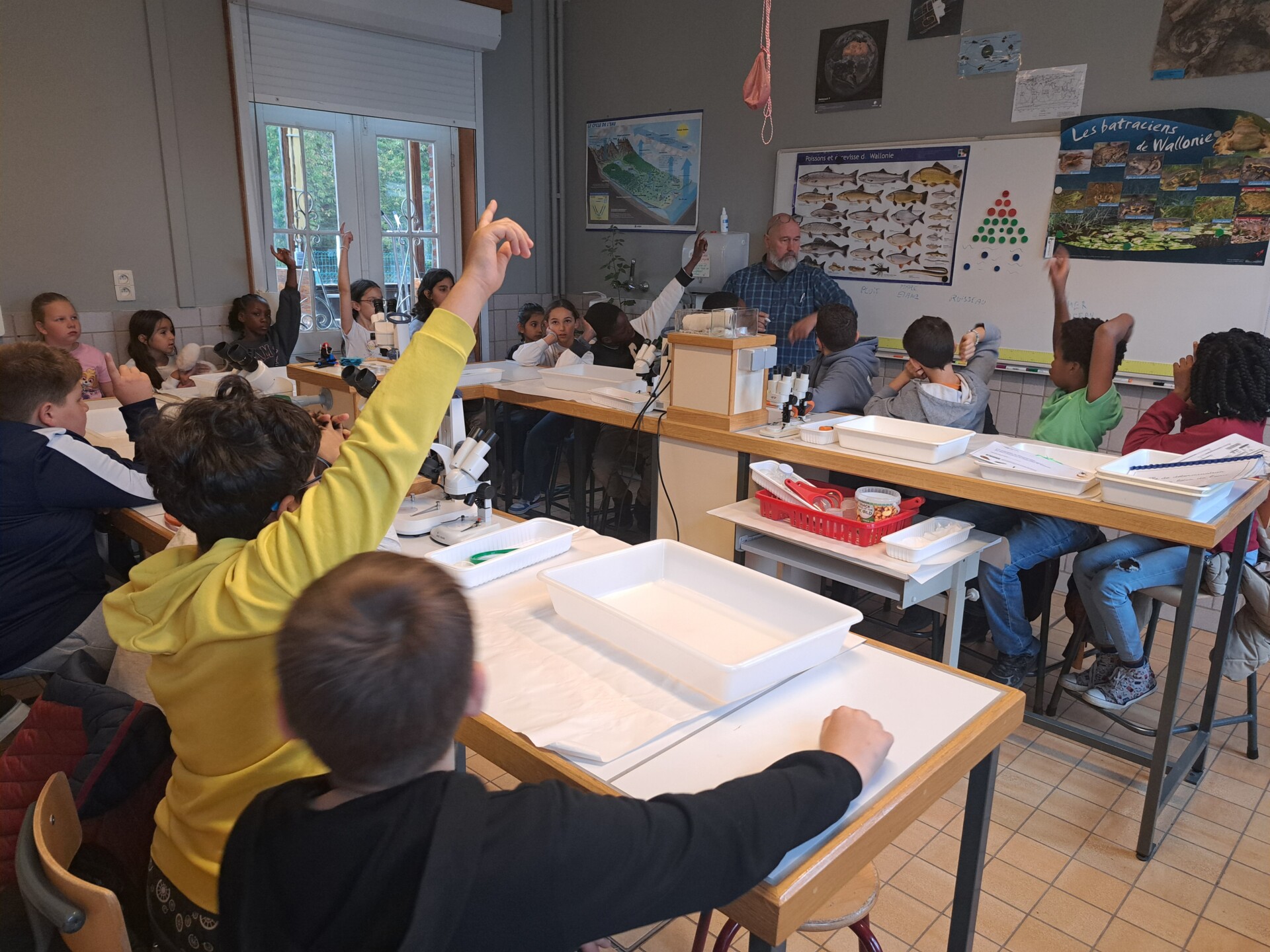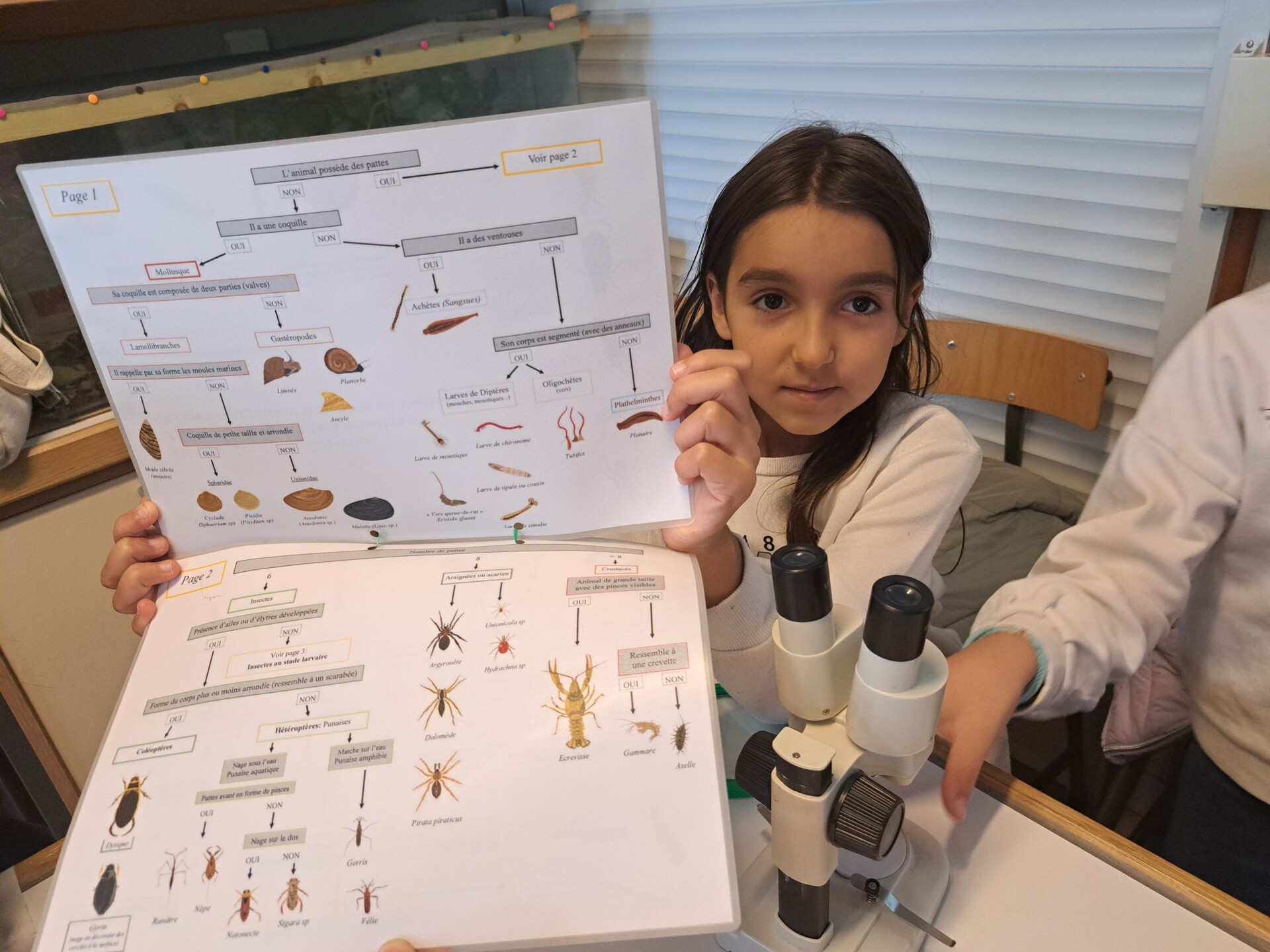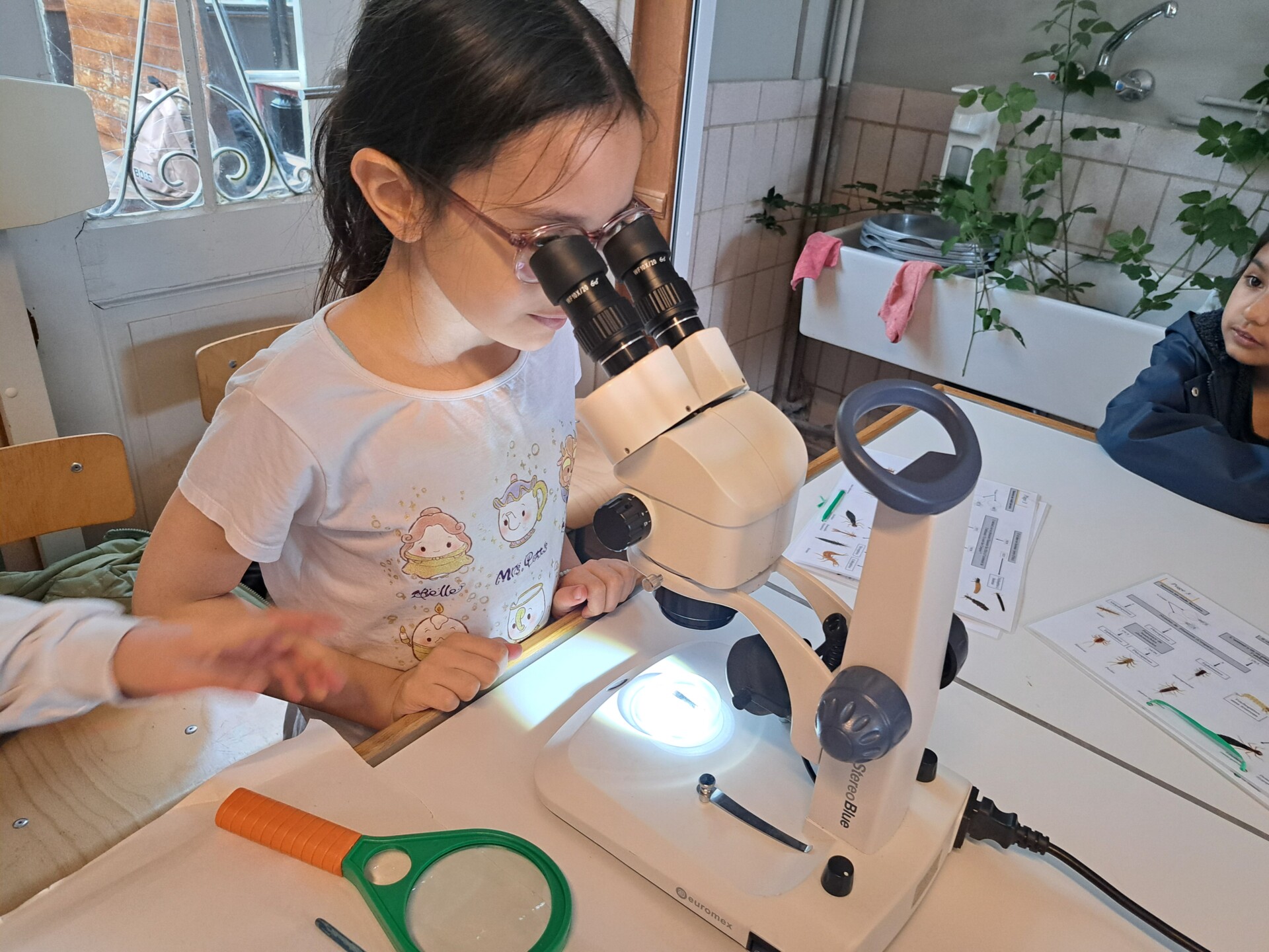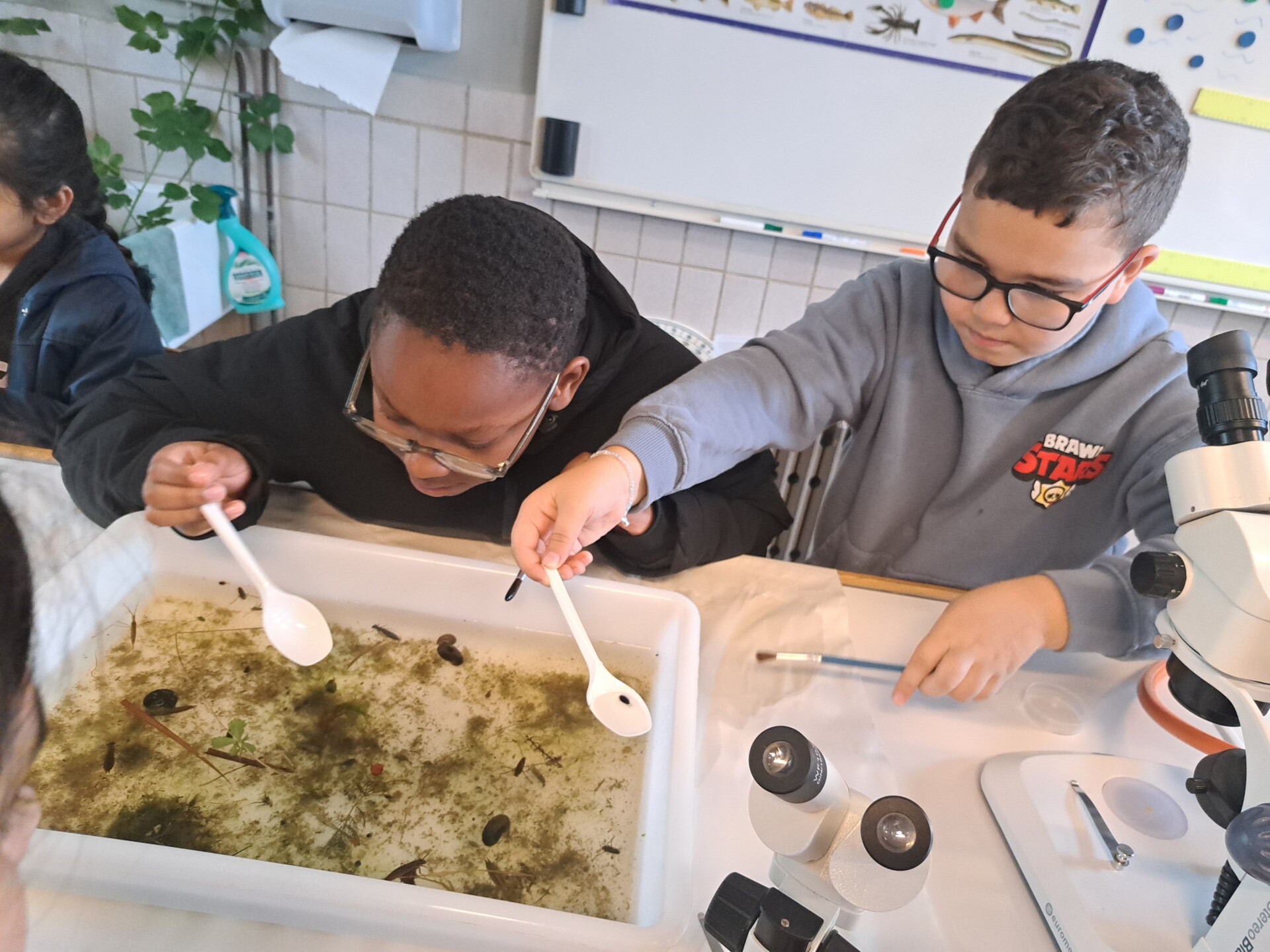 Au programme : pêcher dans la mare, puis observer les petits animaux au binoculaire