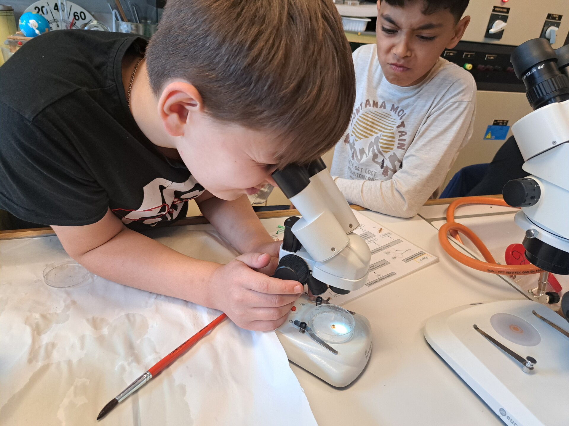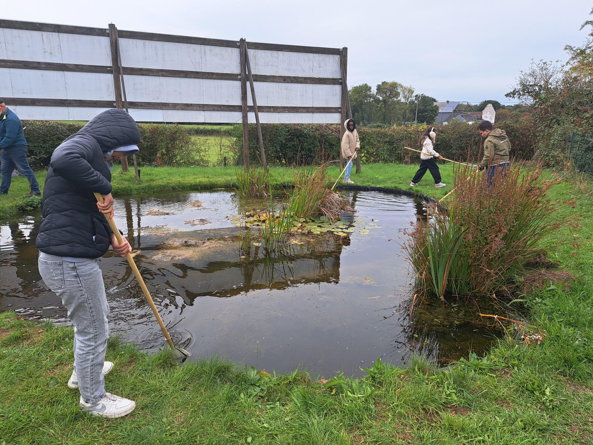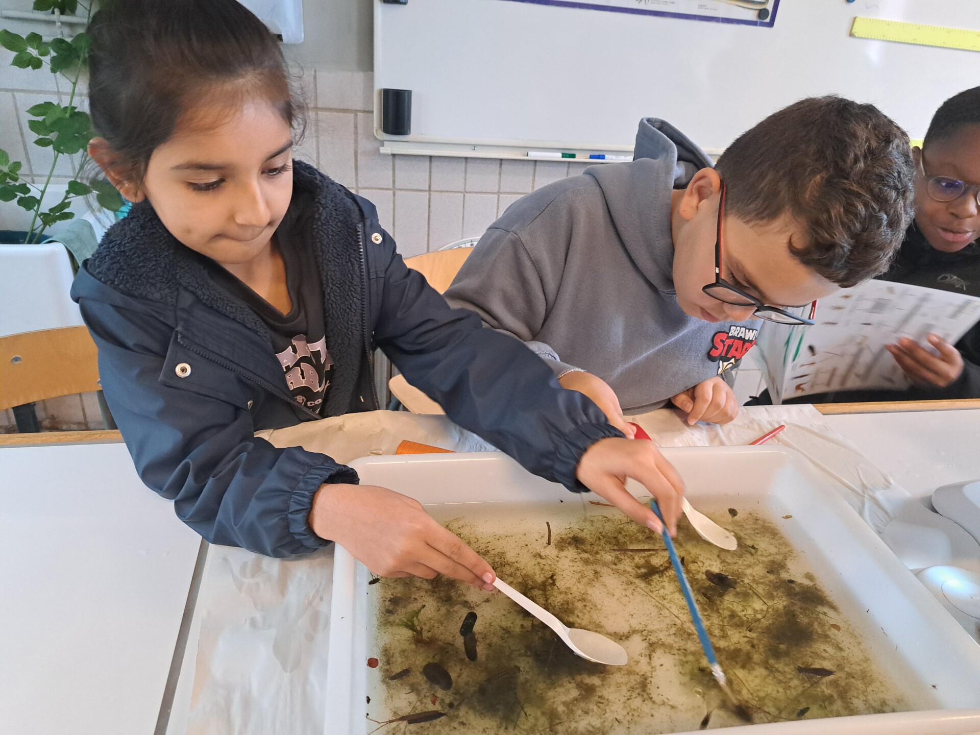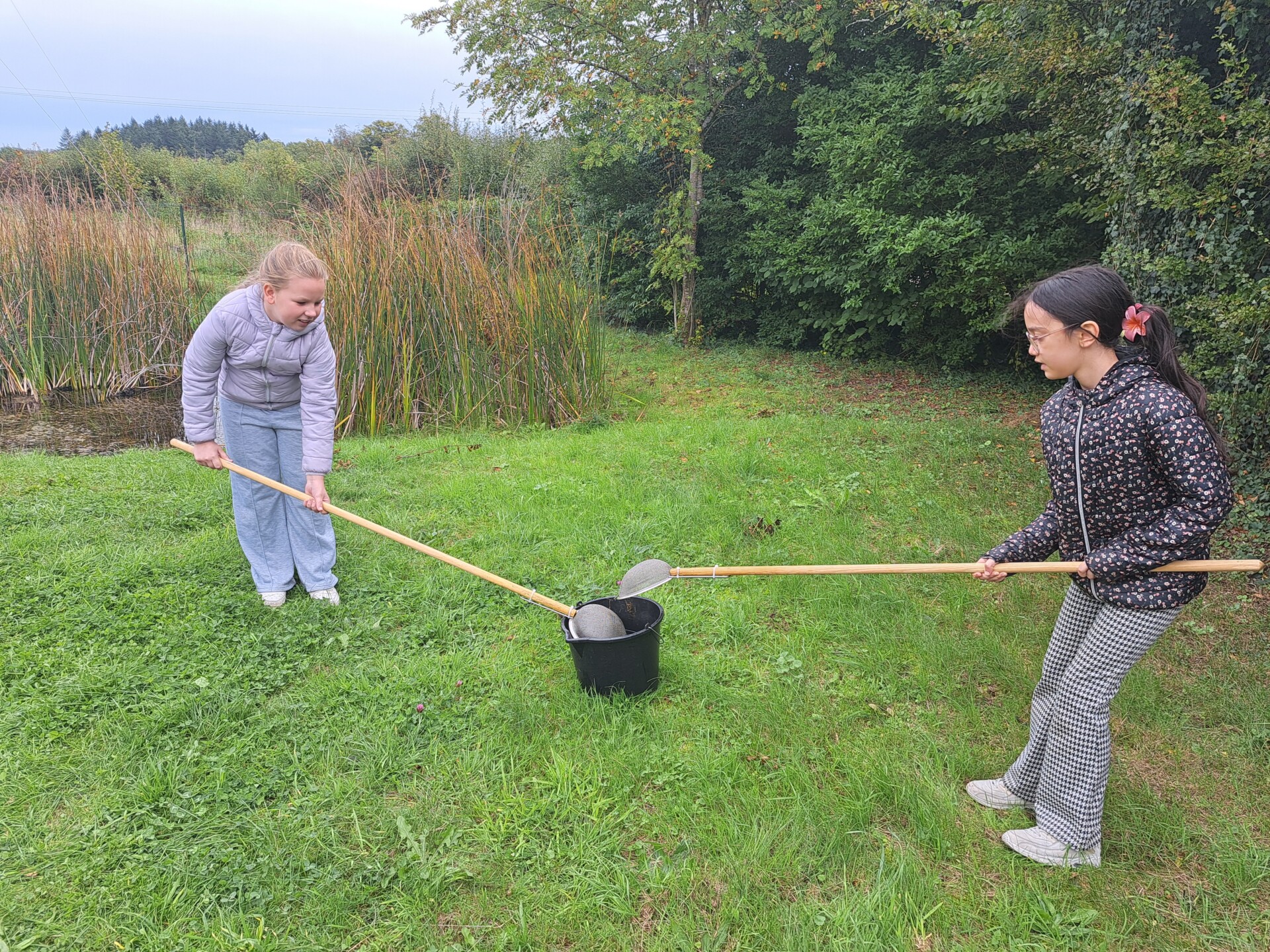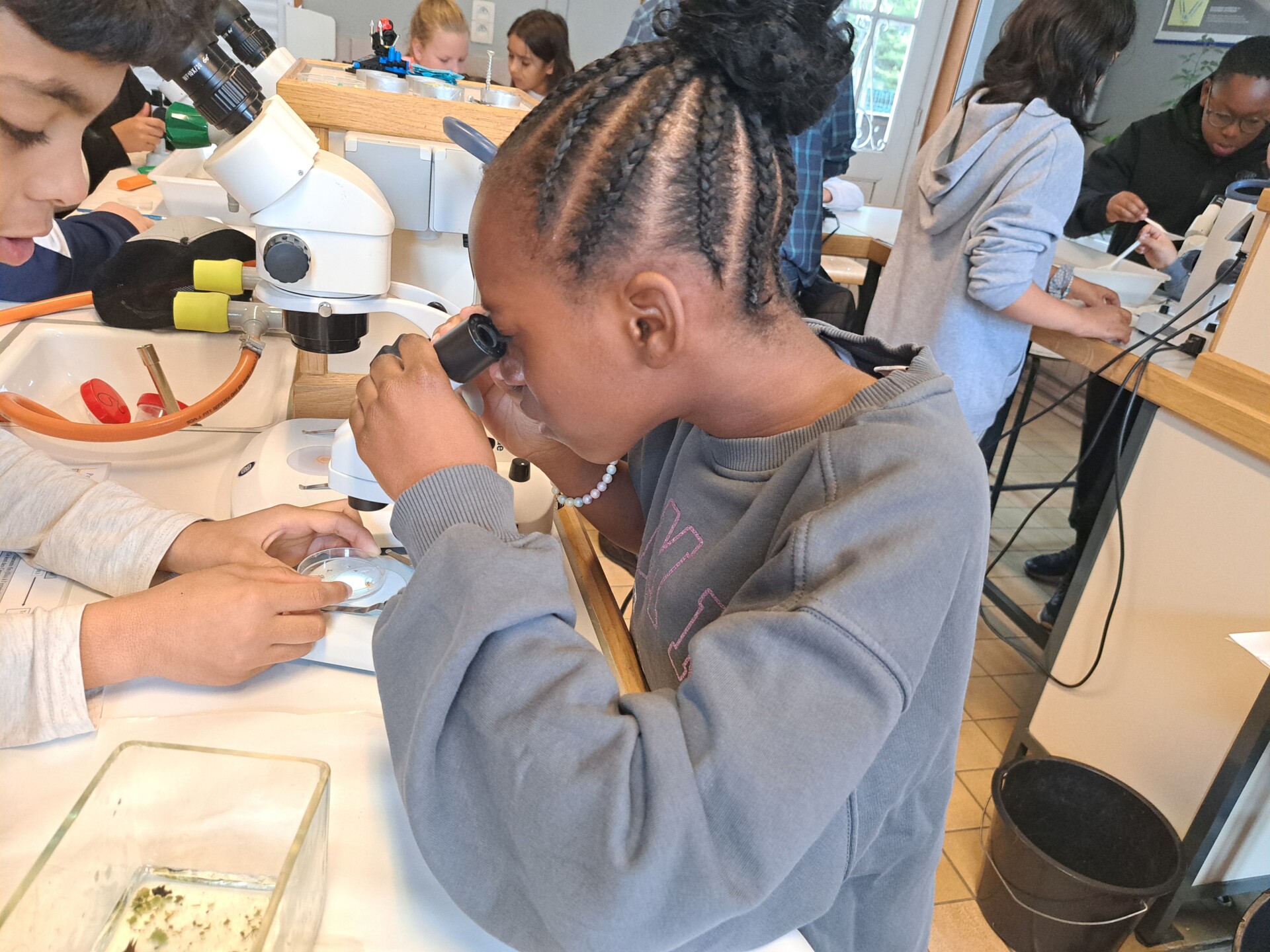 Au programme : pêcher dans la mare, puis observer les petits animaux au binoculaire