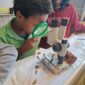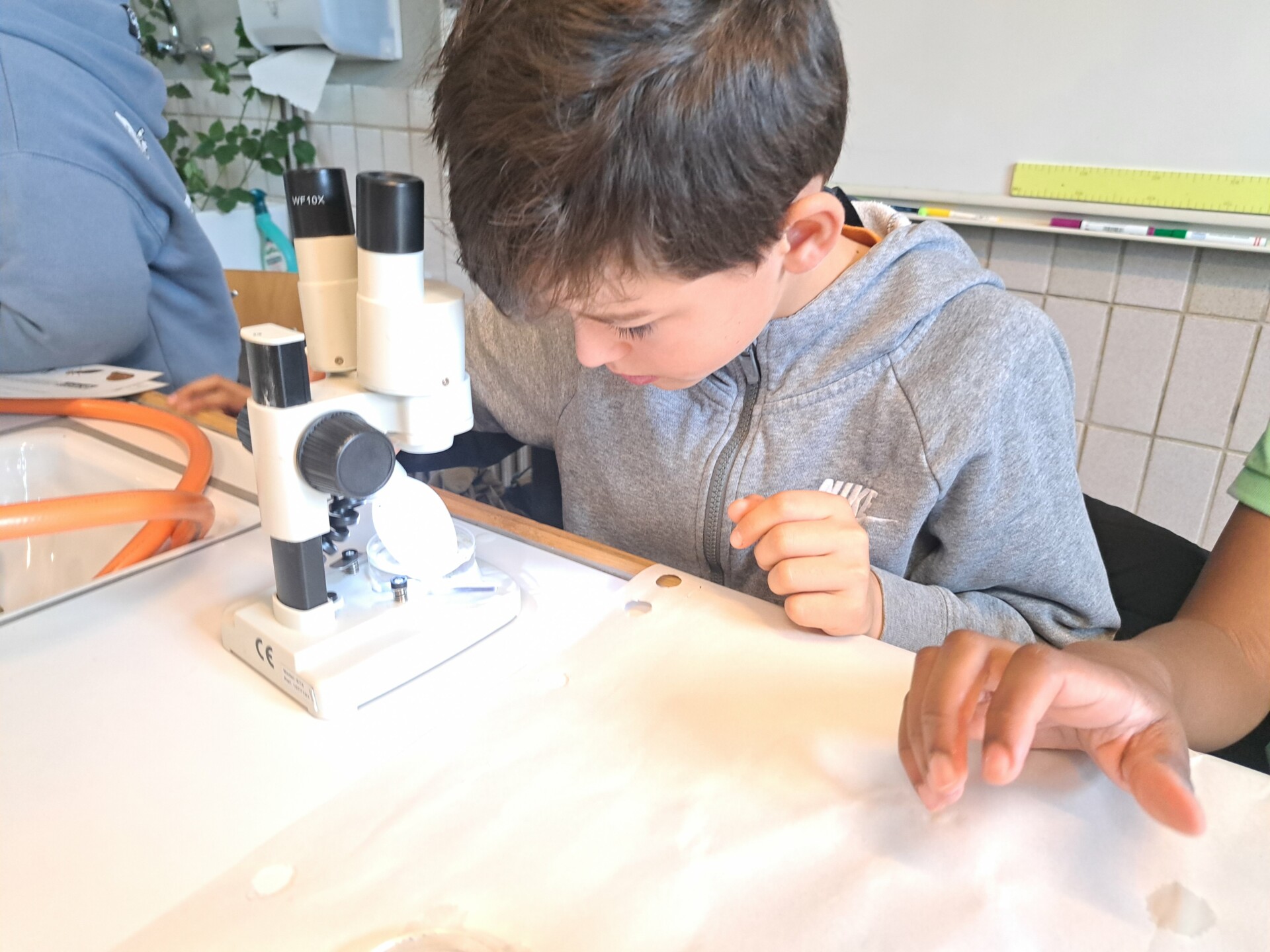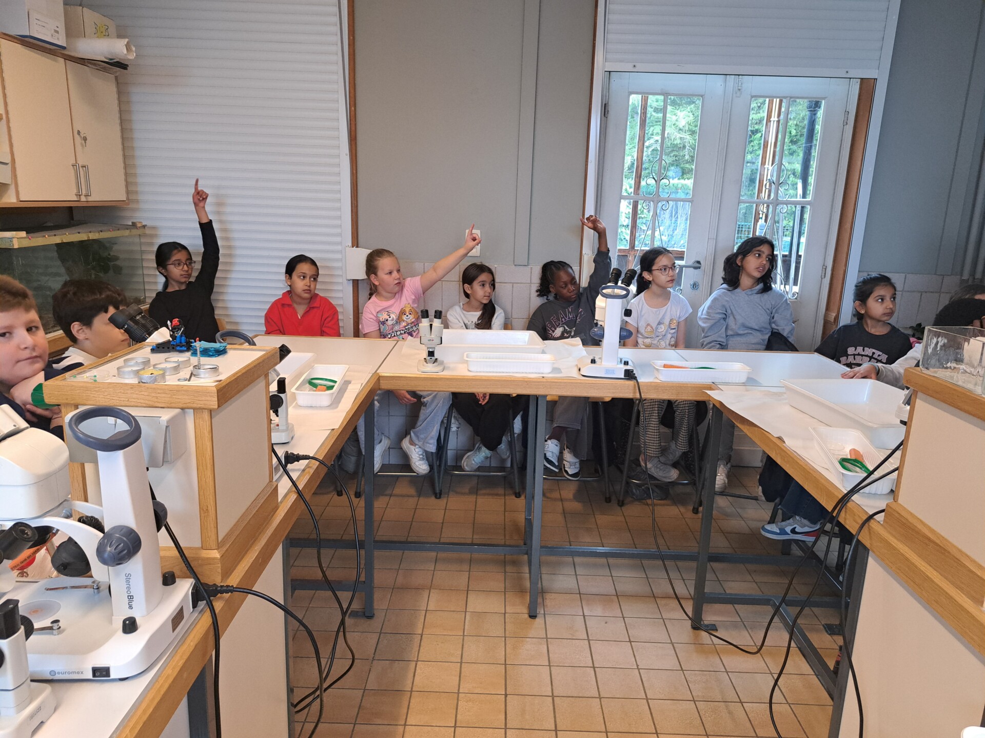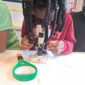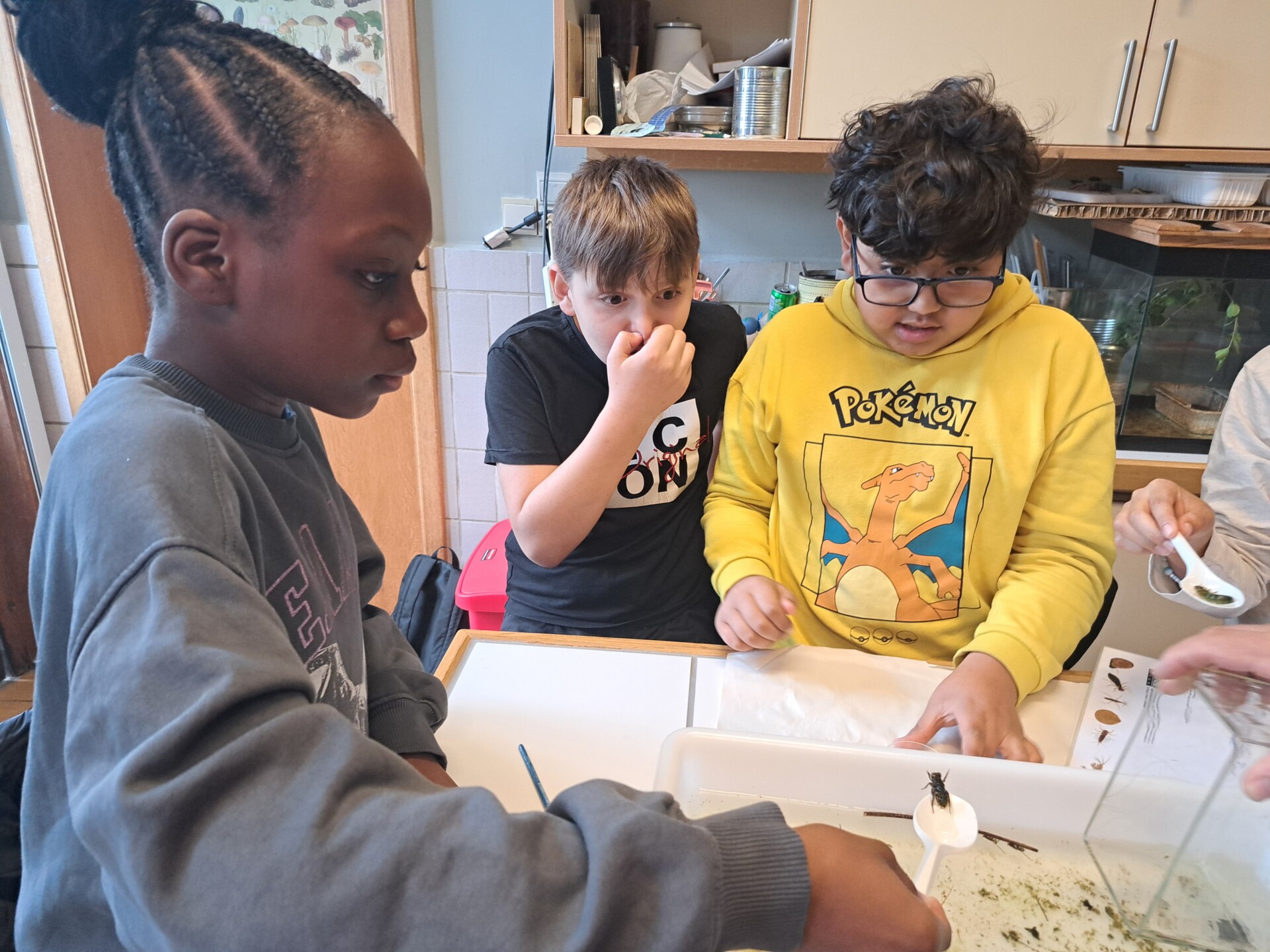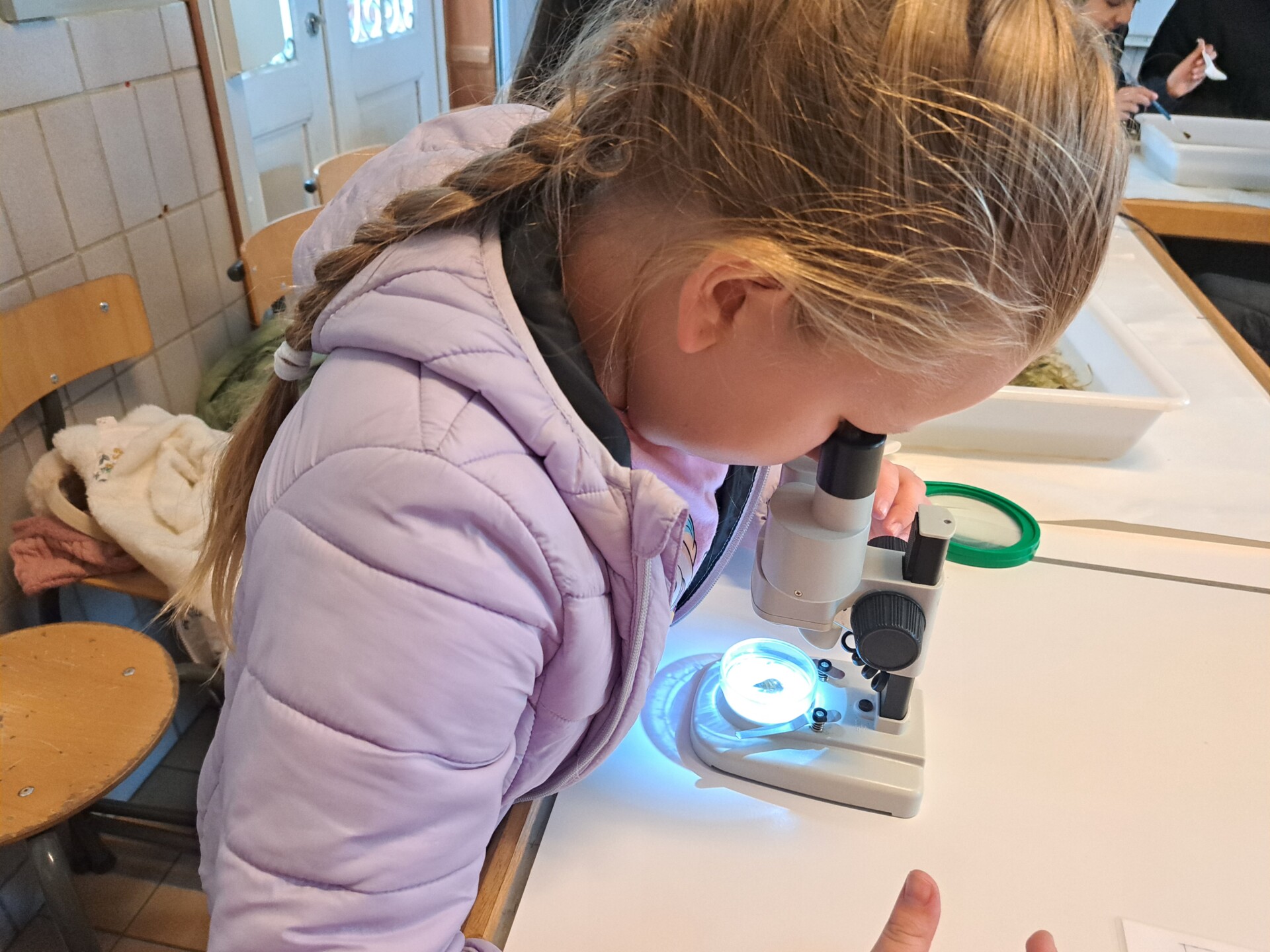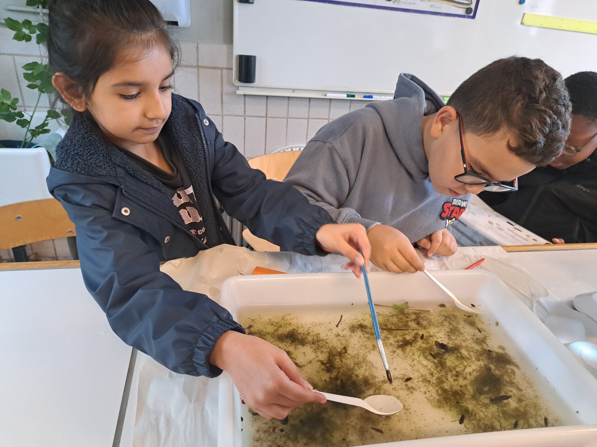 Au programme : pêcher dans la mare, puis observer les petits animaux au binoculaire