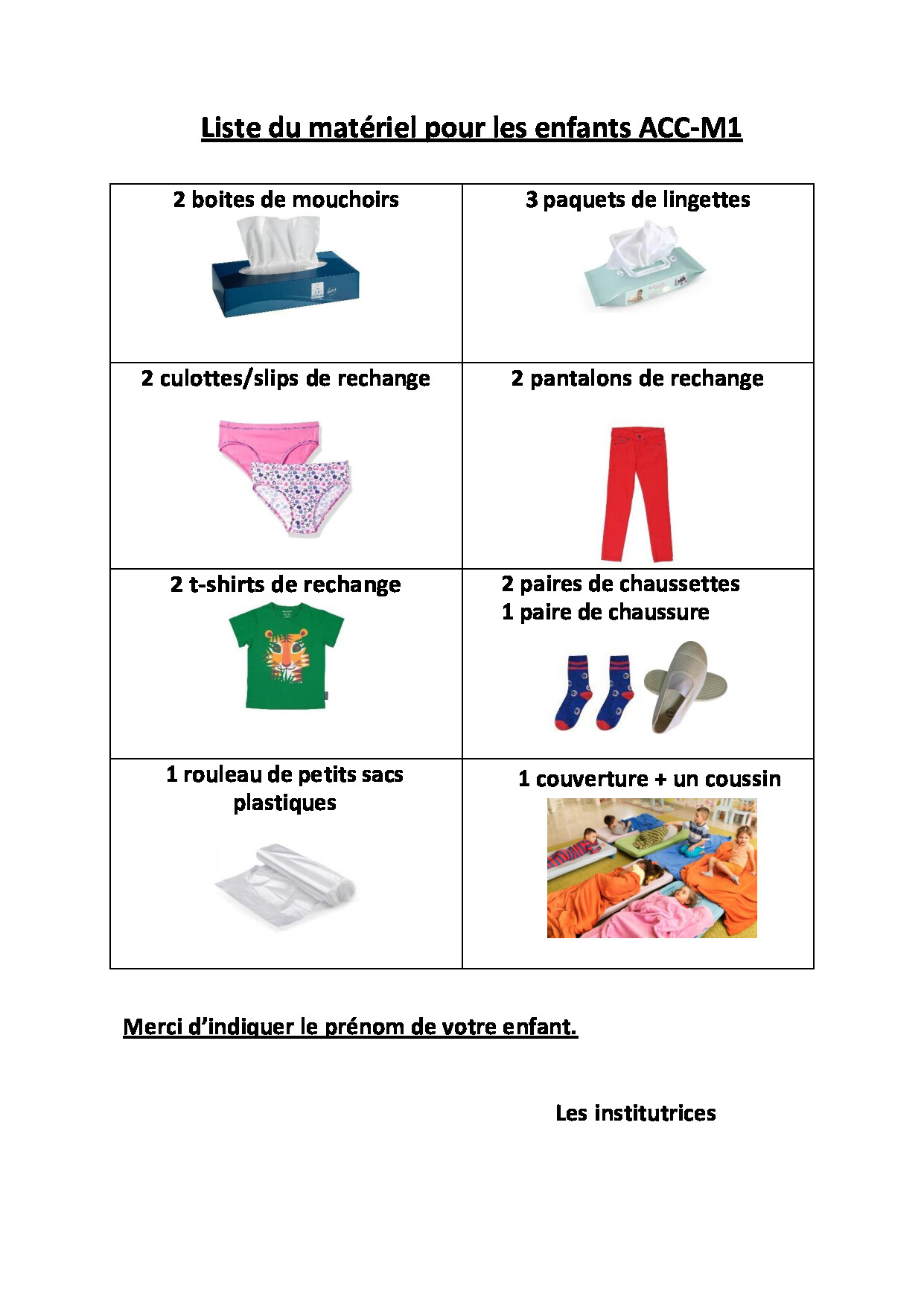 Classes maternelles (Accueil, M1 et M2) :