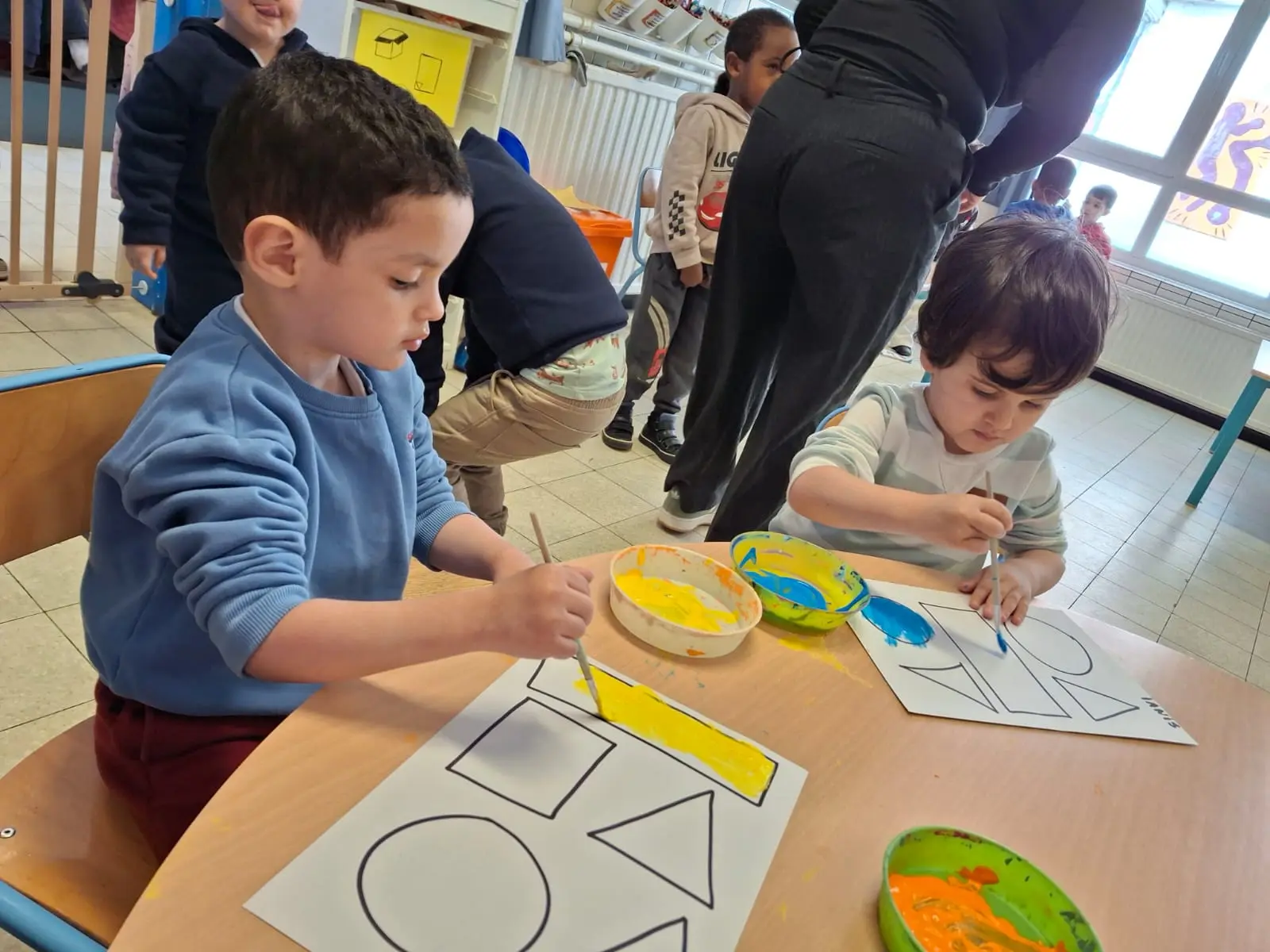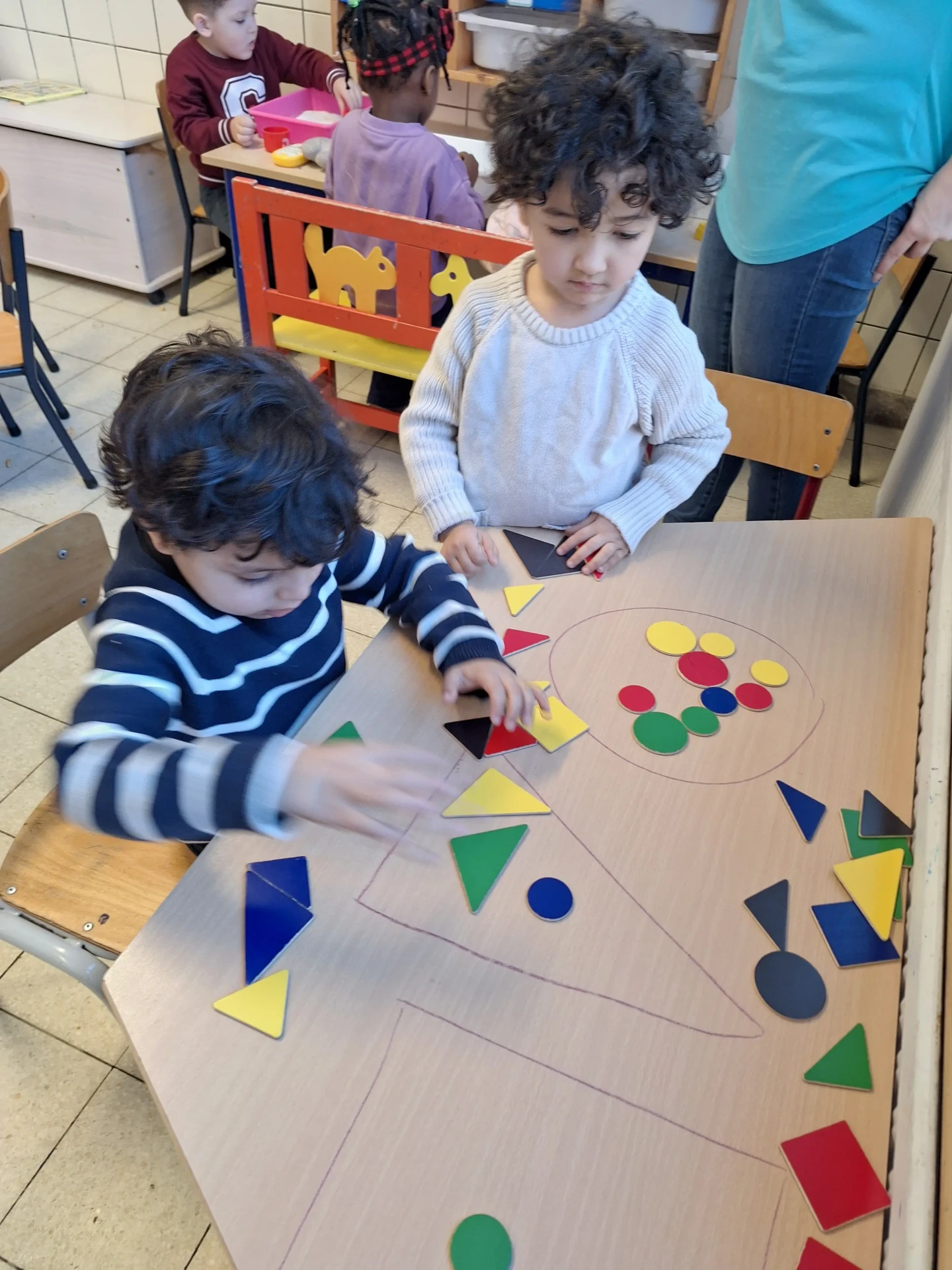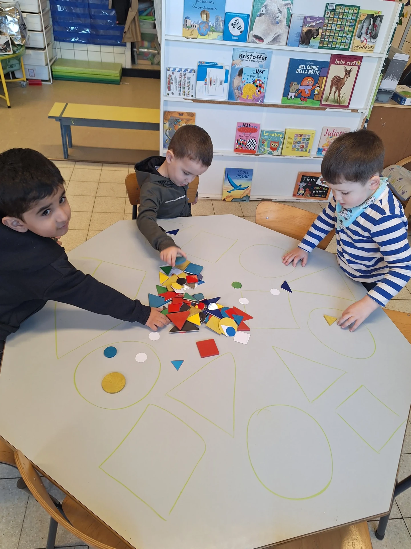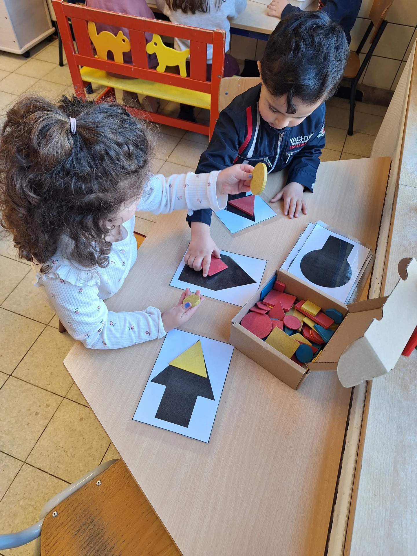 Dès la première maternelle, les enfants apprennent les formes (rond, carré, triangle puis rectangle). Une approche ludique est utilisée afin que les enfants puissent comprendre et retenir les différentes formes.