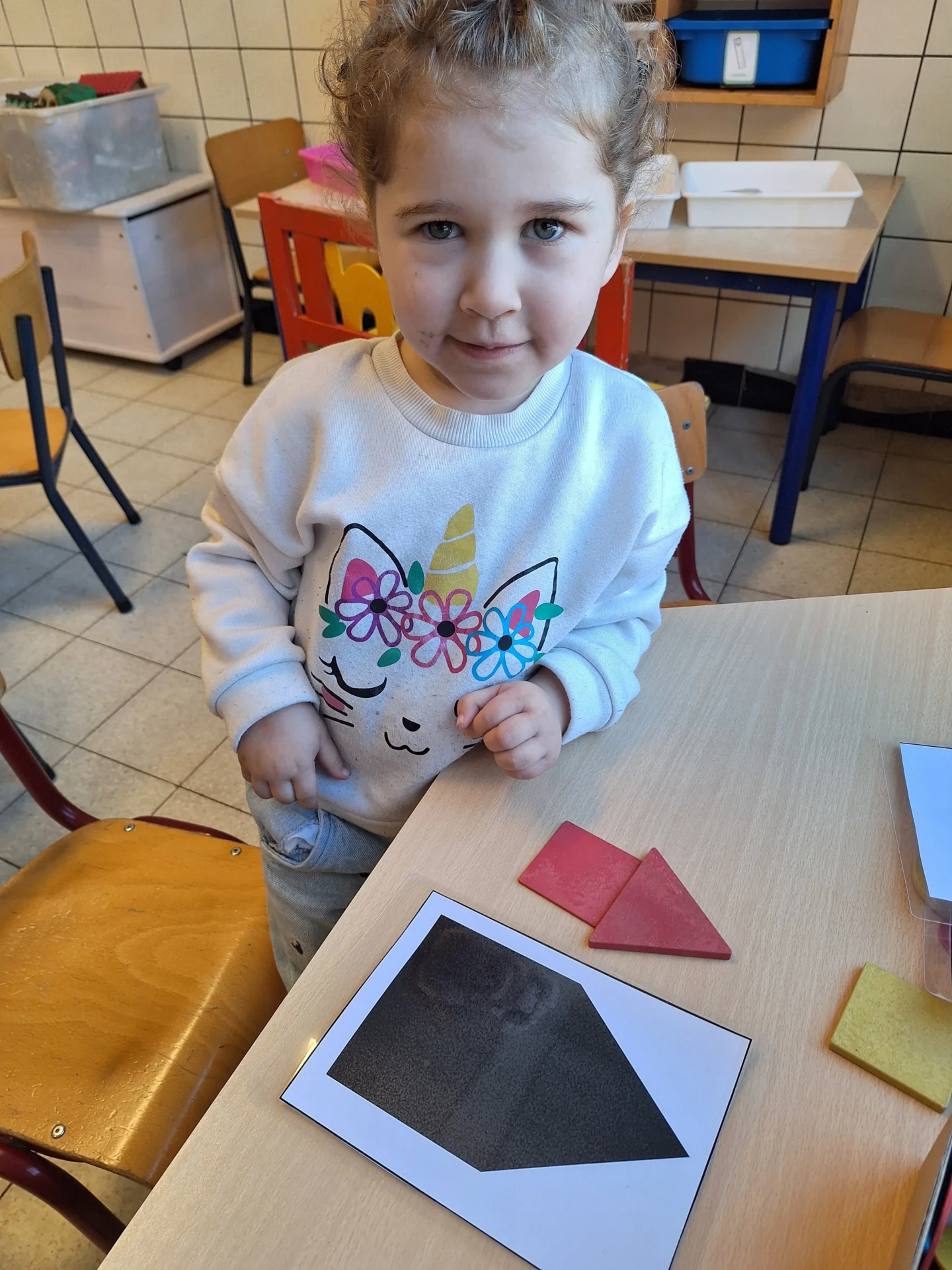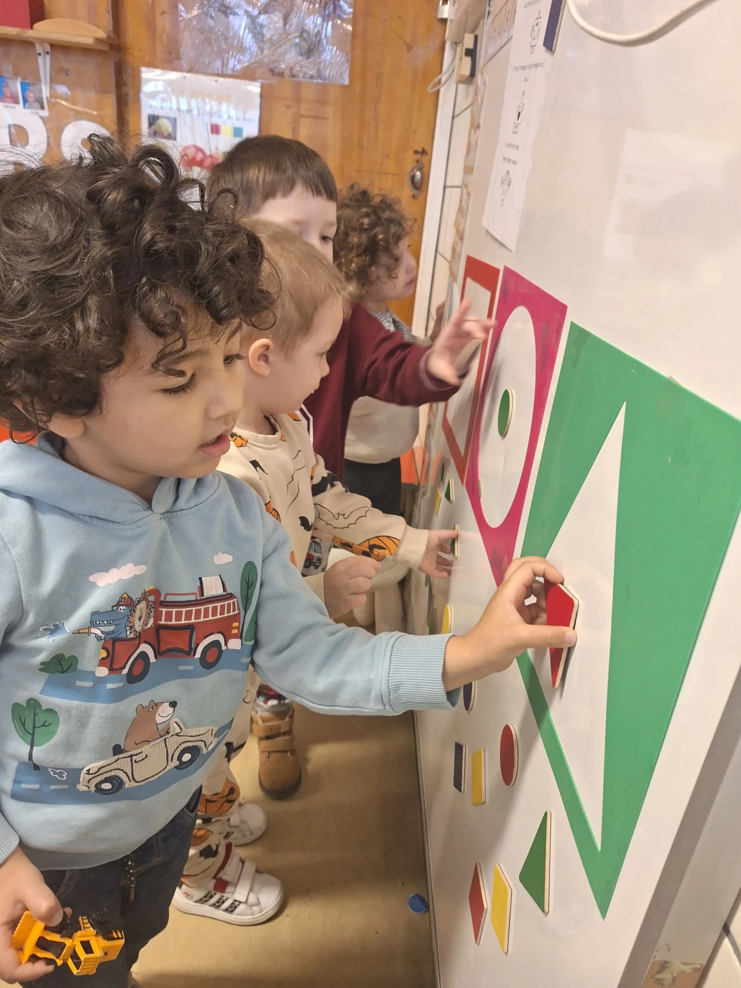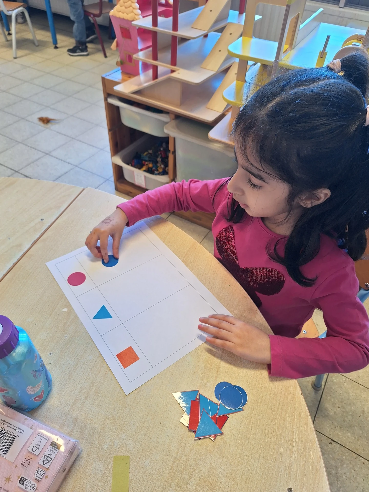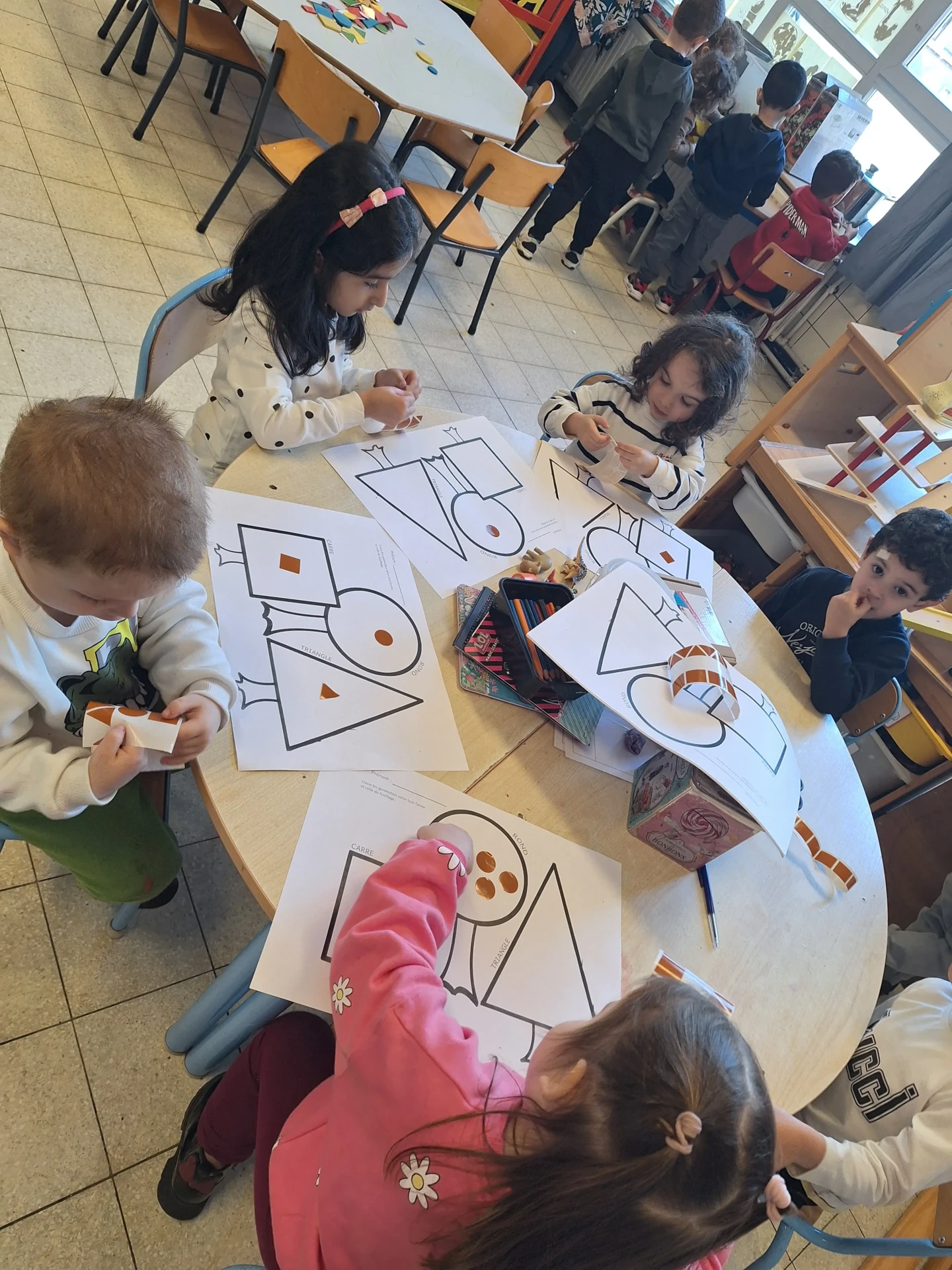 Dès la première maternelle, les enfants apprennent les formes (rond, carré, triangle puis rectangle). Une approche ludique est utilisée afin que les enfants puissent comprendre et retenir les différentes formes.