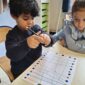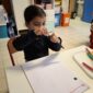 Les enseignantes corrigent les mauvaises prises des feutres dès le plus jeune âge.