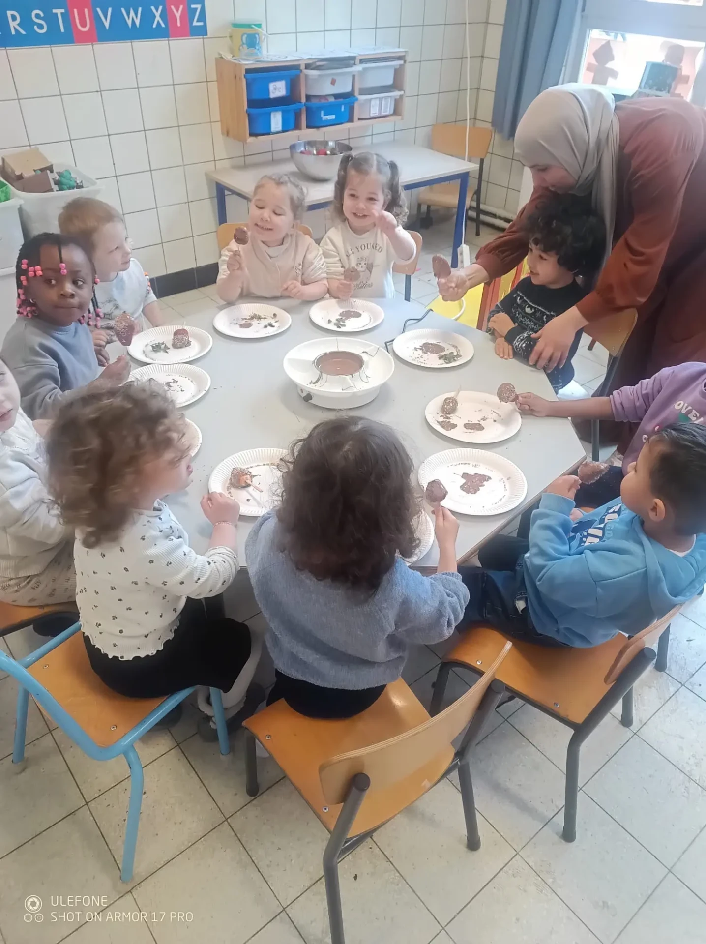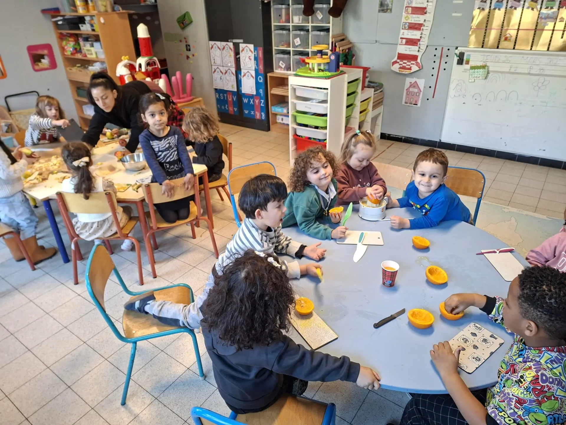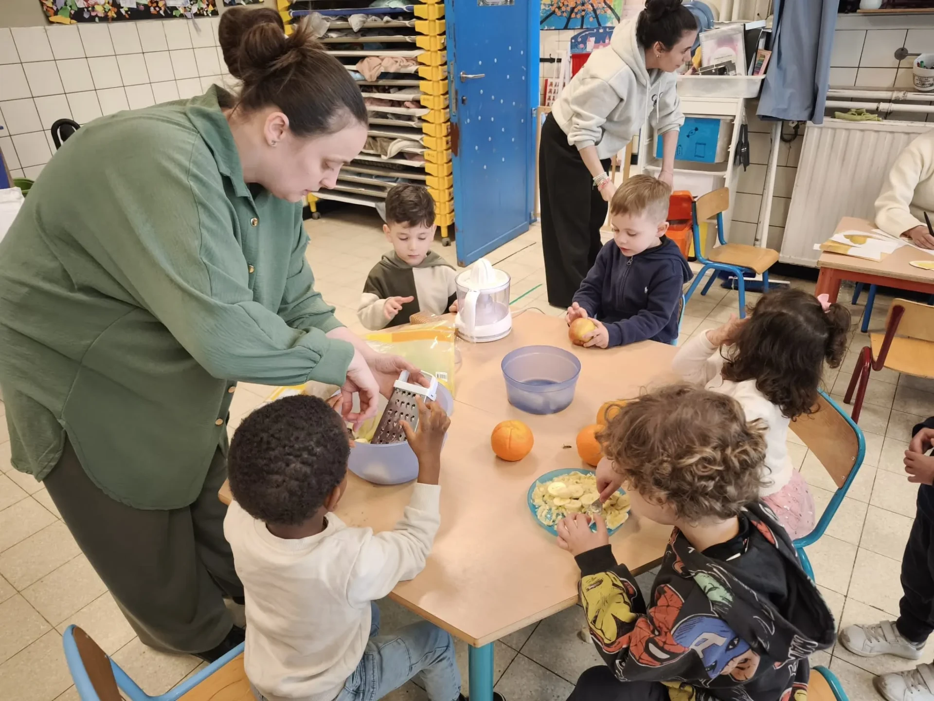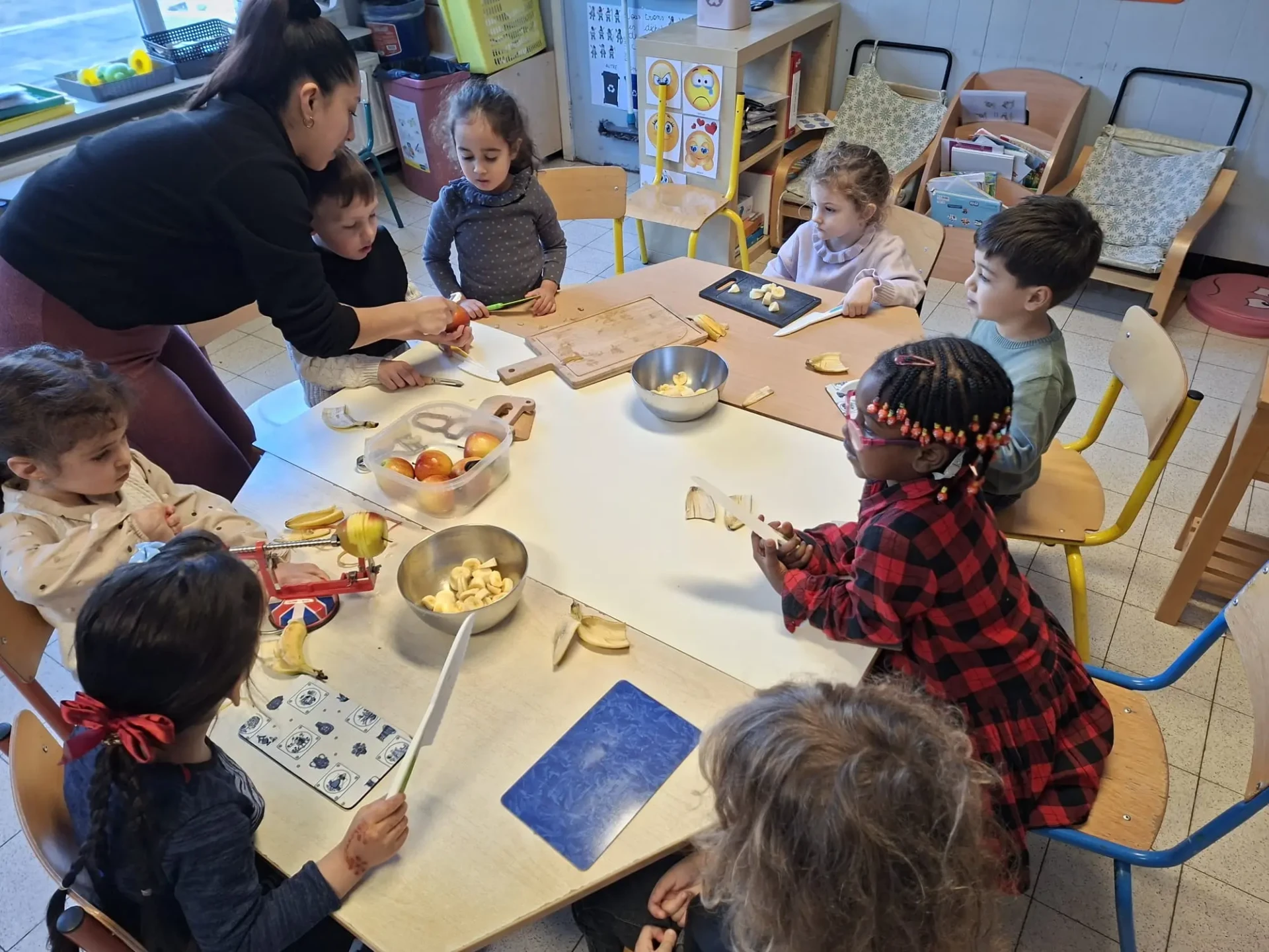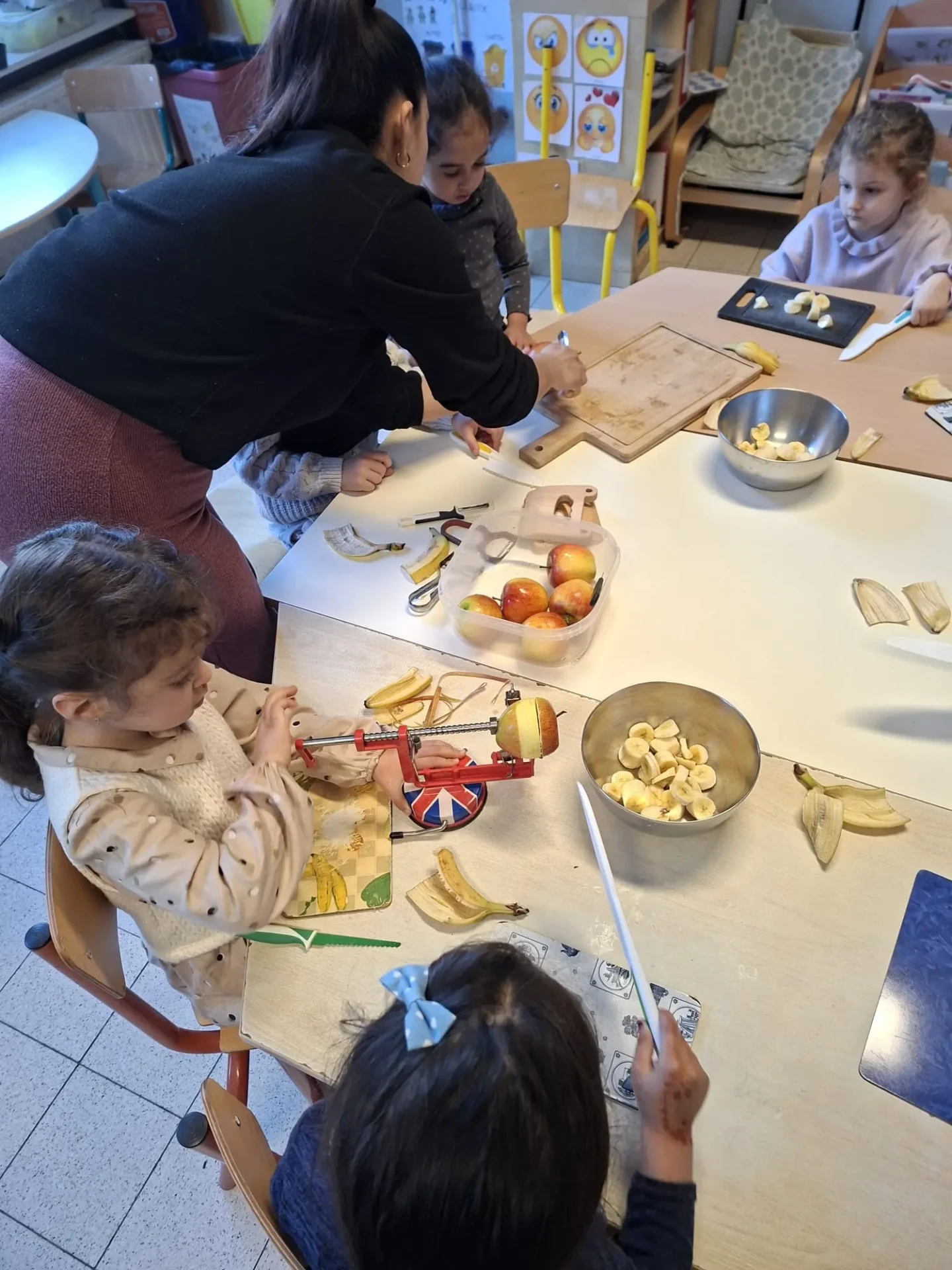 La semaine du 23 mars plusieurs parents de l’association des parents ont fait des activités autour des fruits avec toutes les maternelles de l’école. 10 classes ont participé au projet.