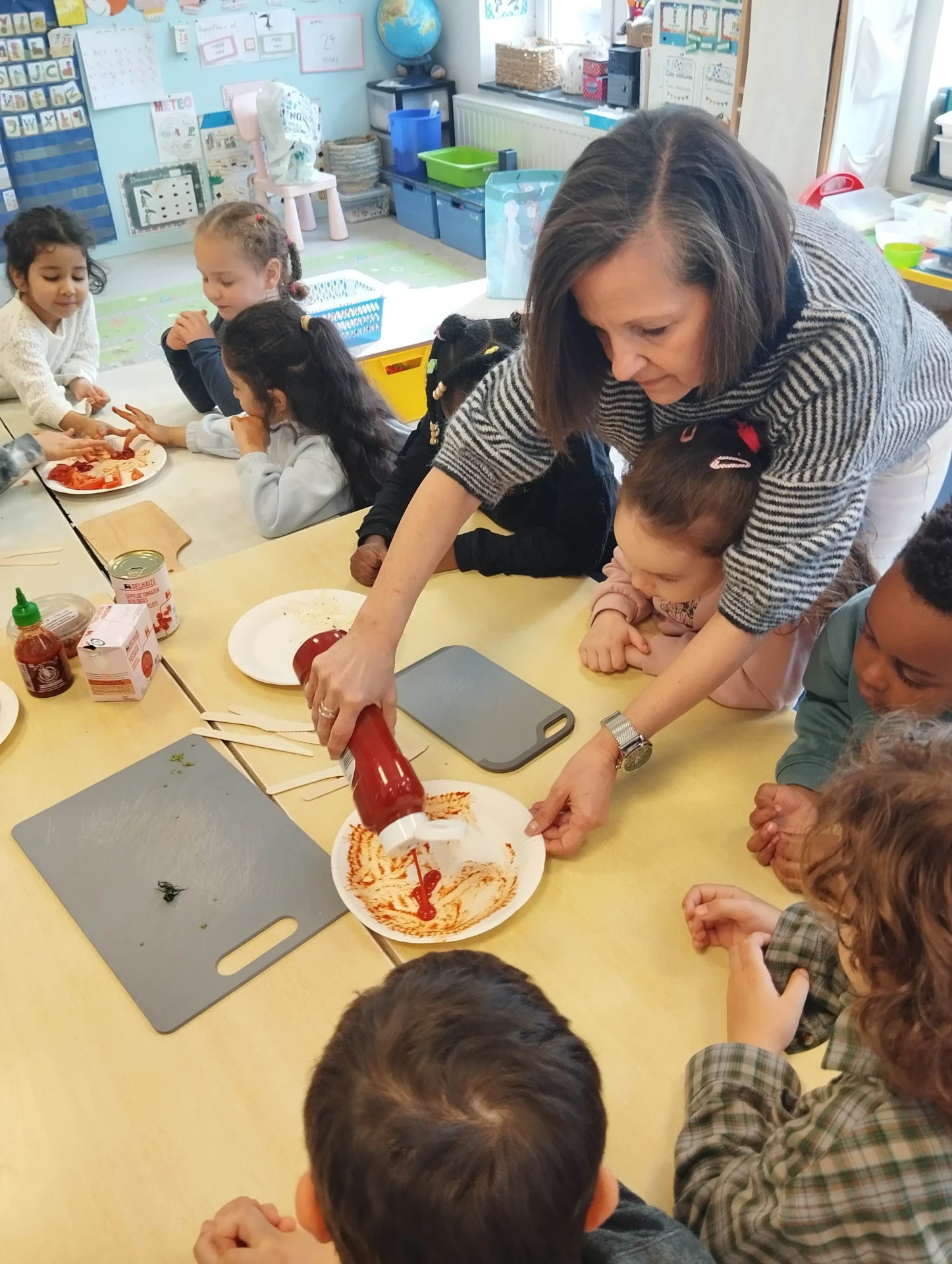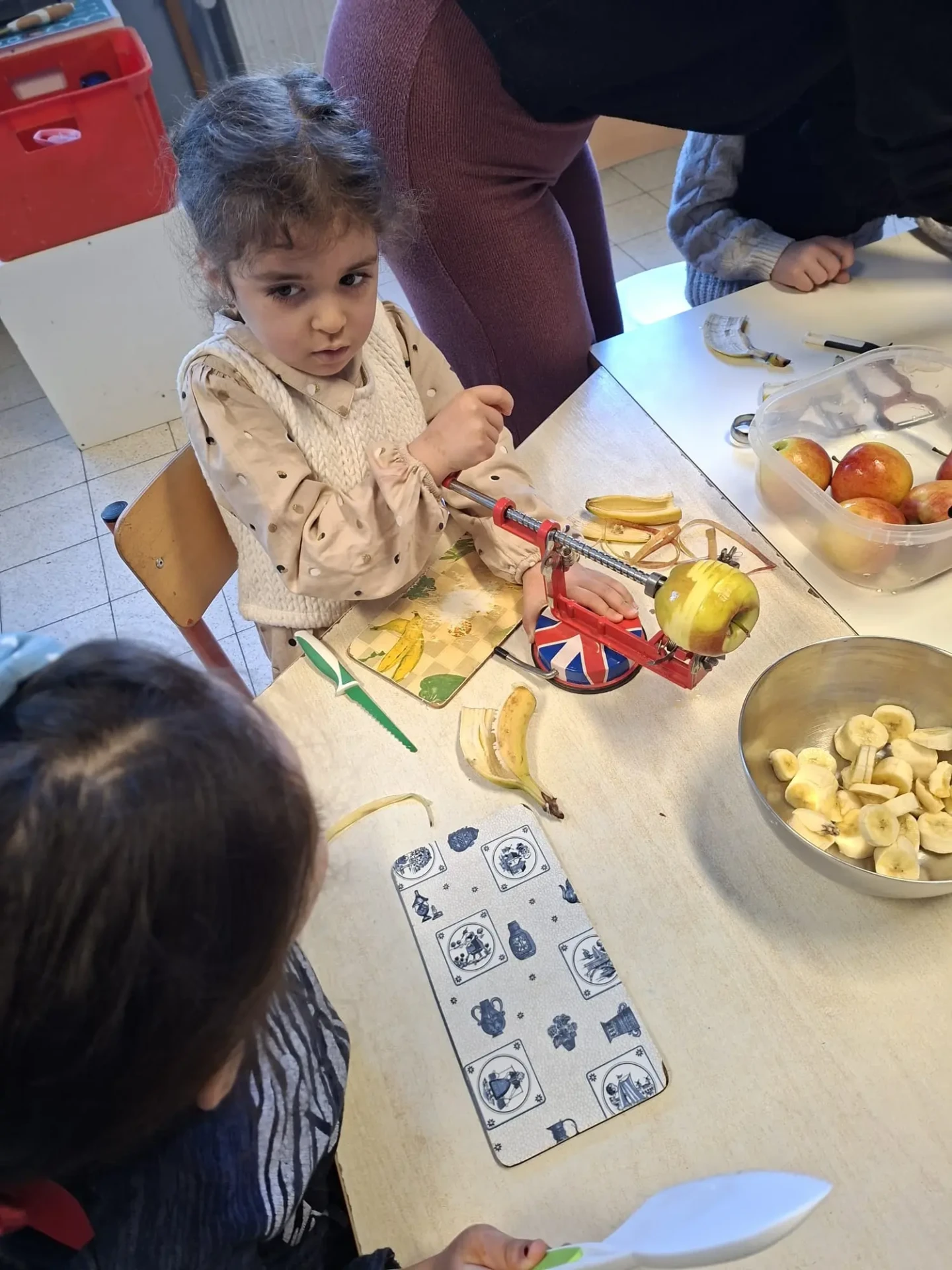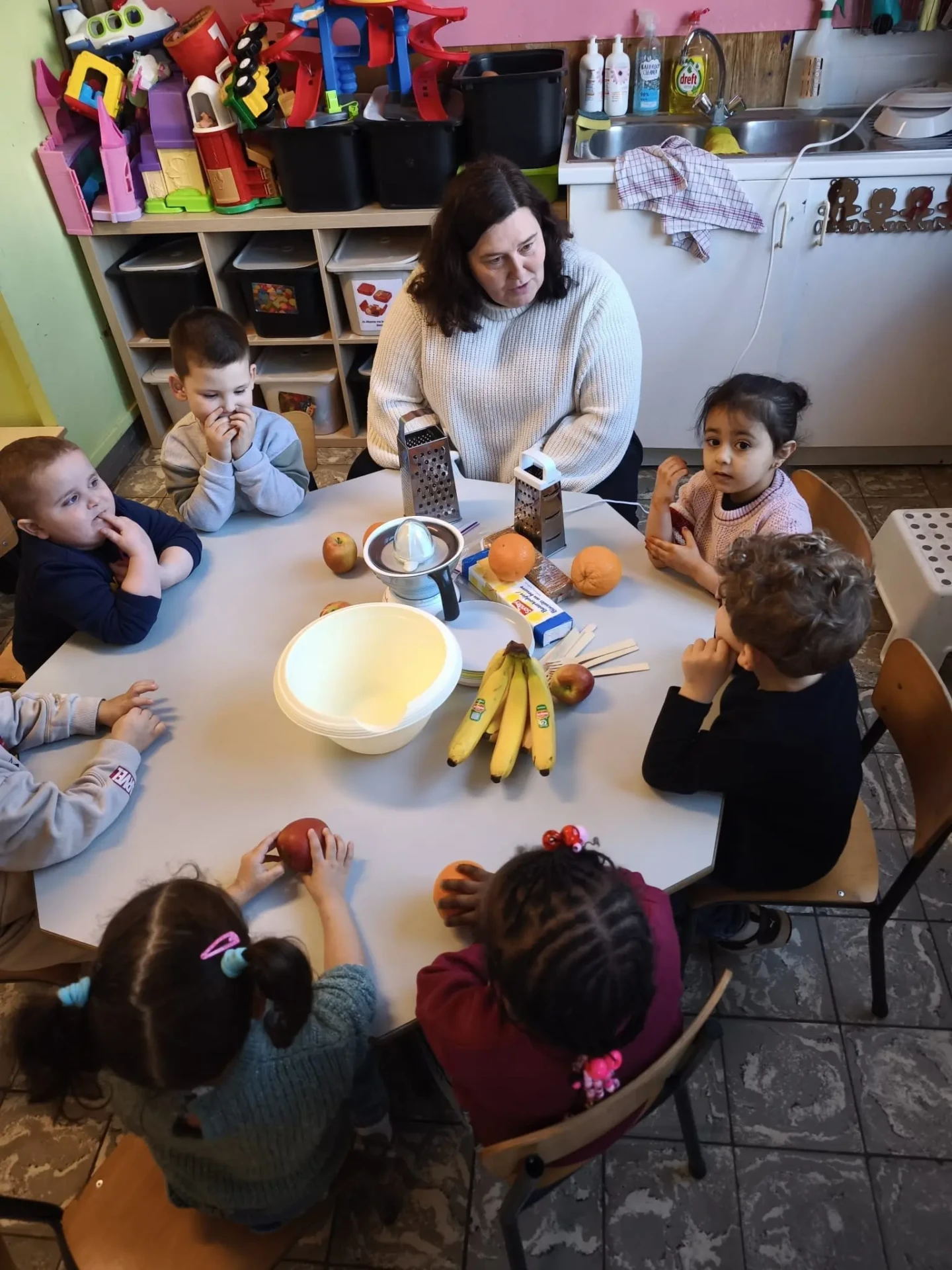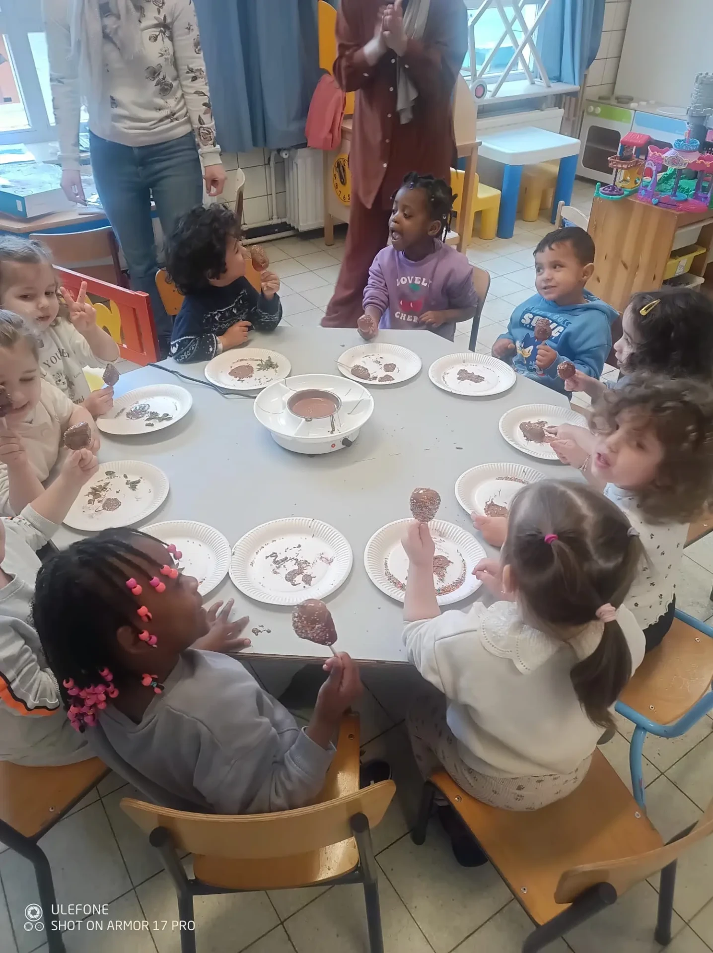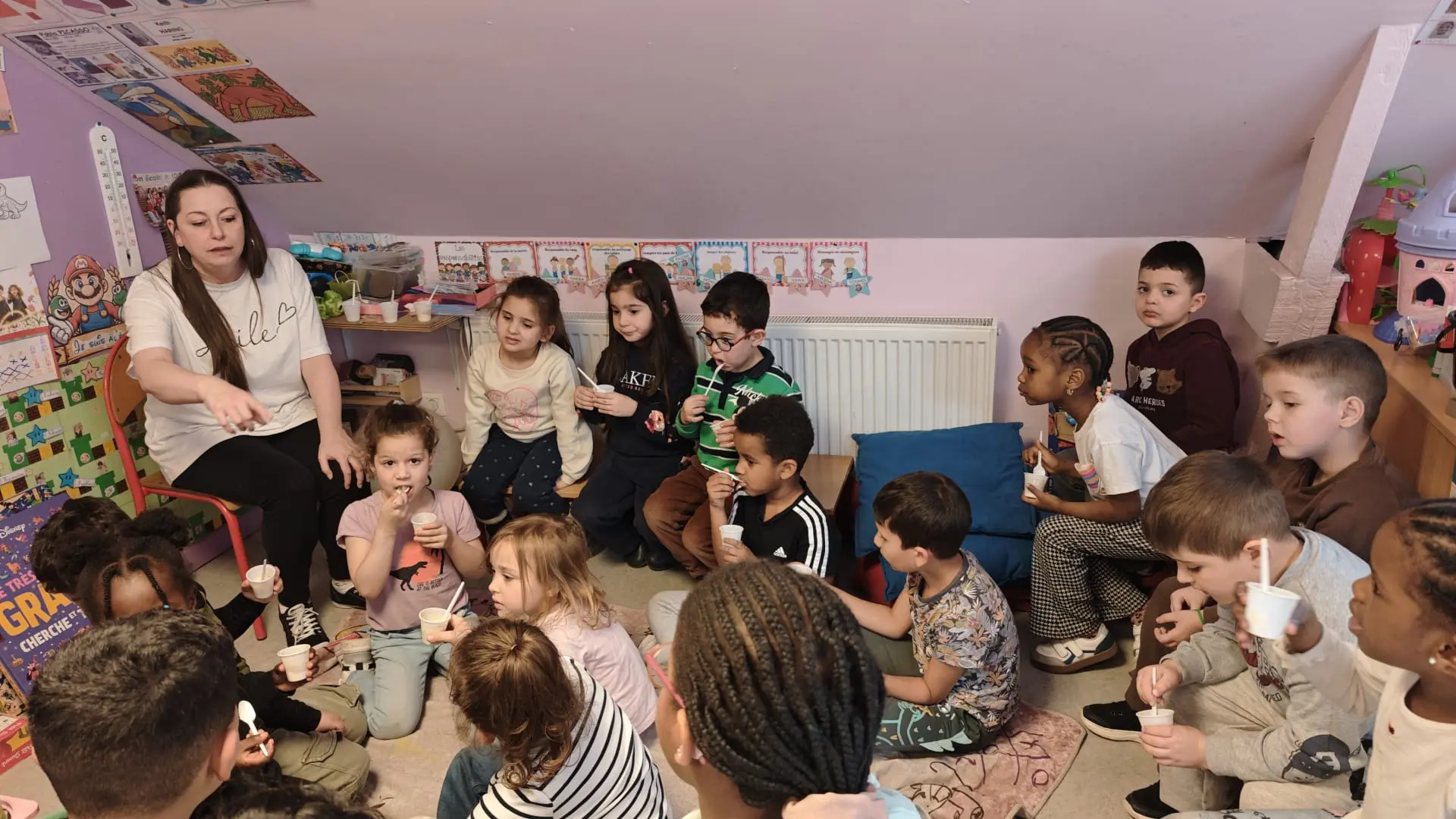 La semaine du 23 mars plusieurs parents de l’association des parents ont fait des activités autour des fruits avec toutes les maternelles de l’école. 10 classes ont participé au projet.