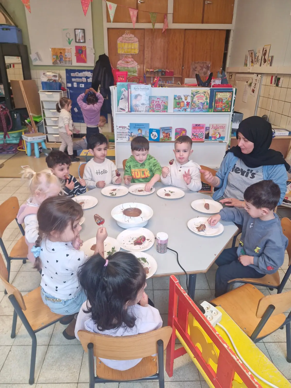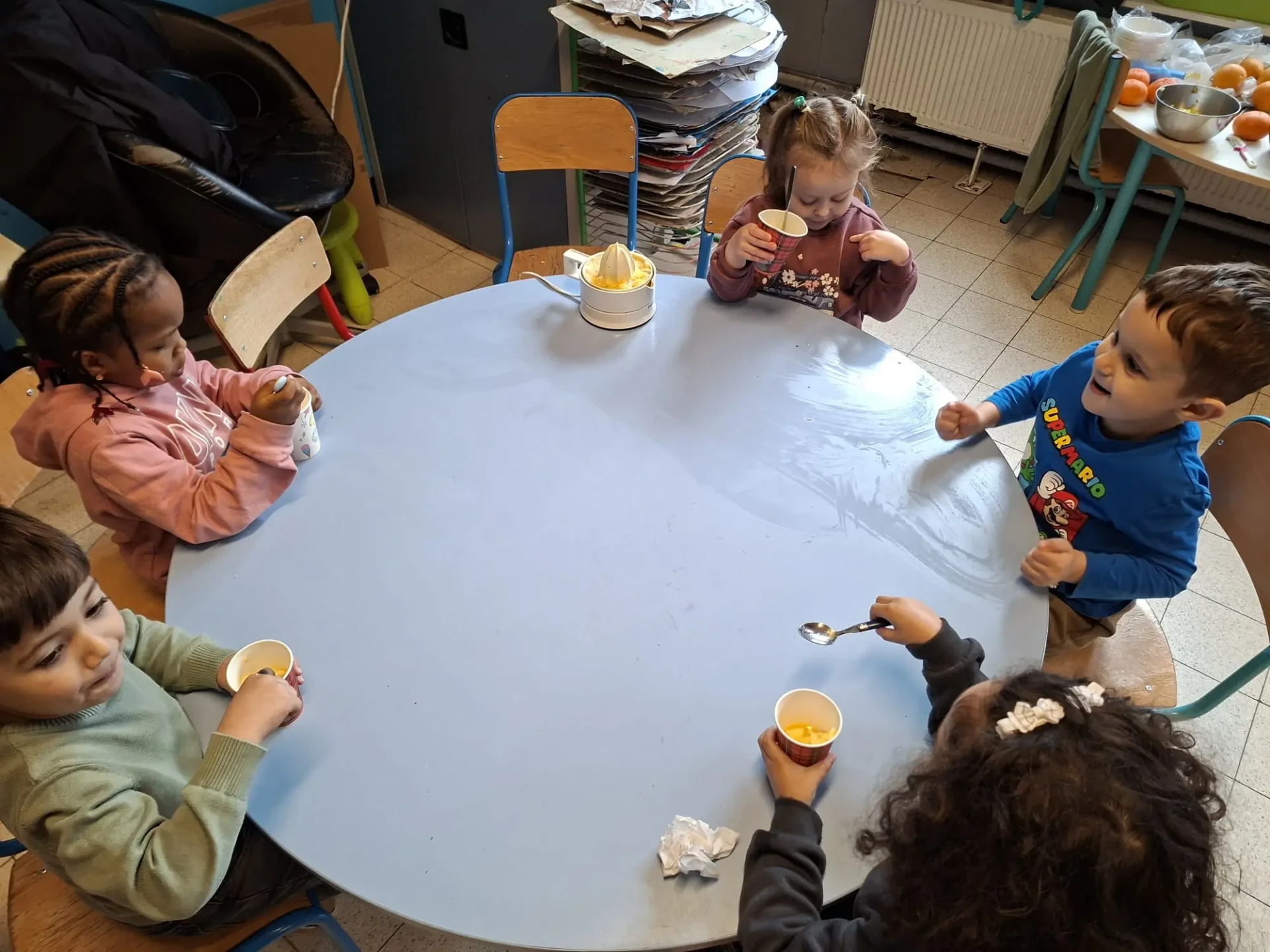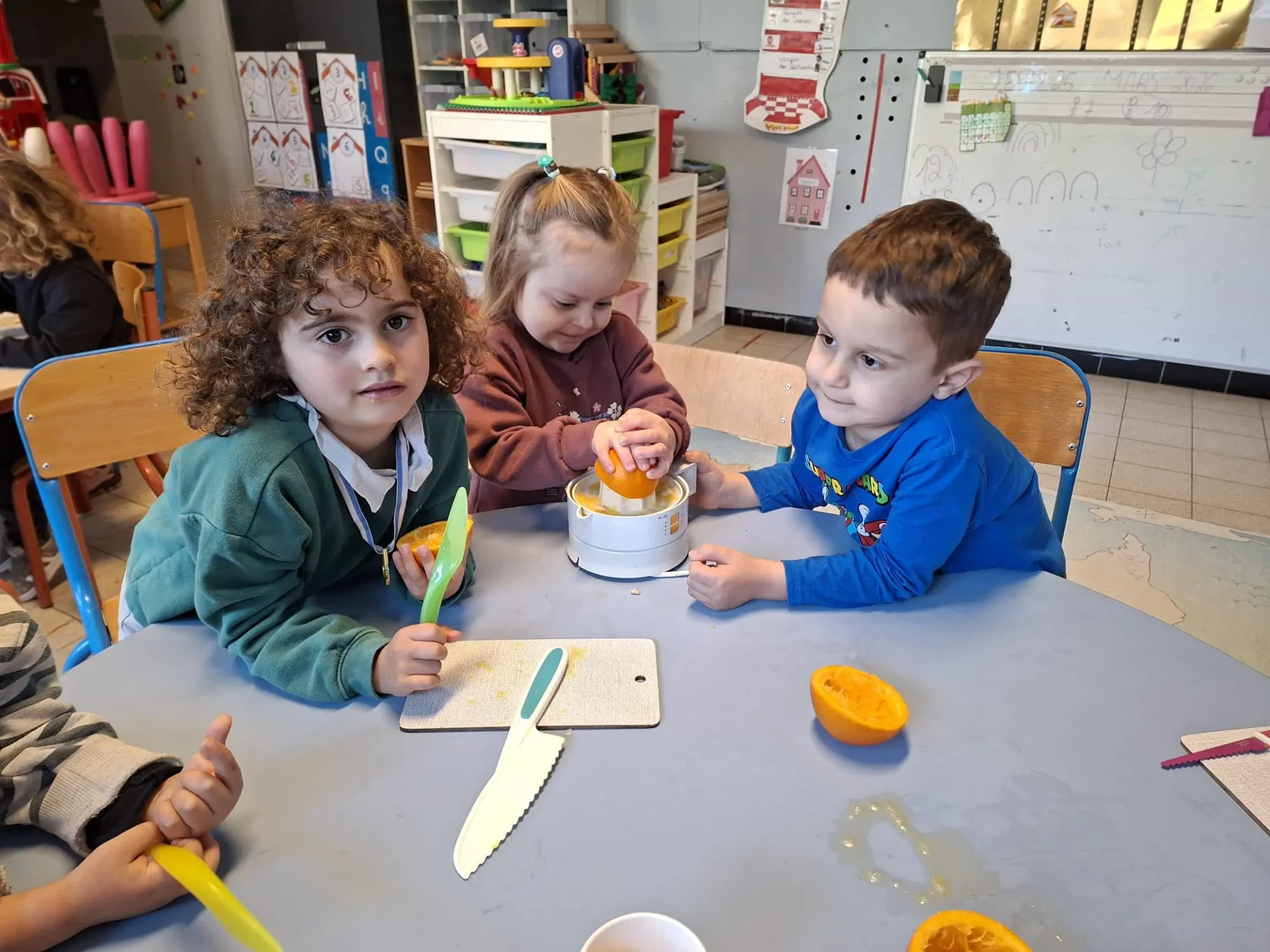 La semaine du 23 mars plusieurs parents de l’association des parents ont fait des activités autour des fruits avec toutes les maternelles de l’école. 10 classes ont participé au projet.