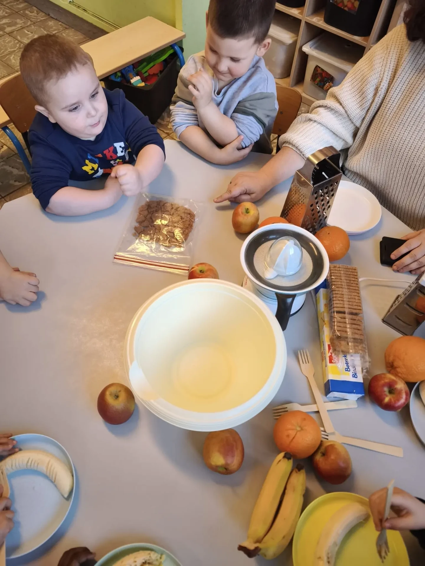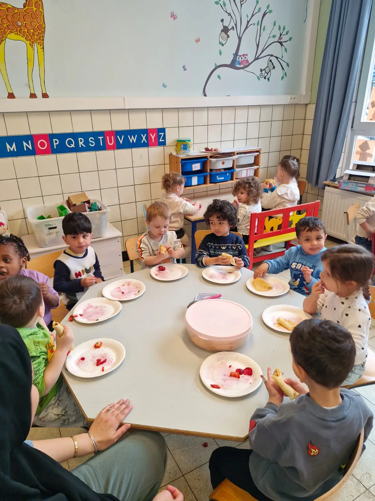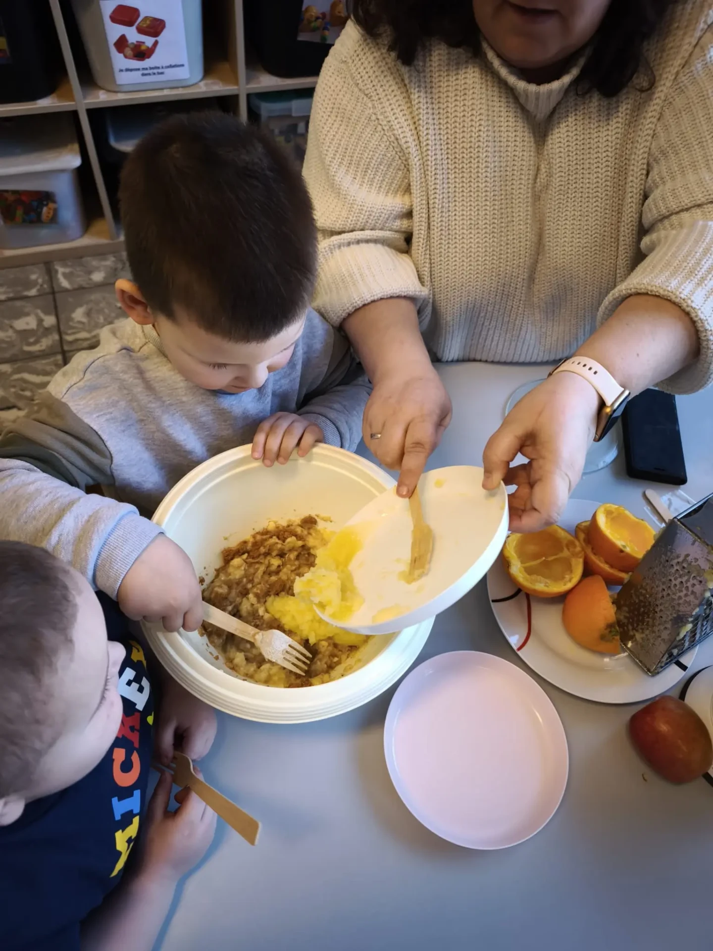 La semaine du 23 mars plusieurs parents de l’association des parents ont fait des activités autour des fruits avec toutes les maternelles de l’école. 10 classes ont participé au projet.
