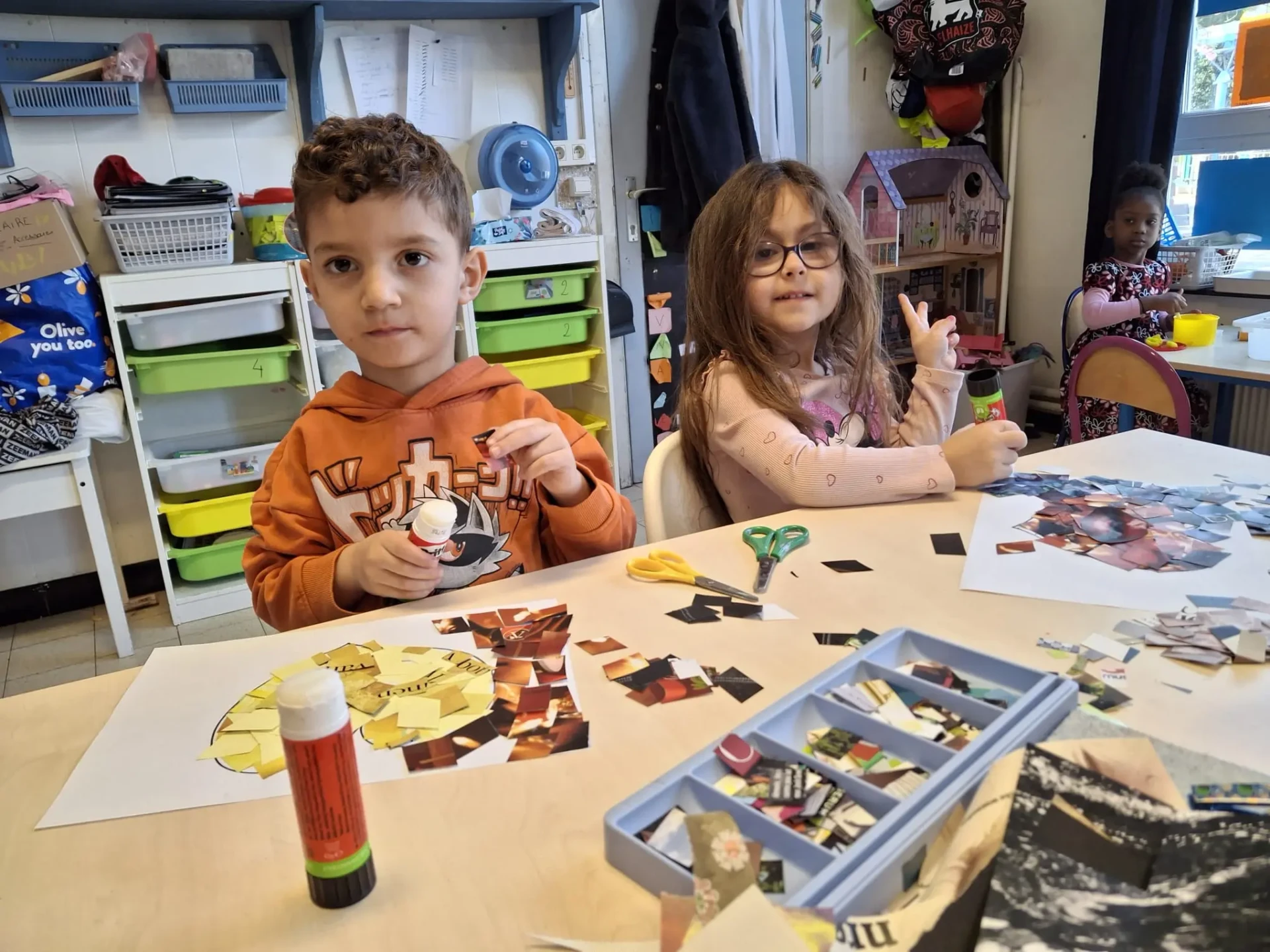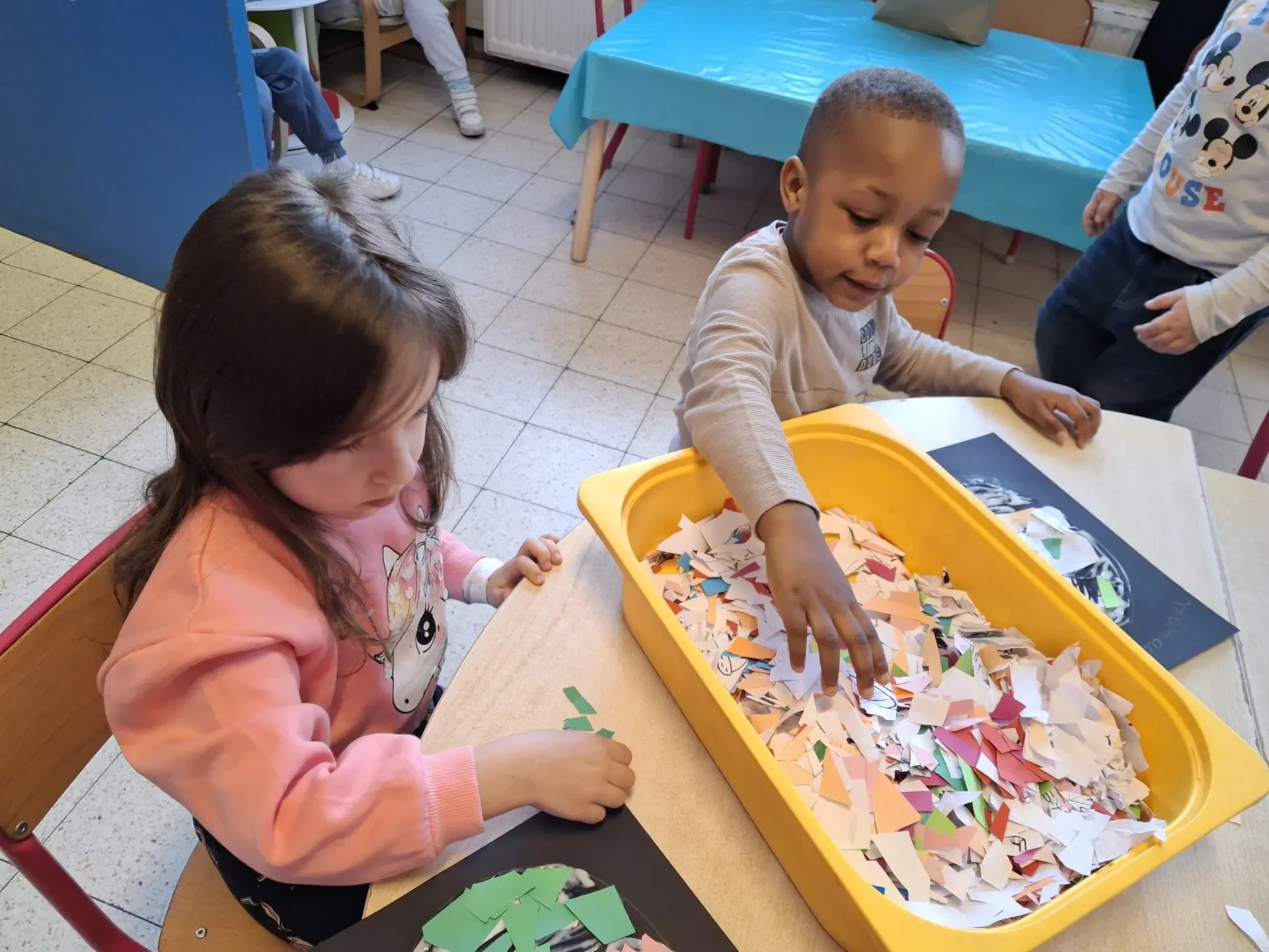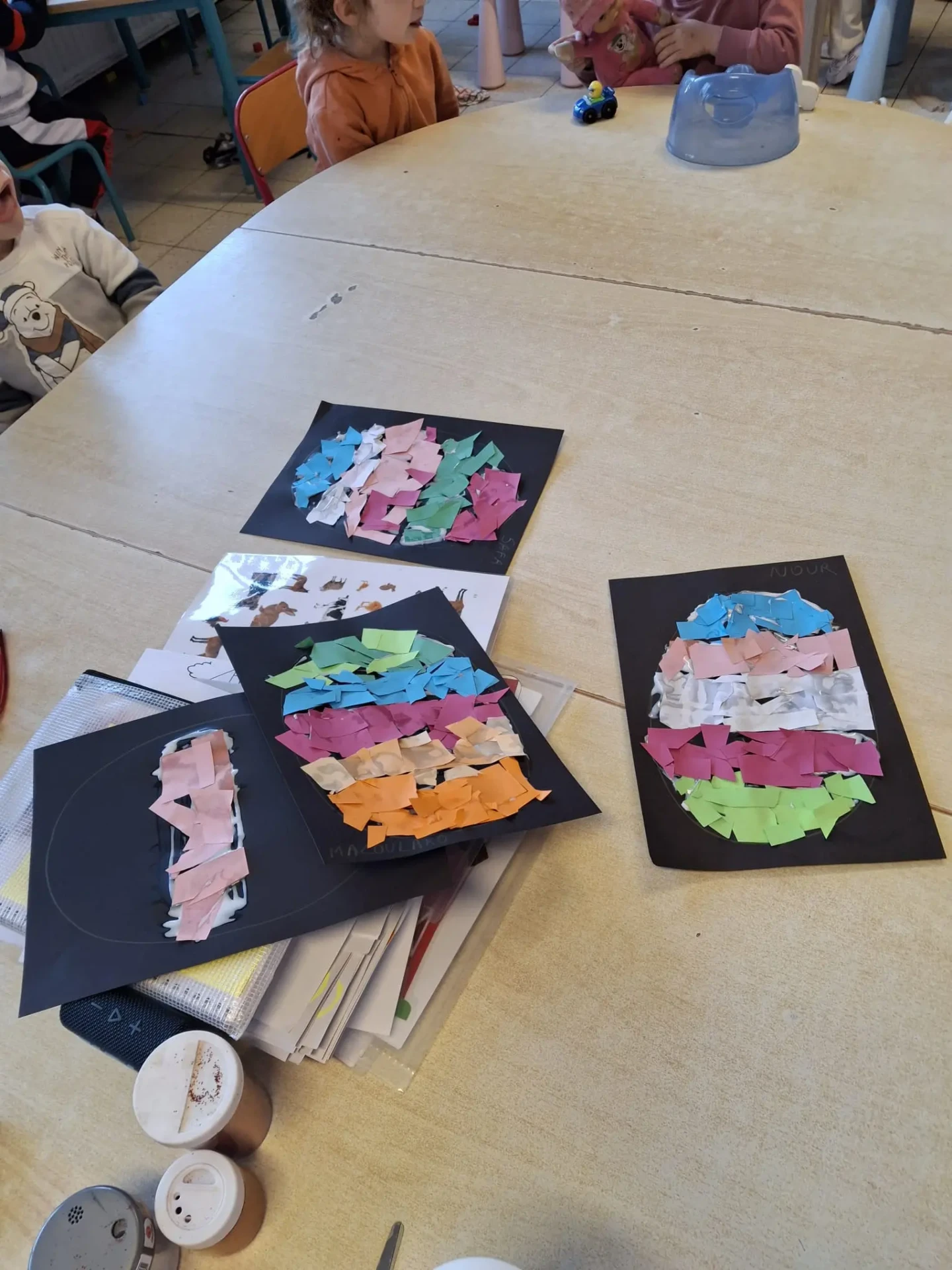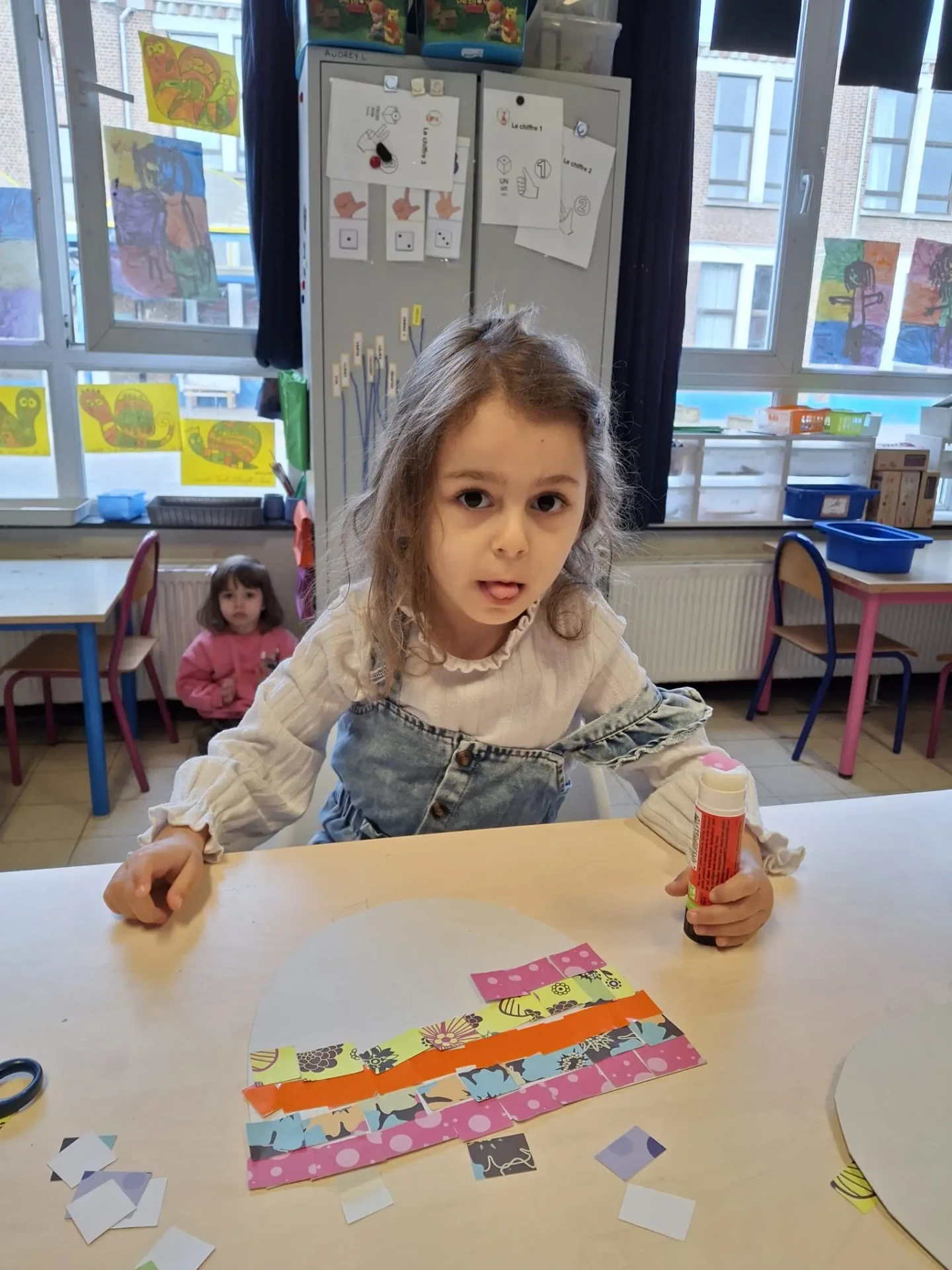 Madame Véronique a lancé un nouveau projet, la mosaïque. Les 2èmes maternelles ont créé de belles œuvres ! Ensuite, les 1ères maternelle ont fait une poule en mosaïque.