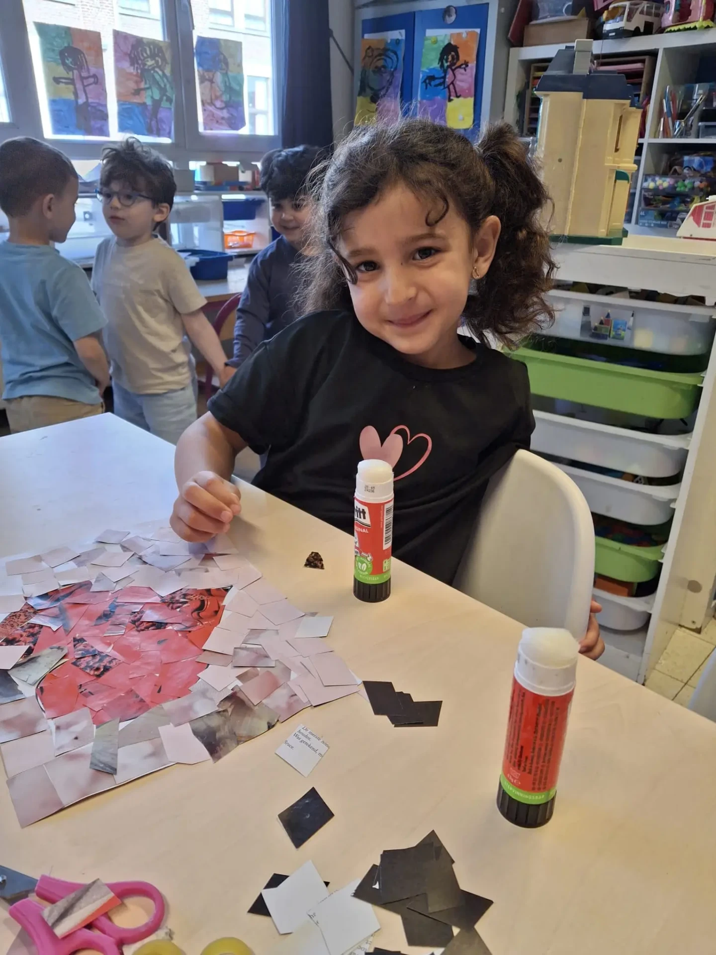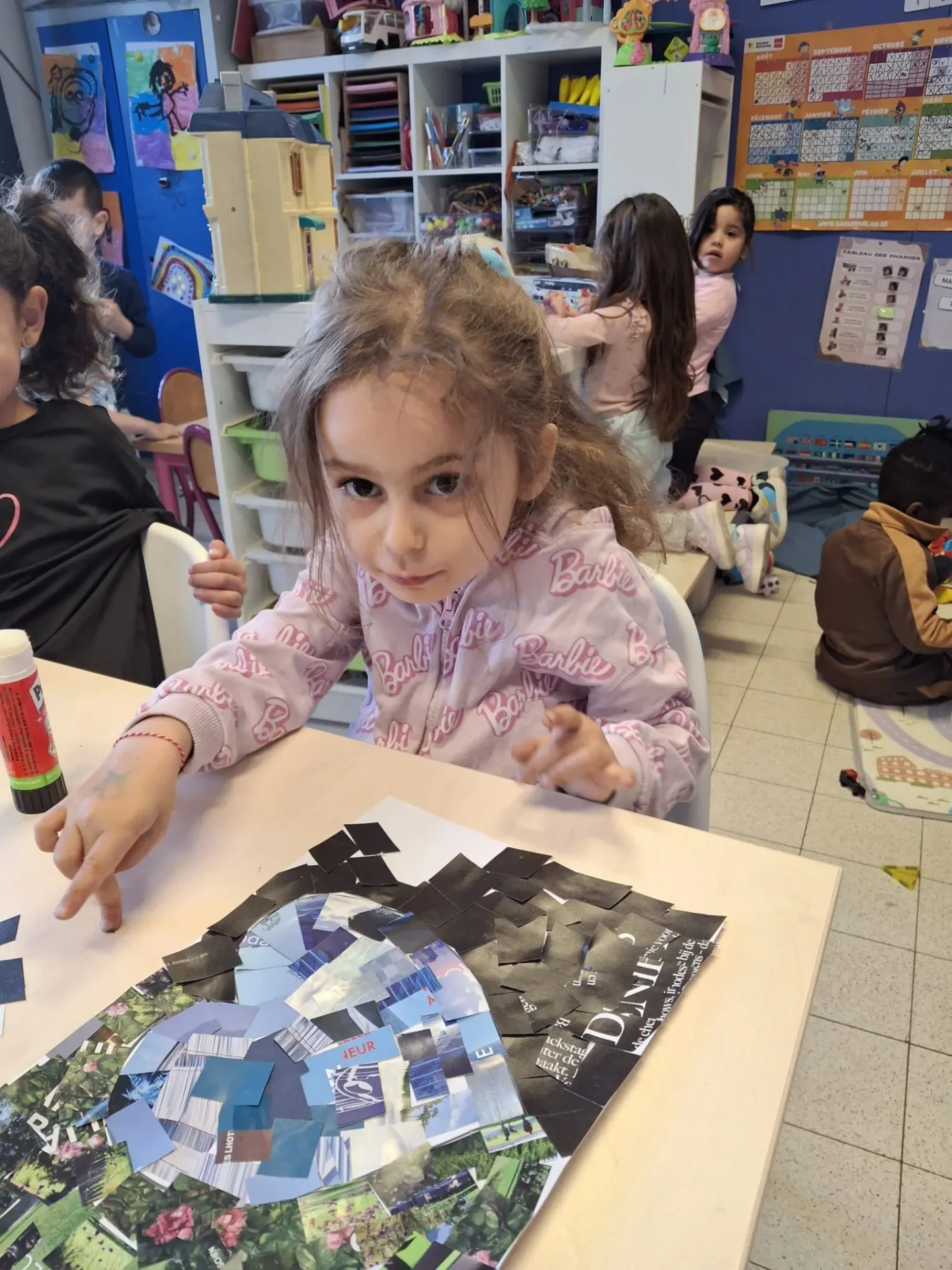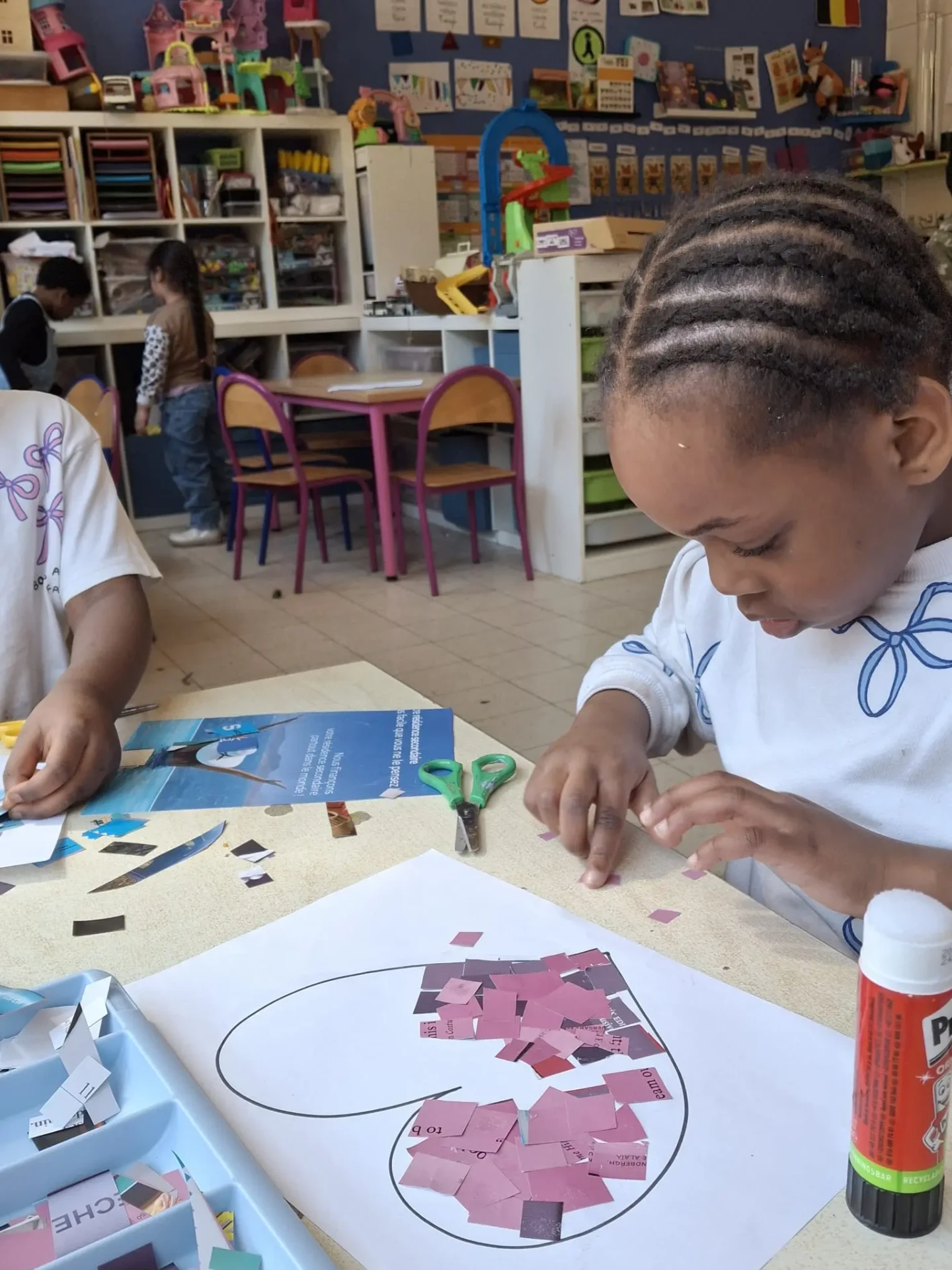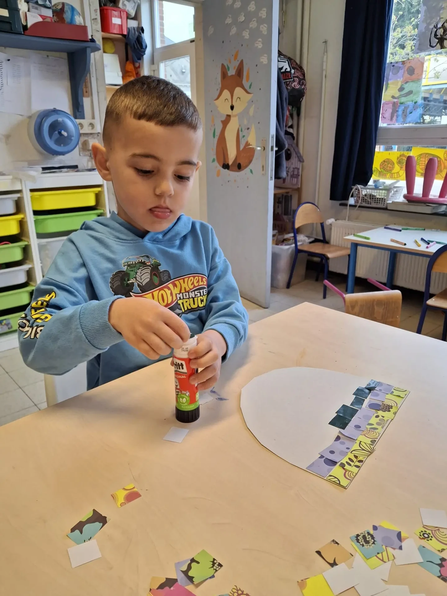 Madame Véronique a lancé un nouveau projet, la mosaïque. Les 2èmes maternelles ont créé de belles œuvres ! Ensuite, les 1ères maternelle ont fait une poule en mosaïque.