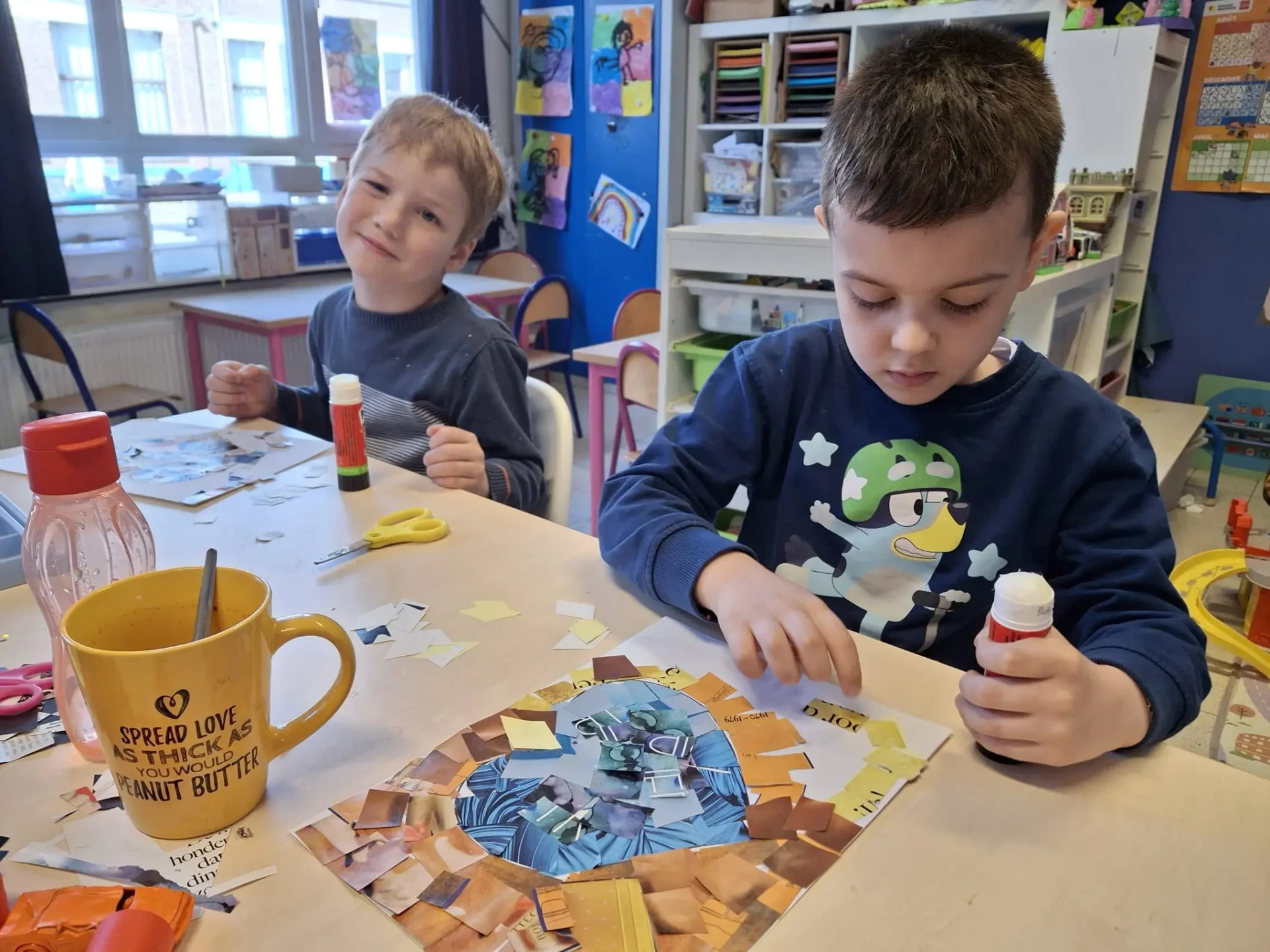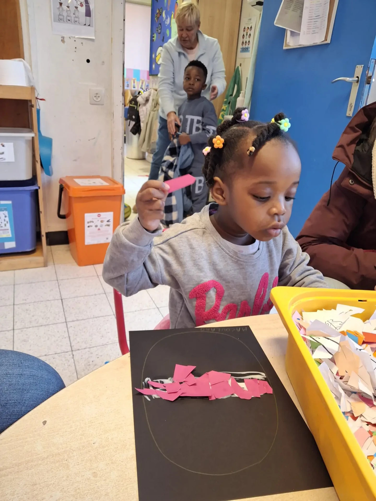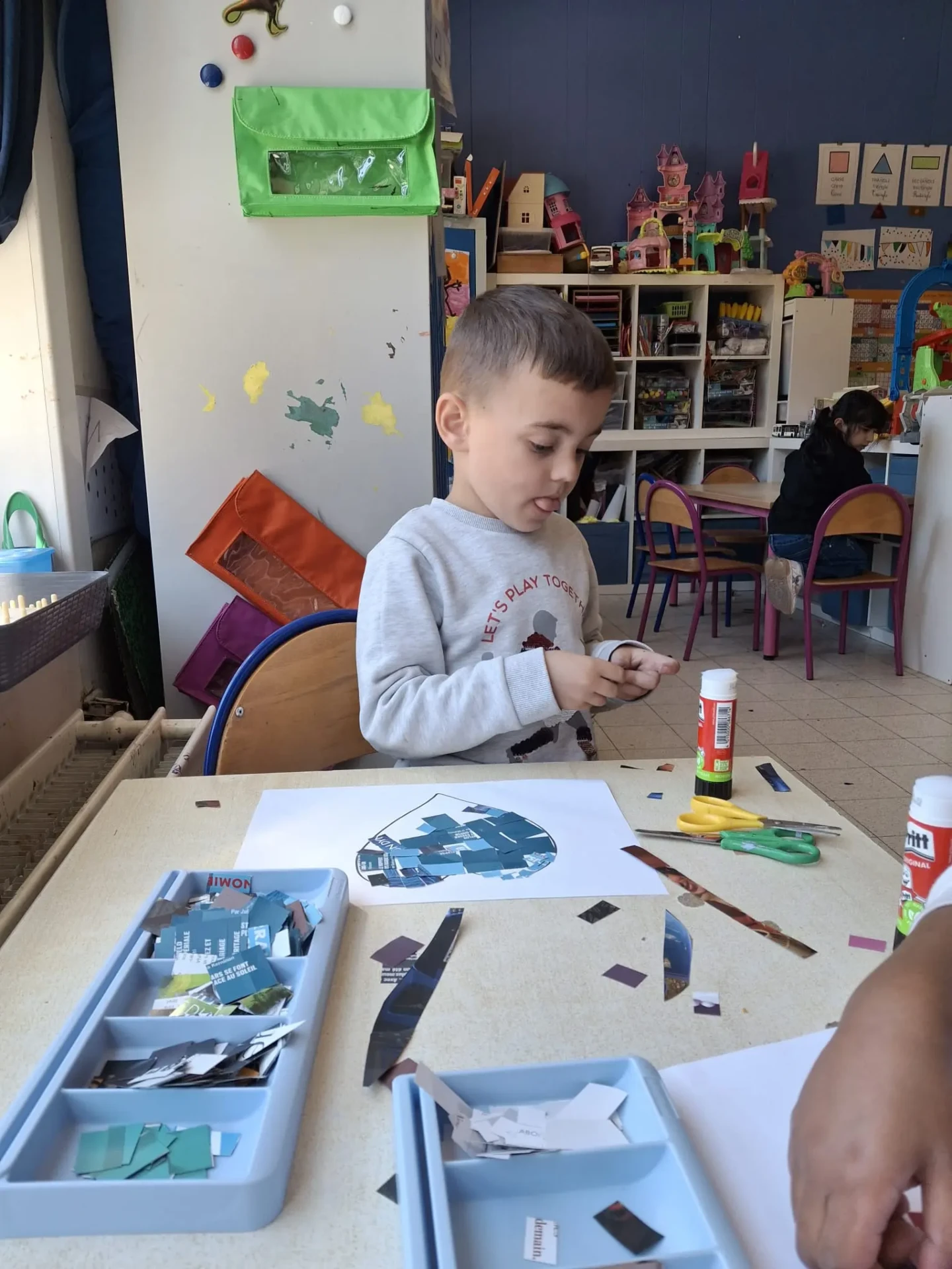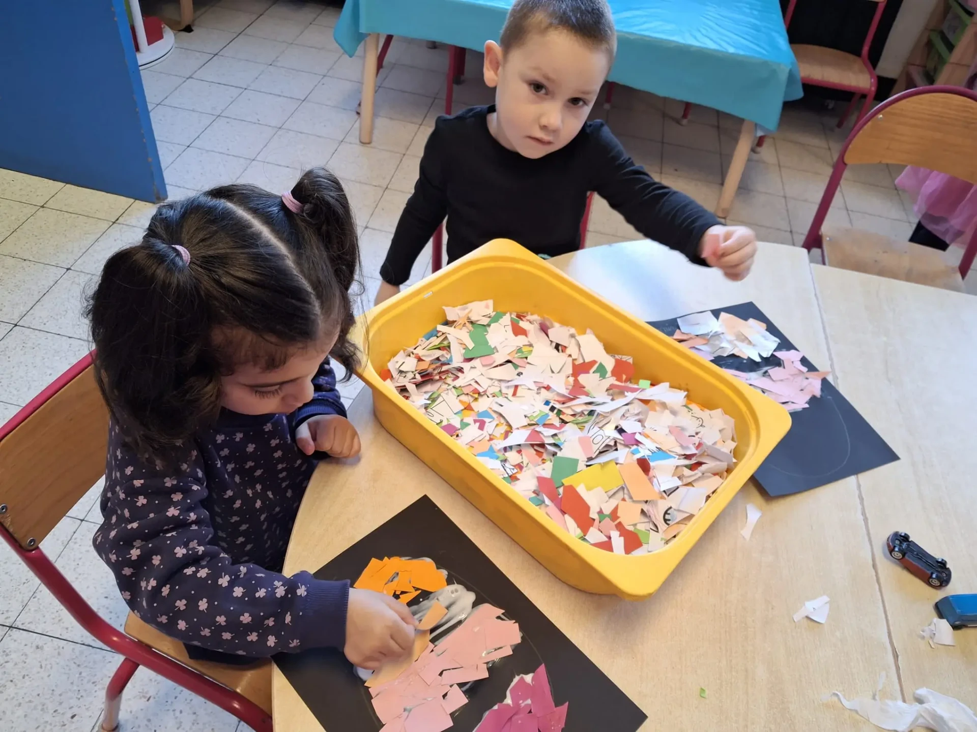 Madame Véronique a lancé un nouveau projet, la mosaïque. Les 2èmes maternelles ont créé de belles œuvres ! Ensuite, les 1ères maternelle ont fait une poule en mosaïque.